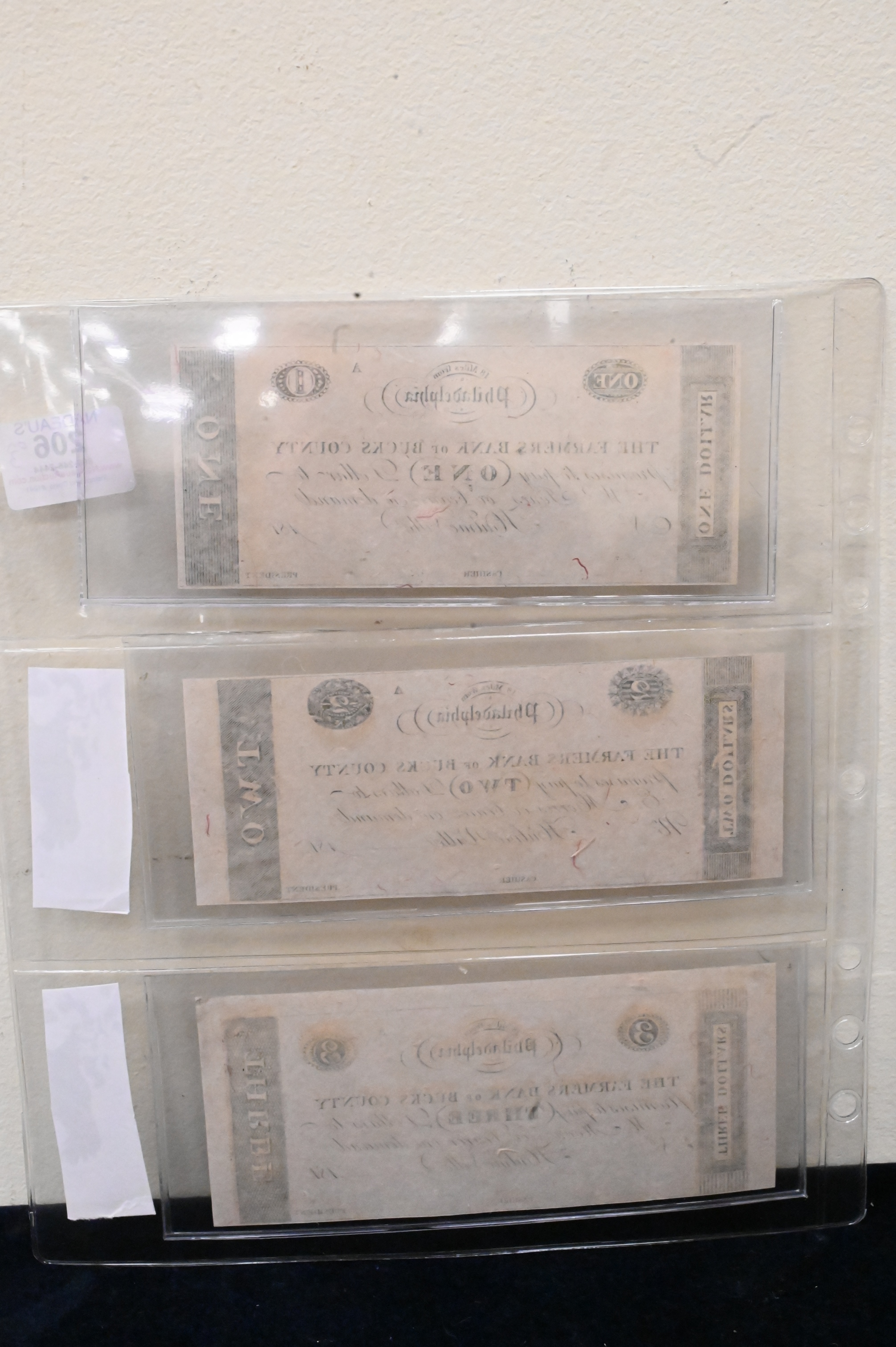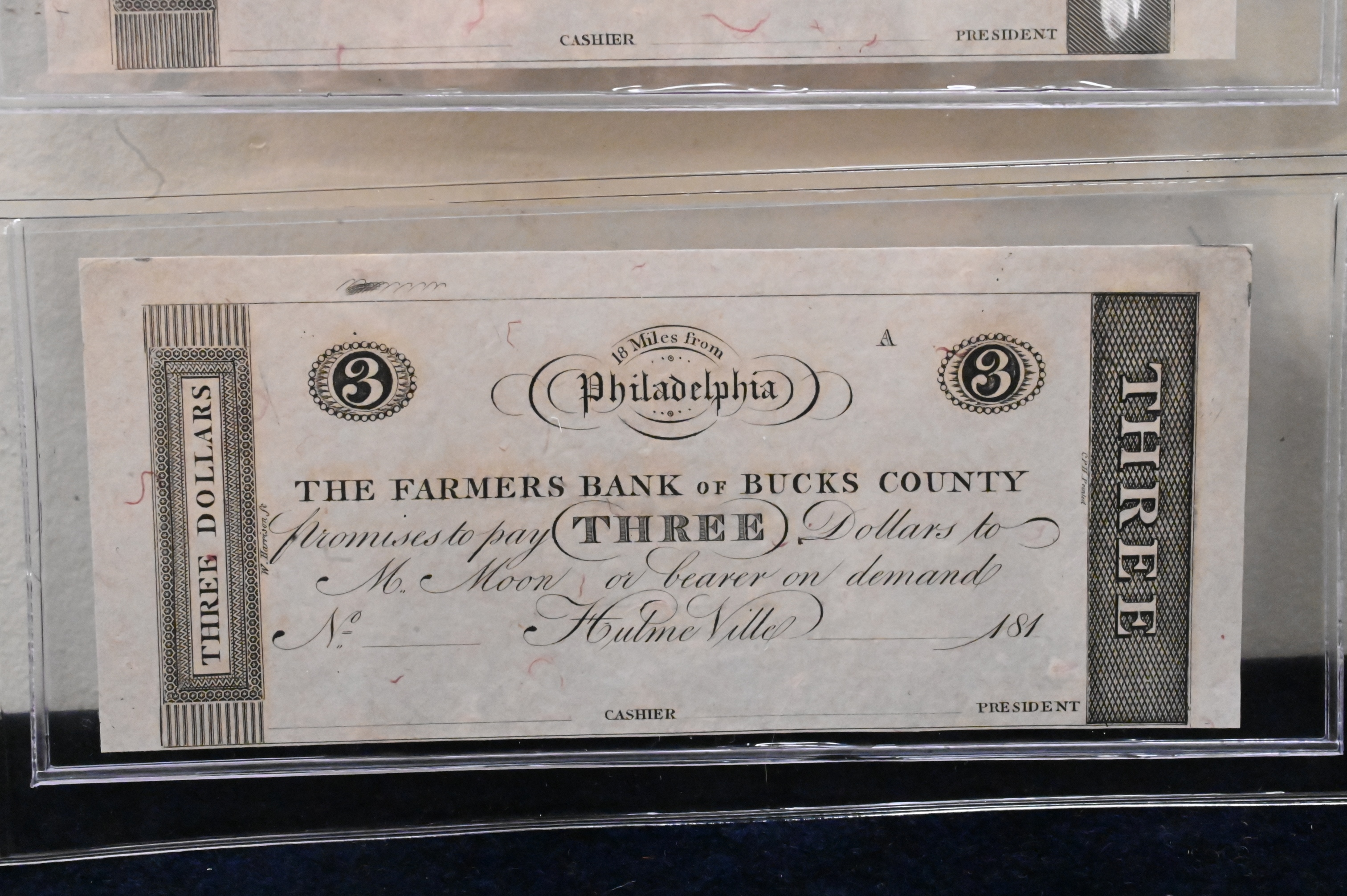 Three Farmers Bank of Bucks County, to include one, two, and Three Dollar, Gem crisp unc
