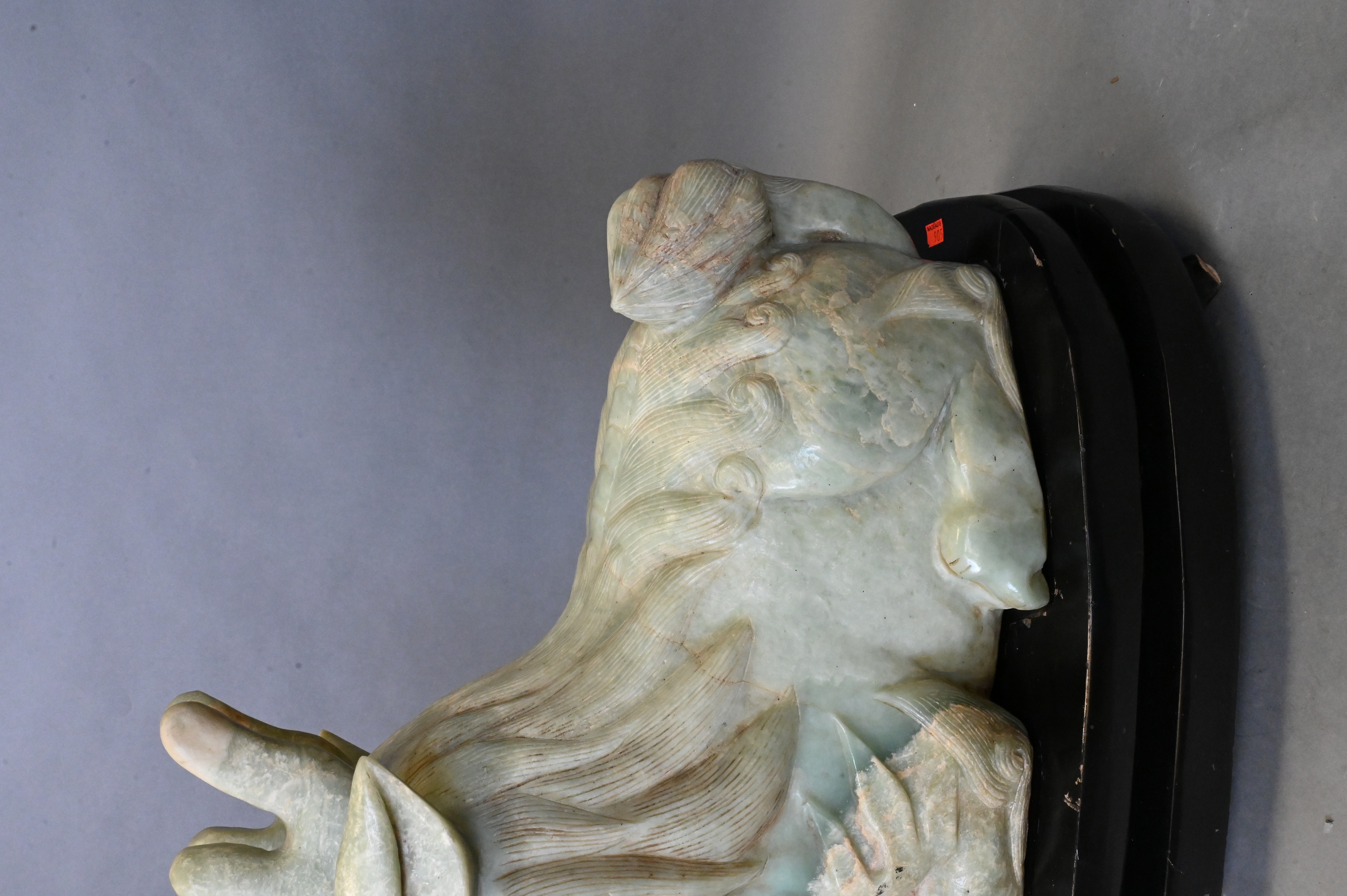 Lot 207: Chinese Hardstone Foo Dog on Wooden Base