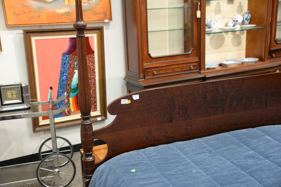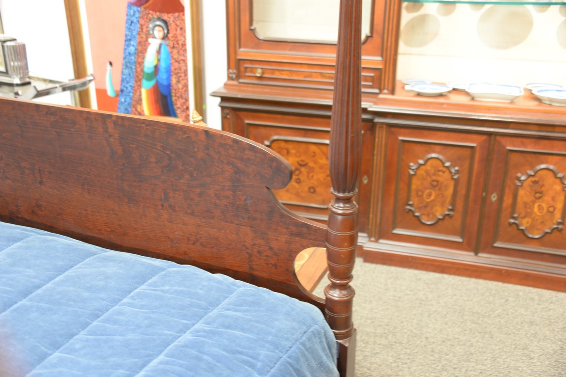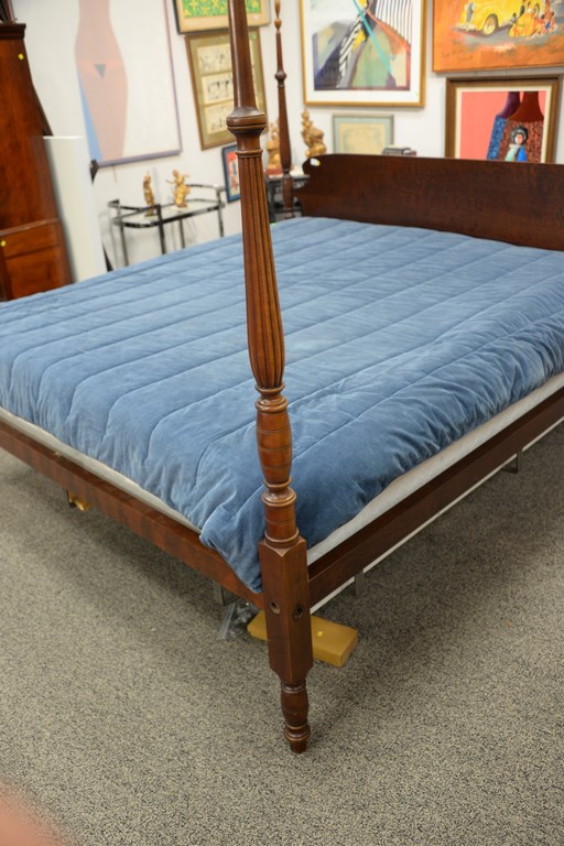 Lot 207: Eldred Wheeler custom cherry king size bed with arched canopy top. bedstead only ht. 84in. to top of canopy ht. total of posts …