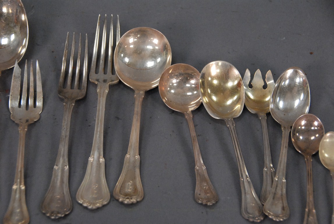 Lot 207: Gorham sterling silver flatware set for twelve, 148 pieces total. 117.5 t oz. plus 30 handles