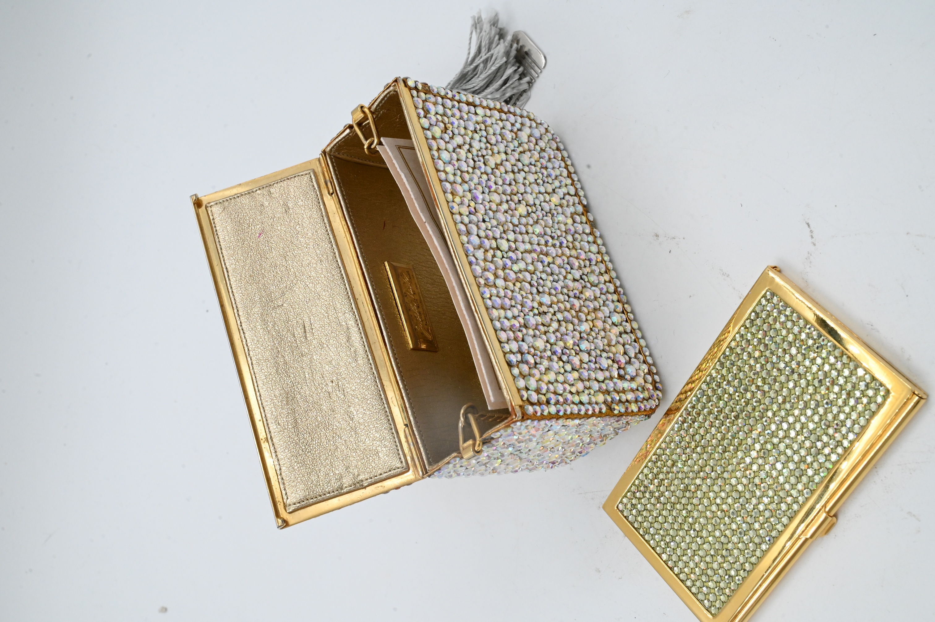 to include comb purse having hidden strap (missing some jewels) and wallet with dust case and casing