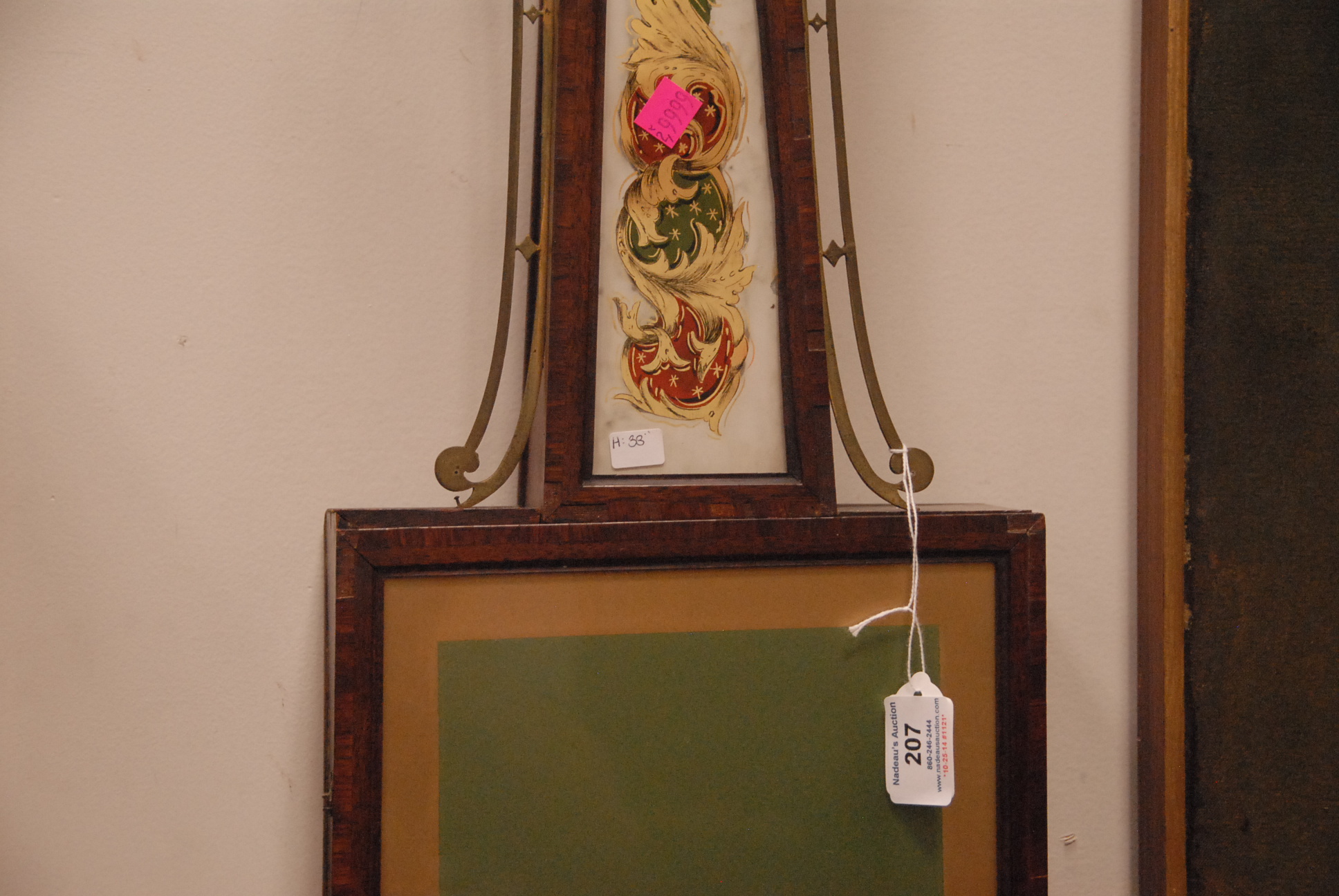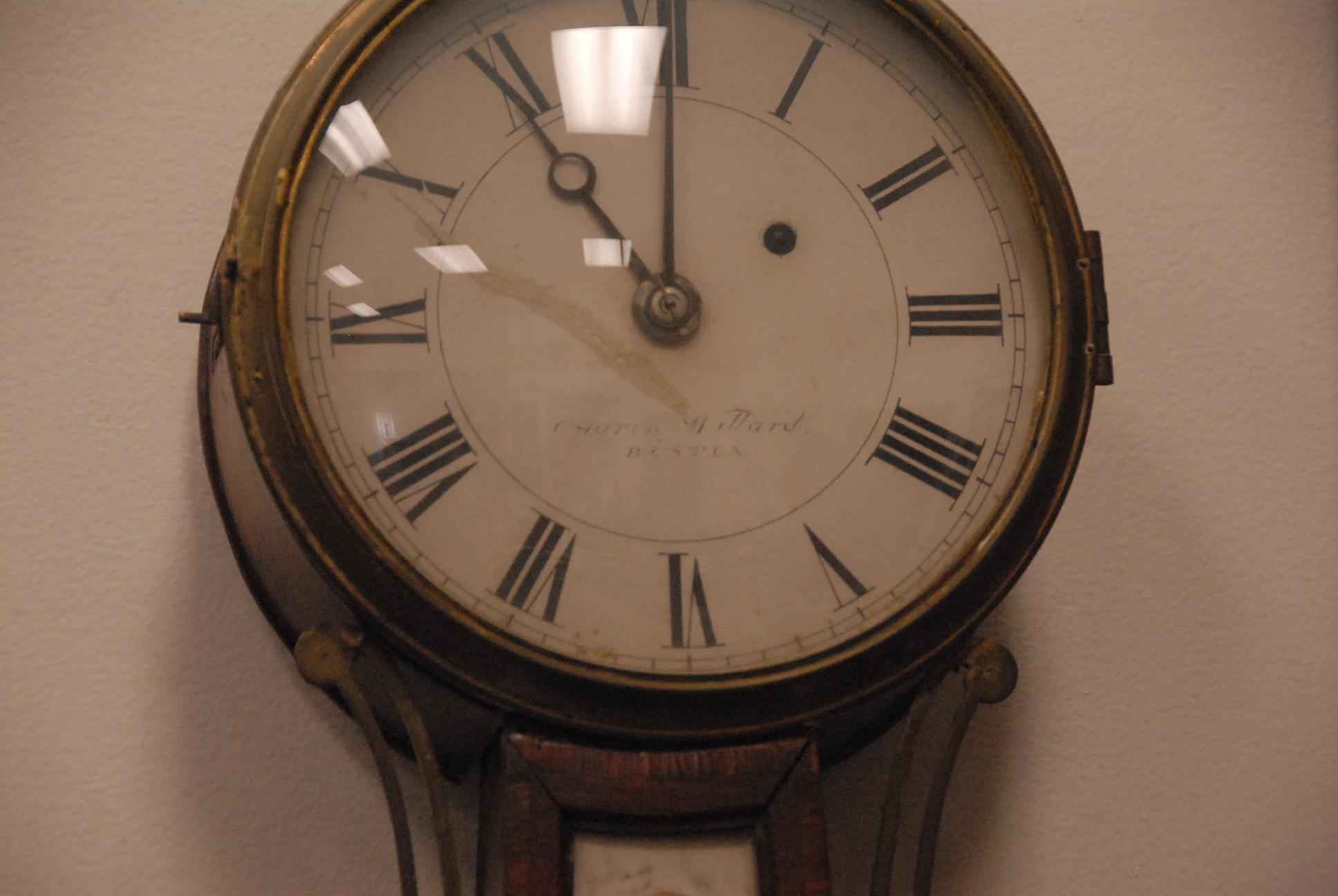 Mahogany banjo clock, weight driven, dial marked Aaron Willard, Boston replaced lower glass. ht. 33 in.