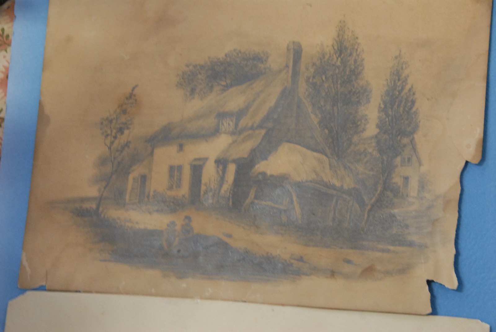 Two early pencil sketches, each signed Anna Kellogg on reverse