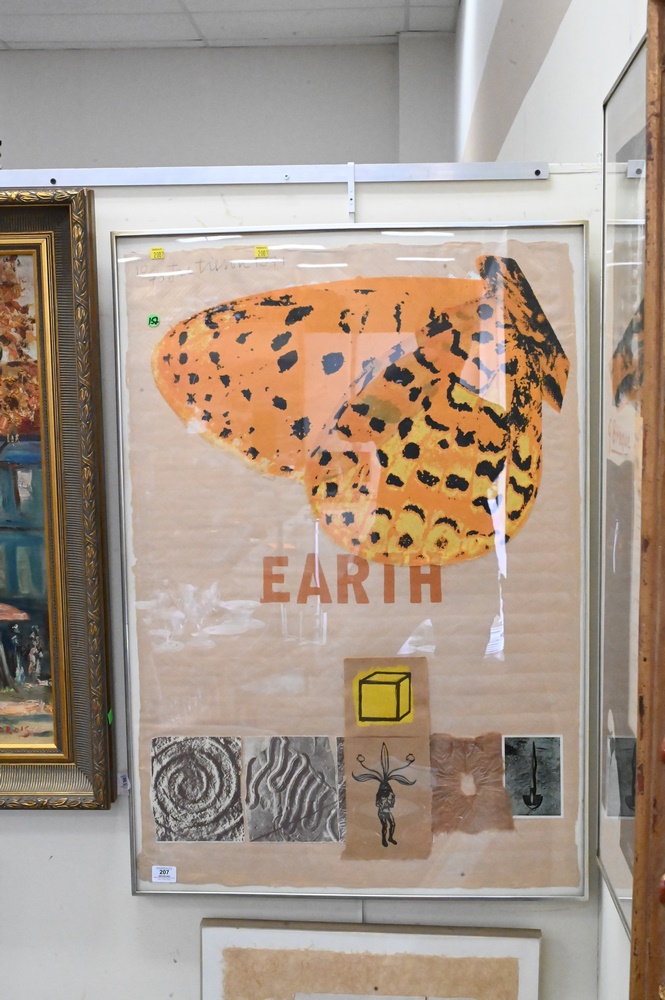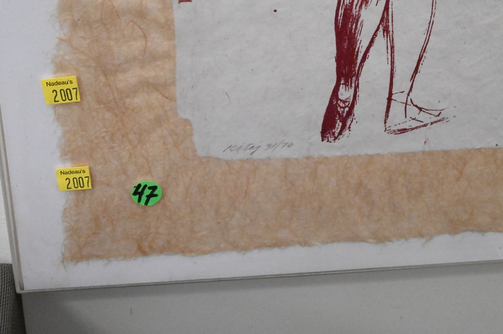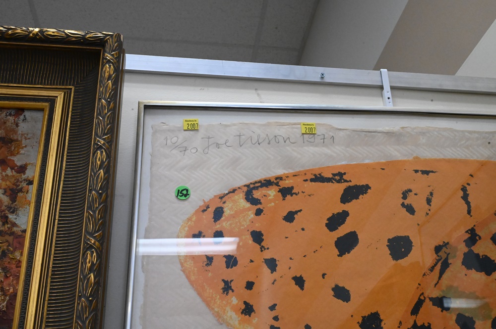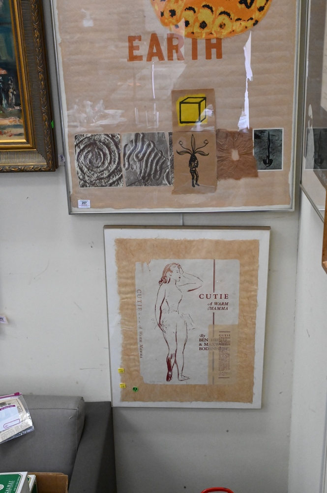 Lot 207: Two Piece Framed Lot, to include R.B. Kitaj (American, 1932 – 2007), “Cutie a Warm Momma”, serigraph, edition 31/70, pencil signed and numbered lower left, 24″ x 18″; and Joe Tilson (American, born 1928), “Earth”, serigraph, edition 10/70, signed, numbered and dated in pencil upper left, 38″ x 26″.