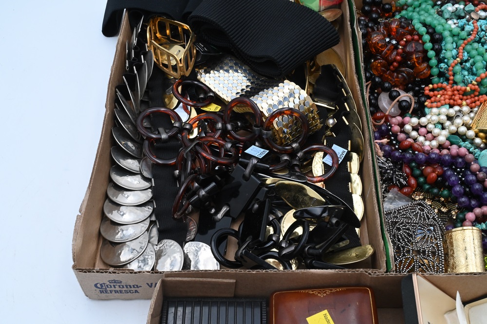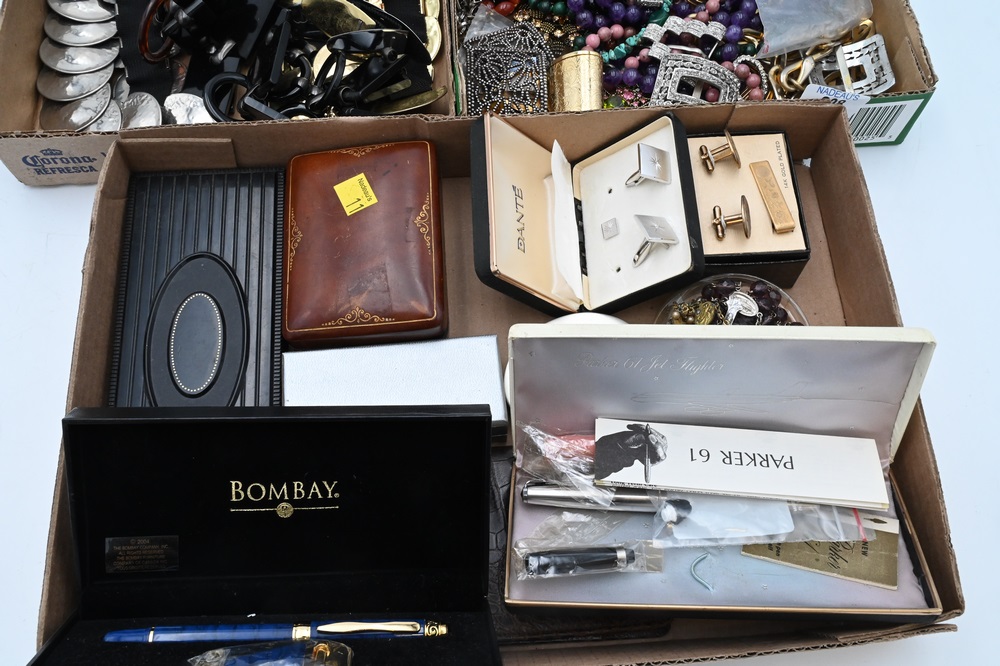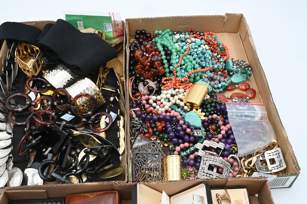 Four Tray Lots of Costume Jewelry, to include beaded necklaces, bracelets, tie clips, earrings, cufflinks, etc.