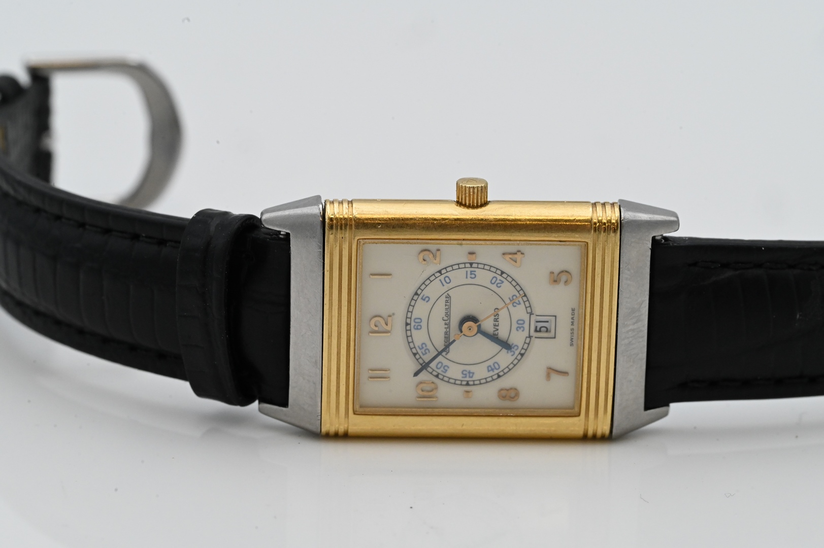 Lot 208: Jaeger Lecoultre Reverso 18 Karat and Stainless Steel Wristwatch