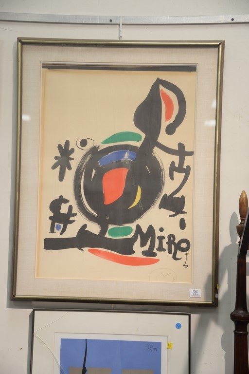 Lot 208: Joan Miro 1893-1983 hand signed lithograph Abstract signed lower right in pencil sight size 28 x 21