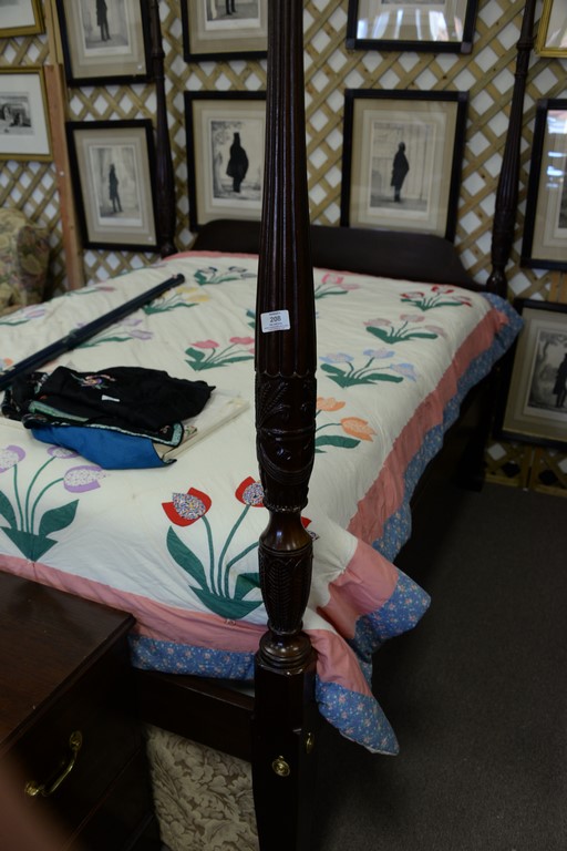 Mahogany Chippendale style four post queen size bed with carved and reeded post. ht. 87in.