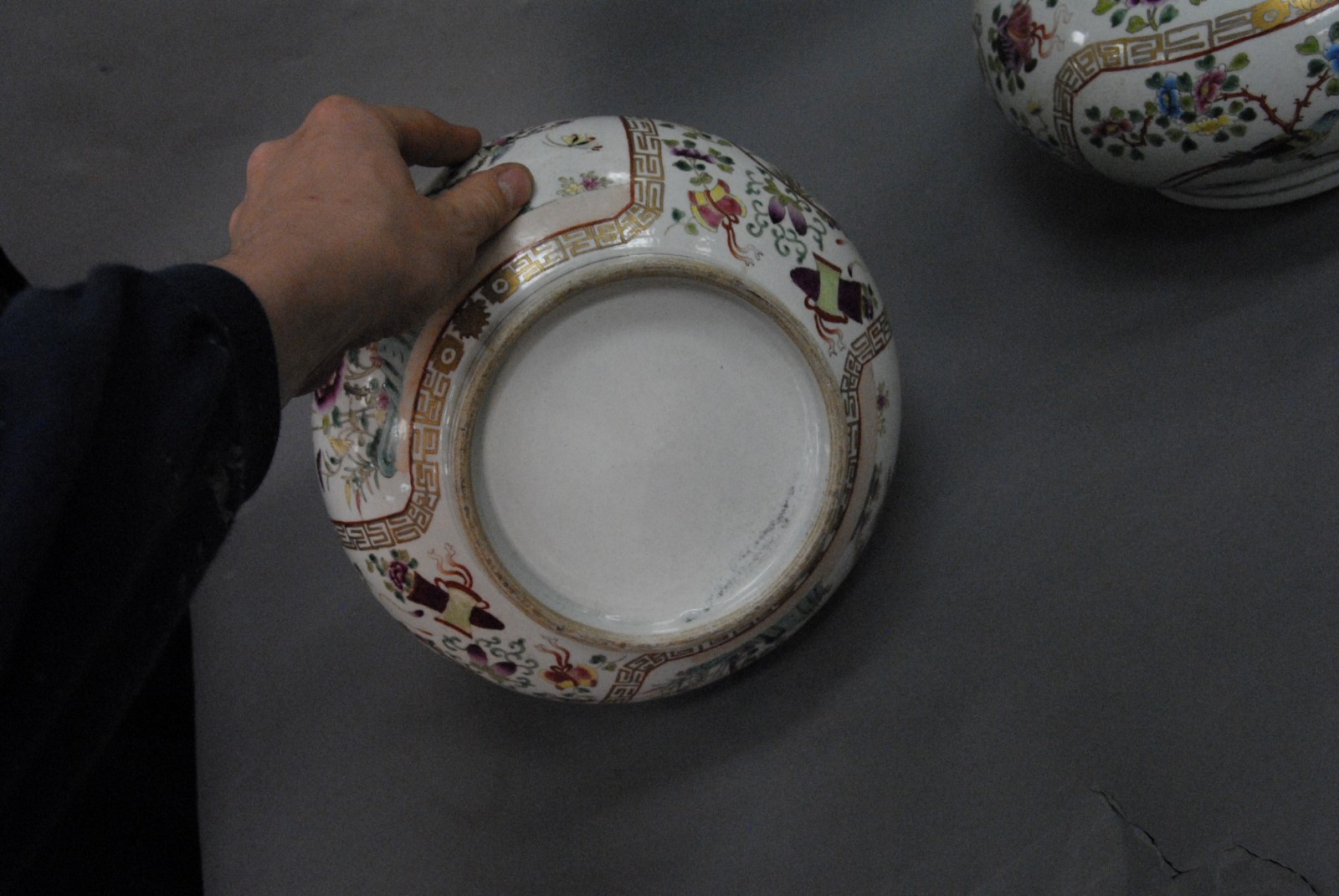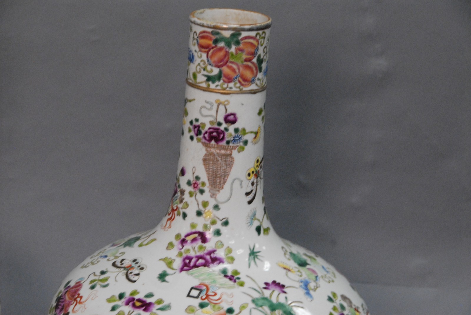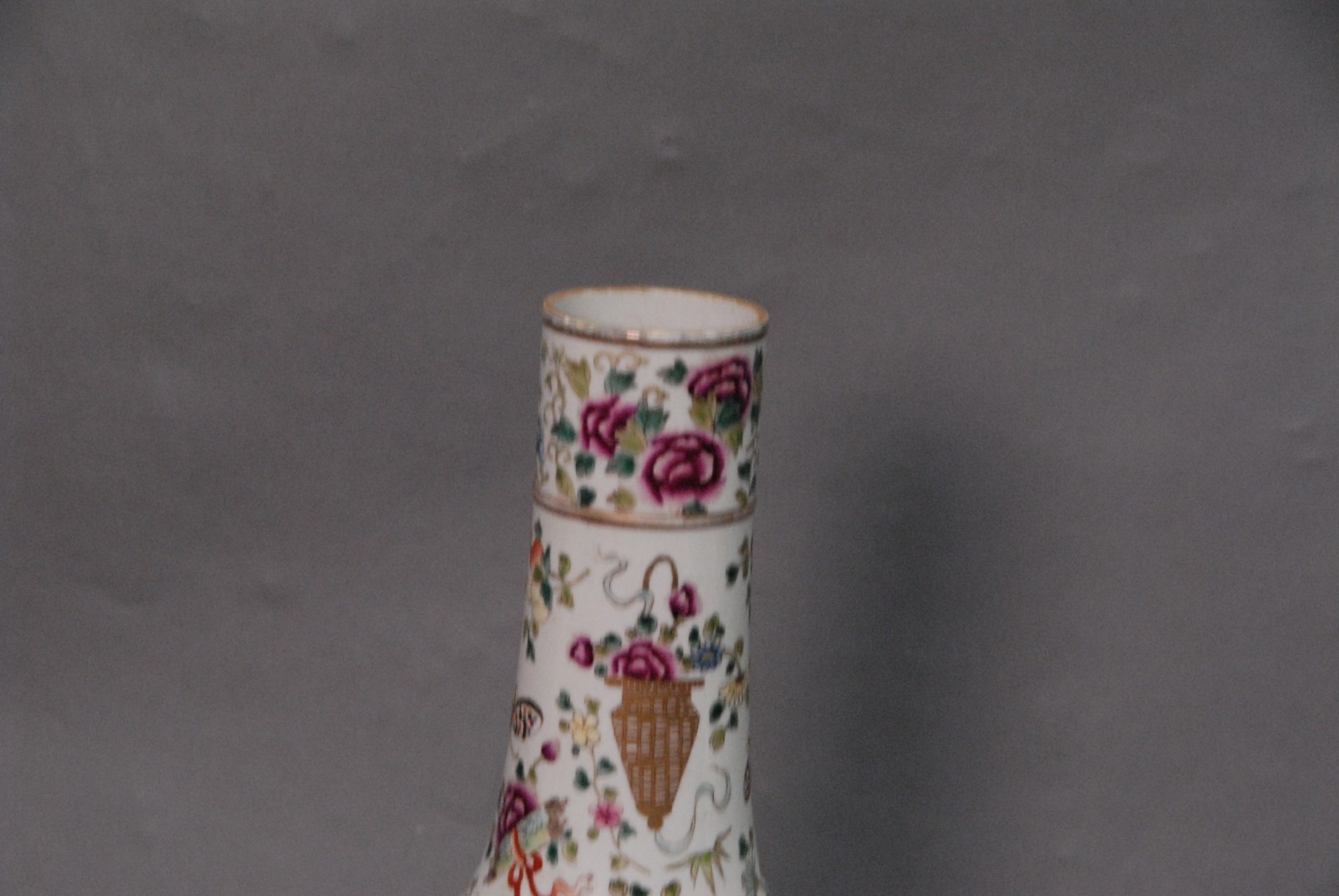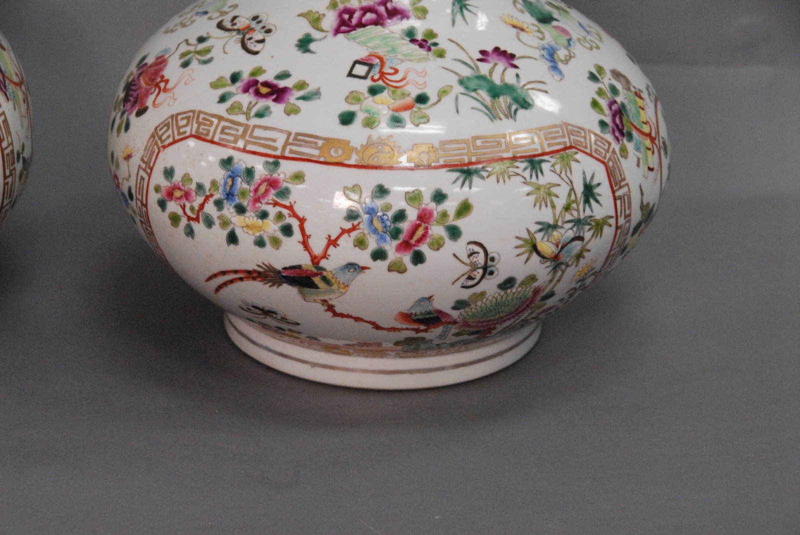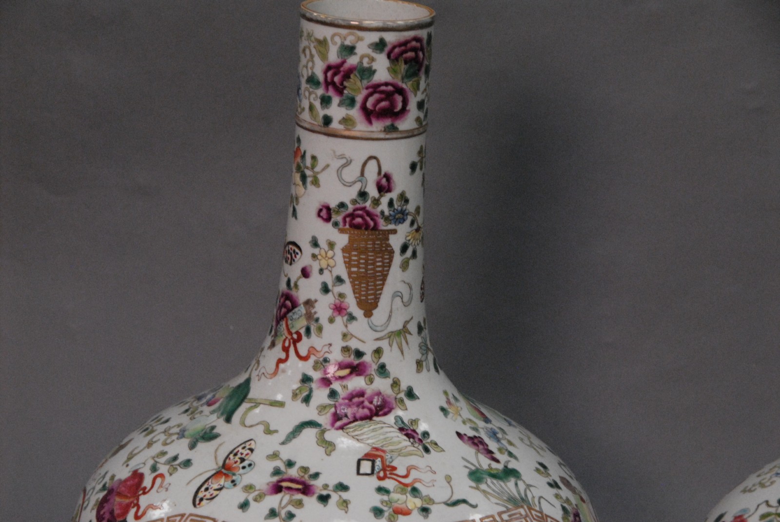 Pair of Chinese famille rose Export bottle vases decorated with birds and flowers 19th – 20th century.