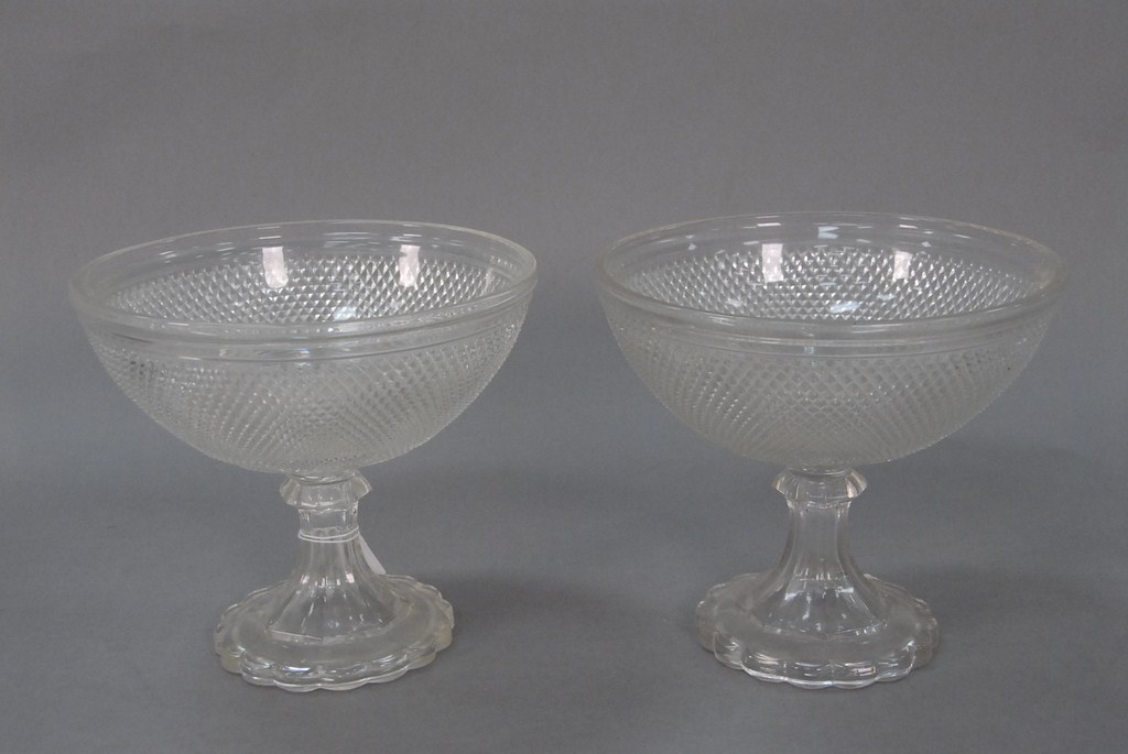 Lot 208: Pair of large pressed glass footed compote. Provenance: From prominent Woodbridge, Connecticut family collection.