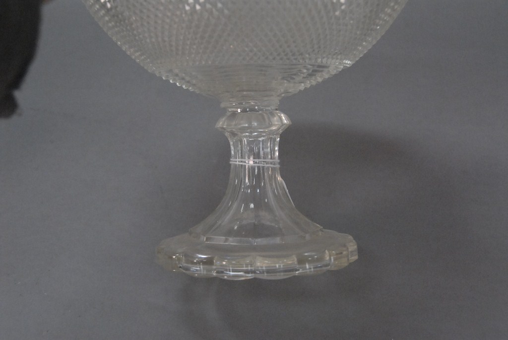 Pair of large pressed glass footed compote. Provenance: From prominent Woodbridge, Connecticut family collection.