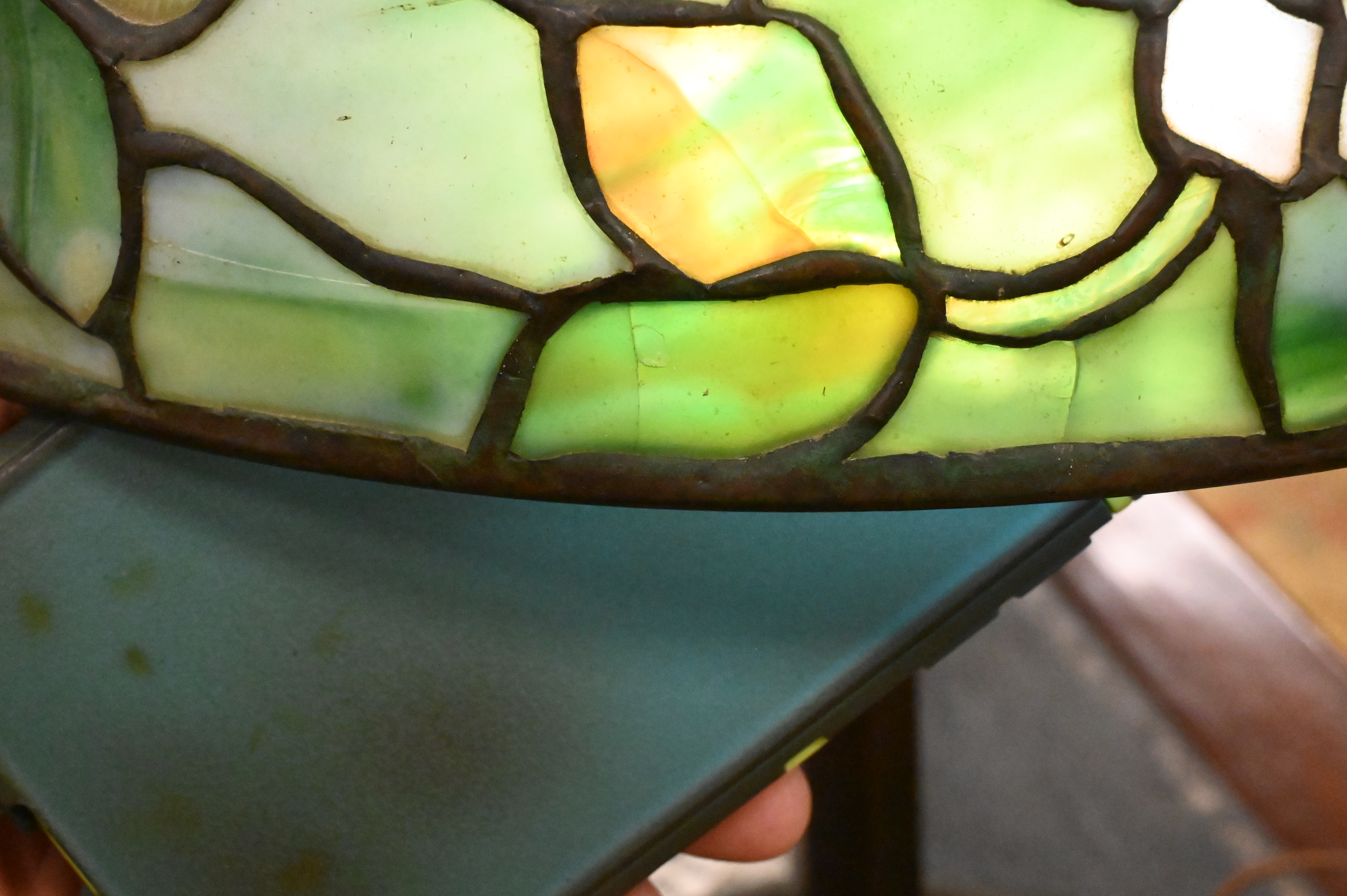 Favrile glass and patinated bronze
