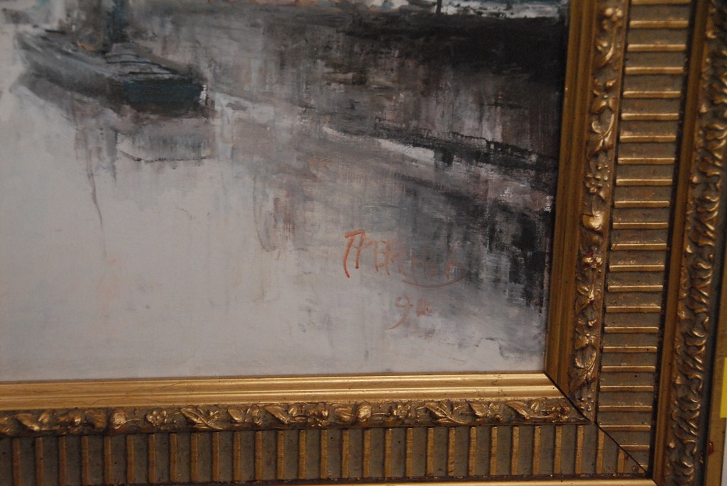Lot 208: Trencev 1990 Paris, oil on canvas, signed lower right Trencev, marked on back Trencev 1990 Paris Ponte Maple La Scene, 17 x 23