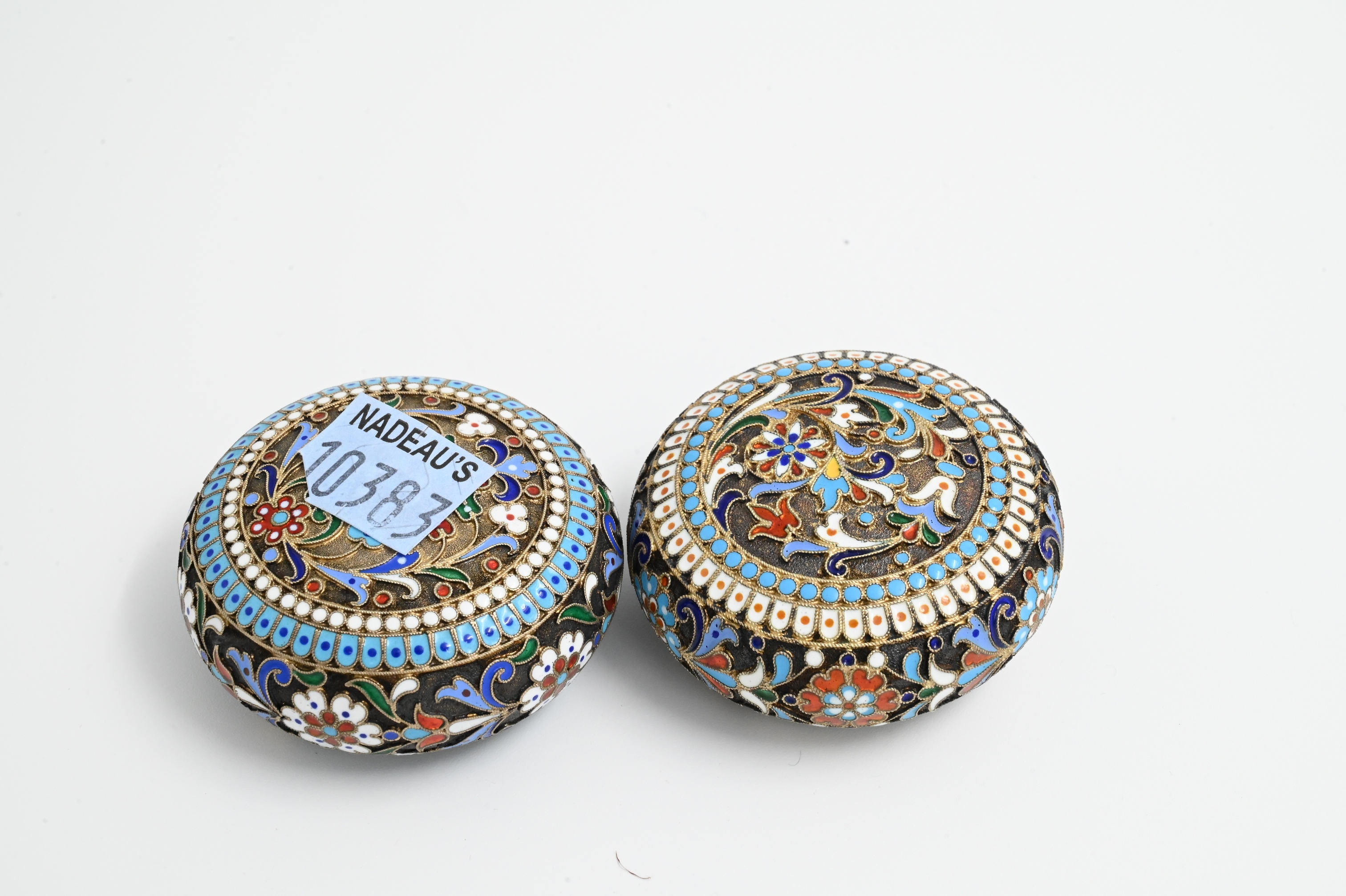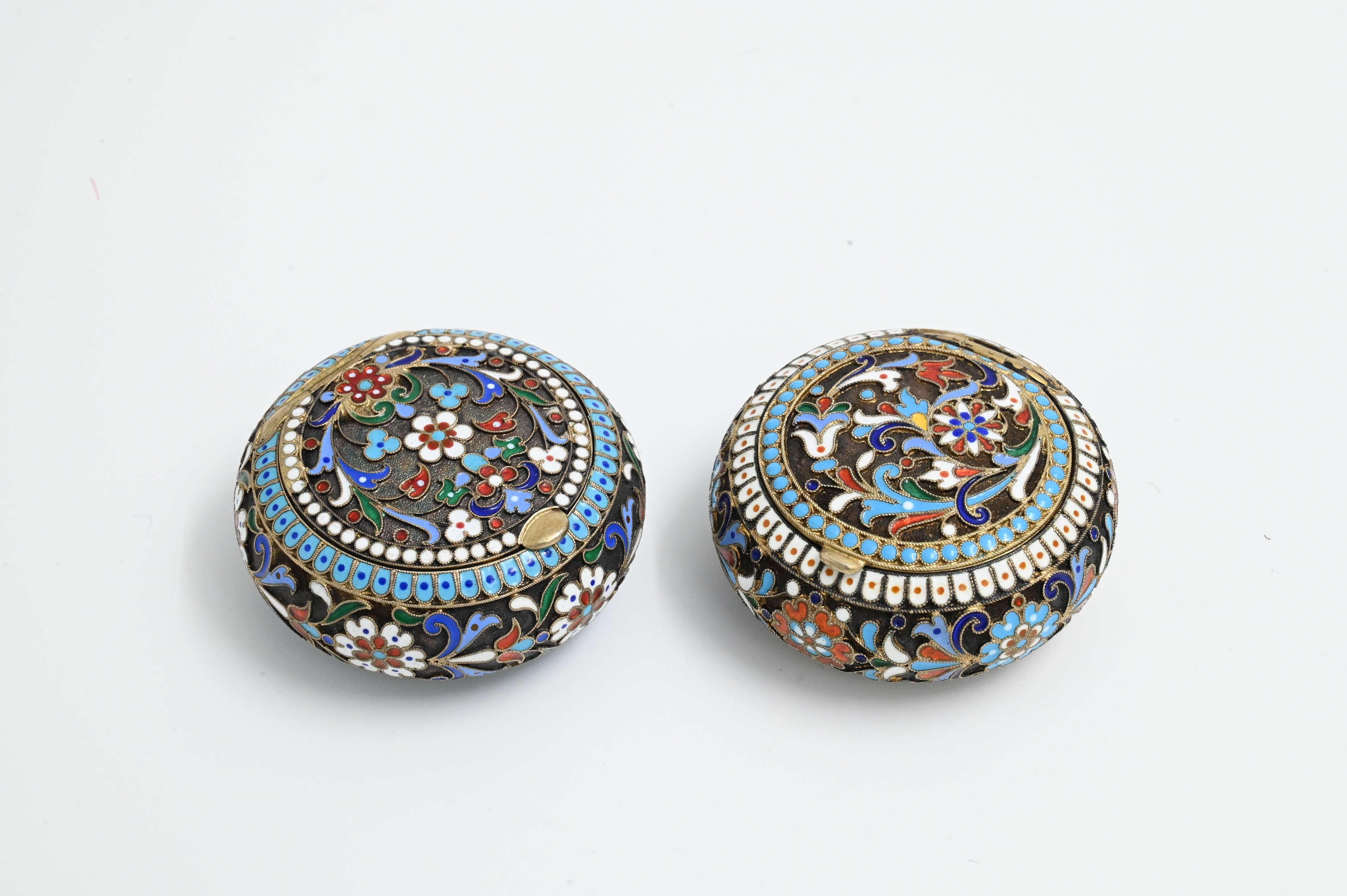 Lot 208: Two Russian Enamel Silver Pill Boxes