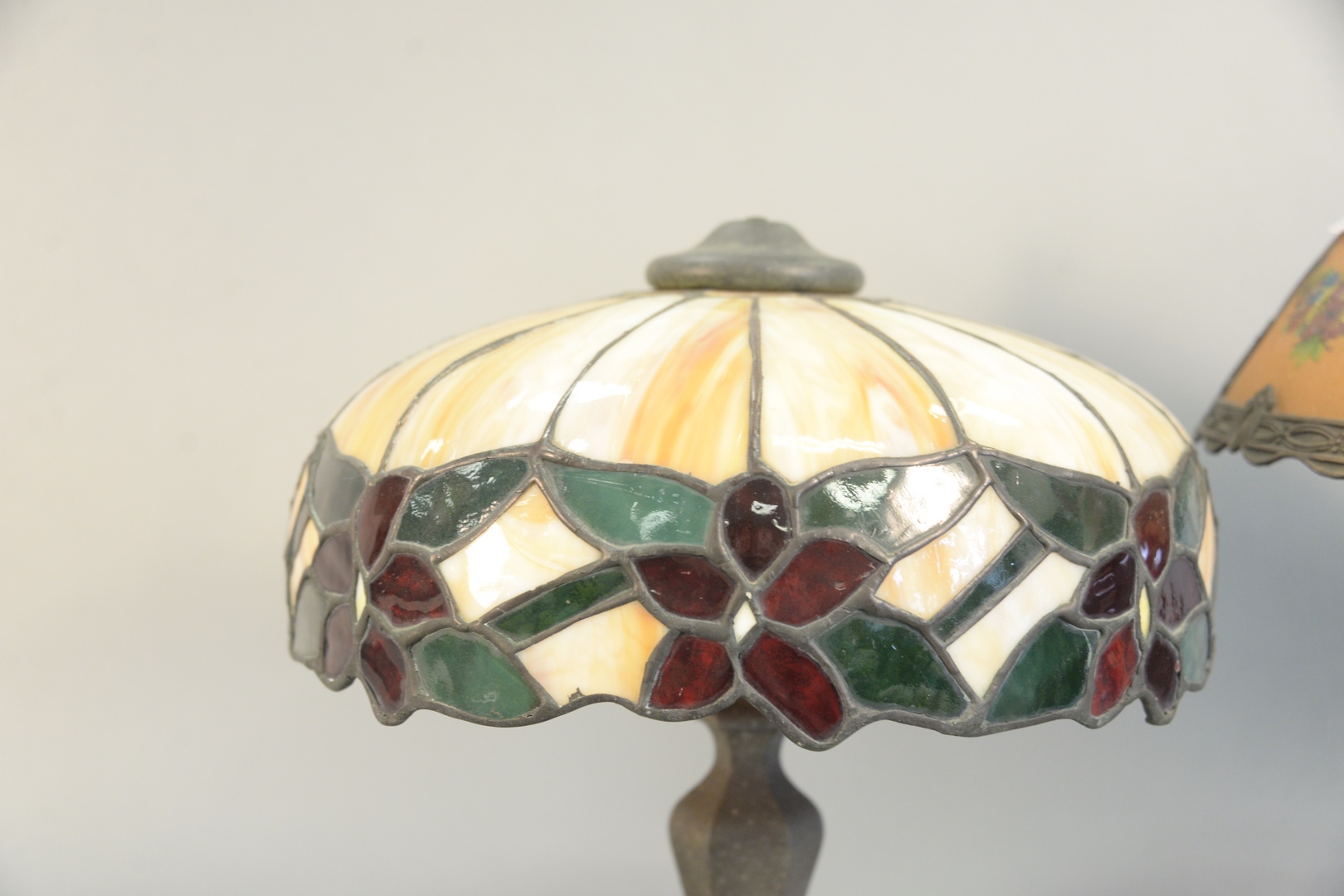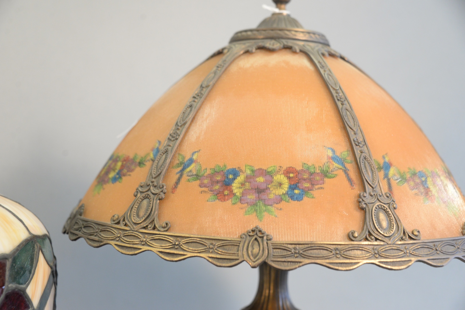 Lot 208: Two Table Lamps to include small table lamp having six reverse painted panels height 22 2/1 inches, diameter 16 inches along with le…