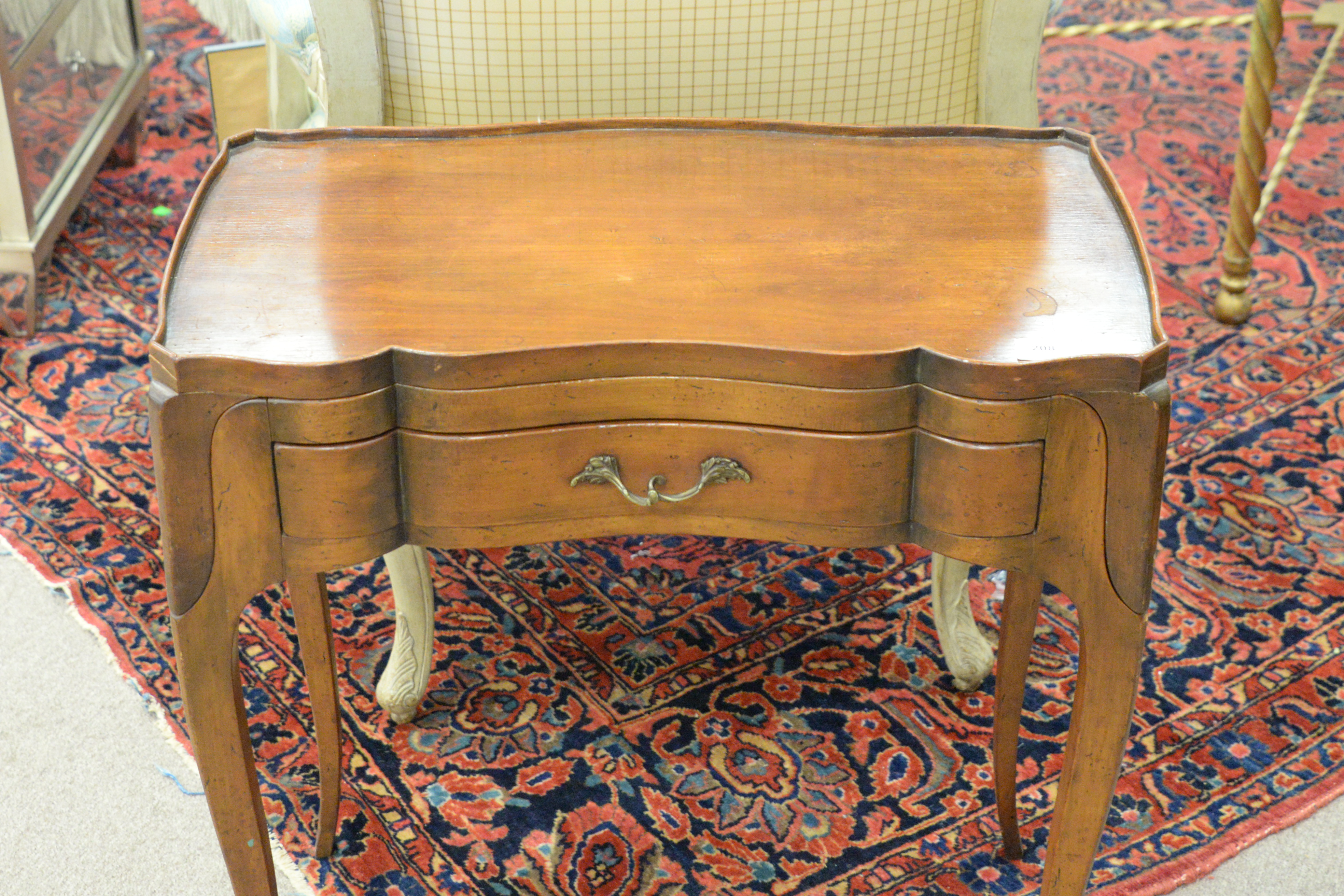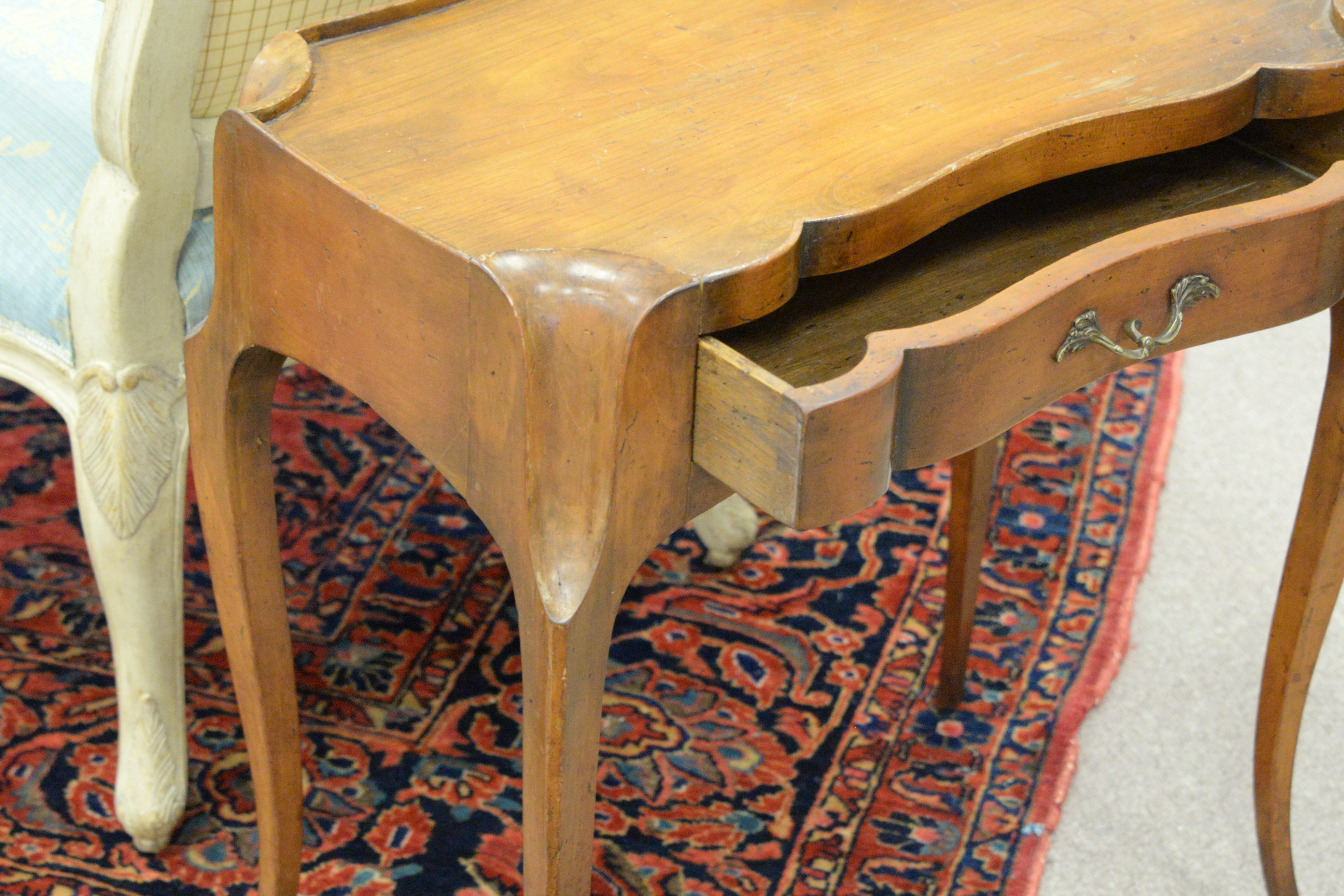 Unique Louis XV Style Fruitwood Server/Table, having removable serving tray top with legs and drawer, height 26 inches, top 13 1/2″ x 24″