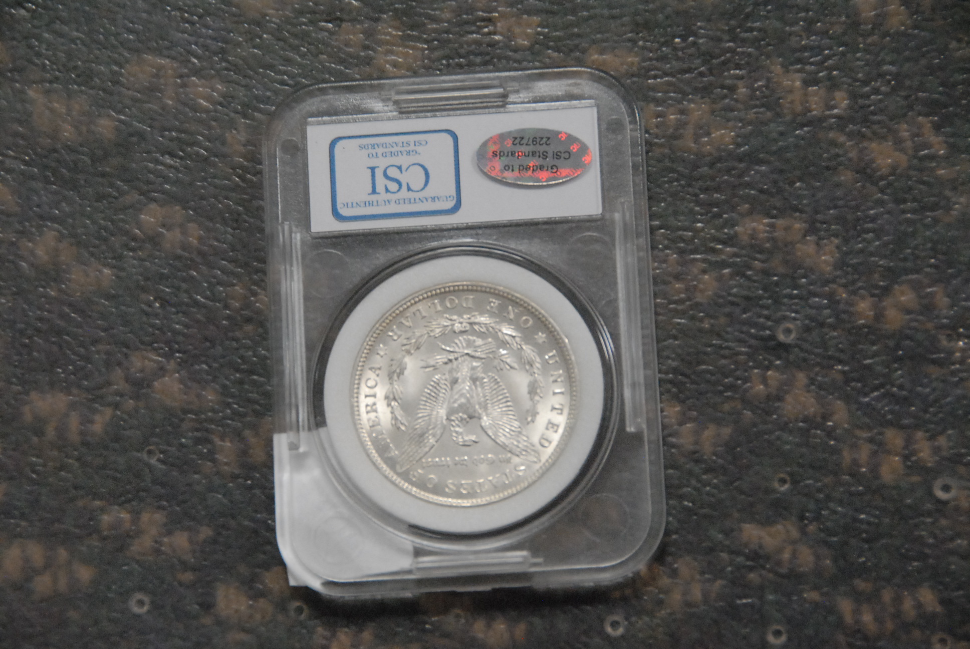 1921 Morgan silver dollar, slabbed.