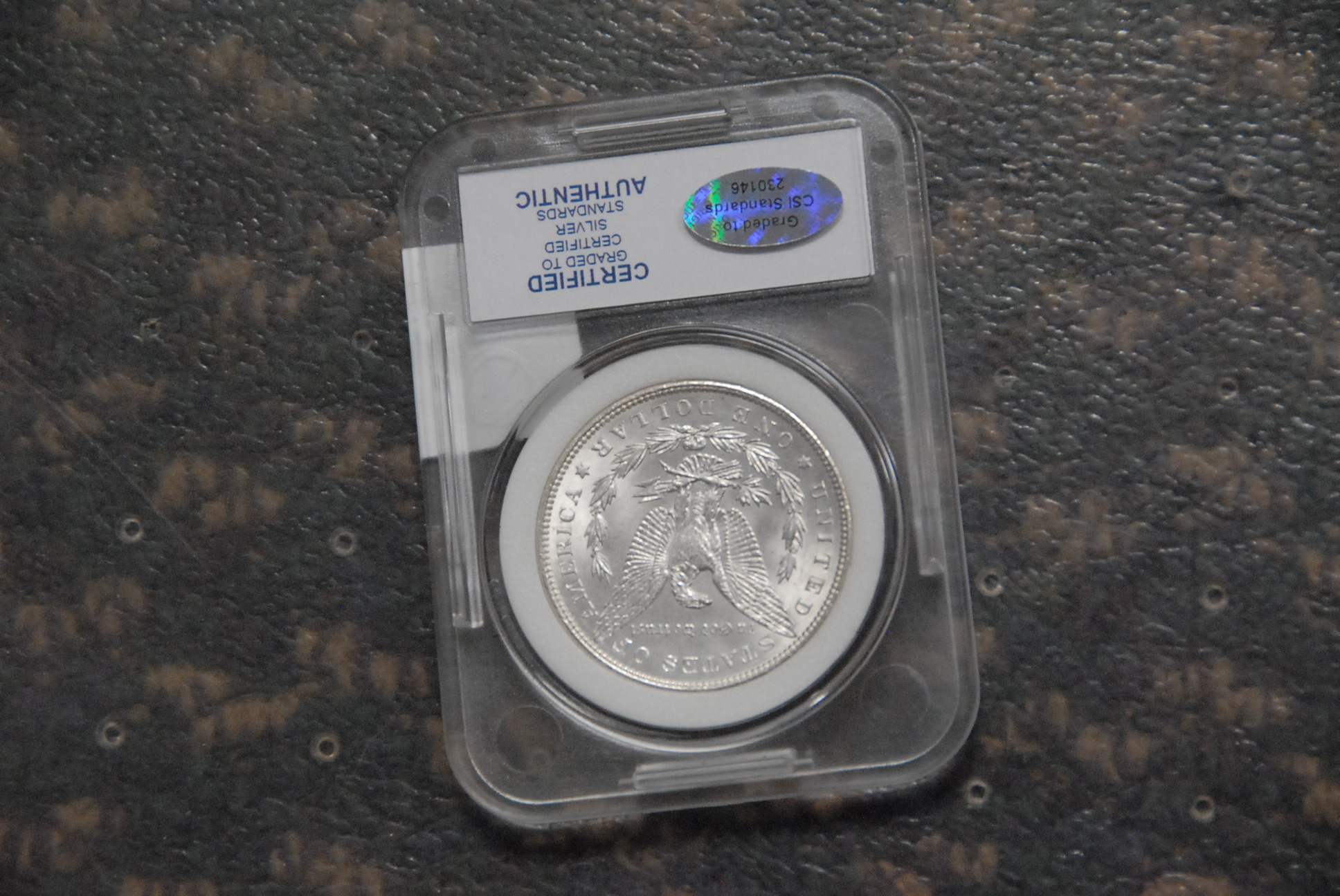 Lot 208E: 1890 Morgan silver dollar, slabbed.