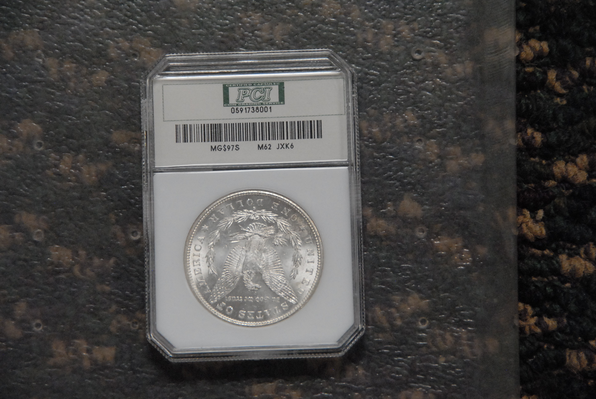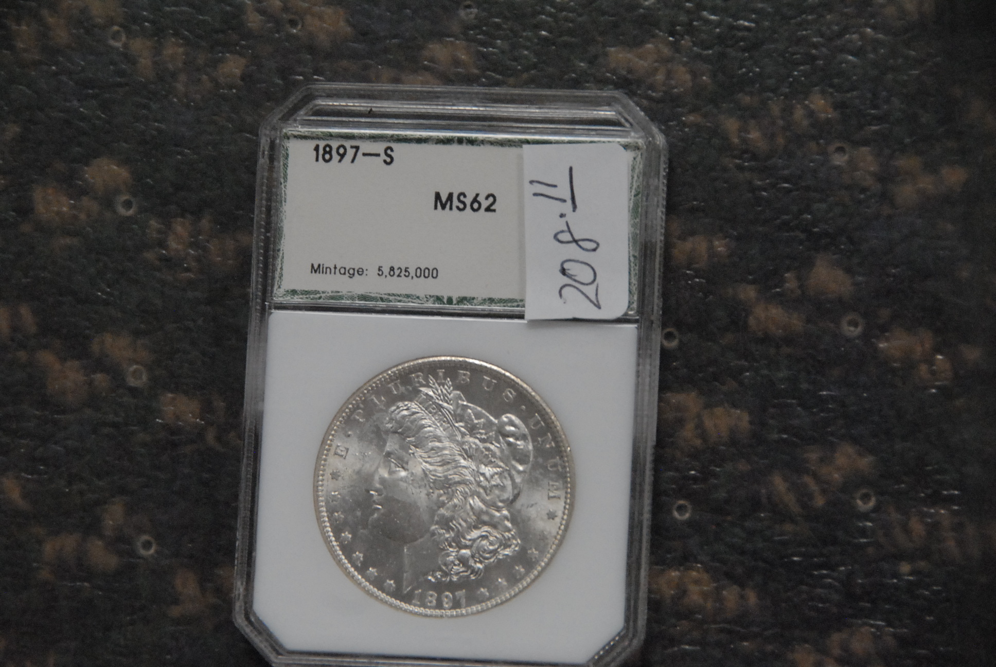 Lot 208K: 1897 Morgan silver dollar, slabbed.