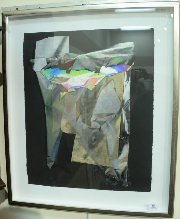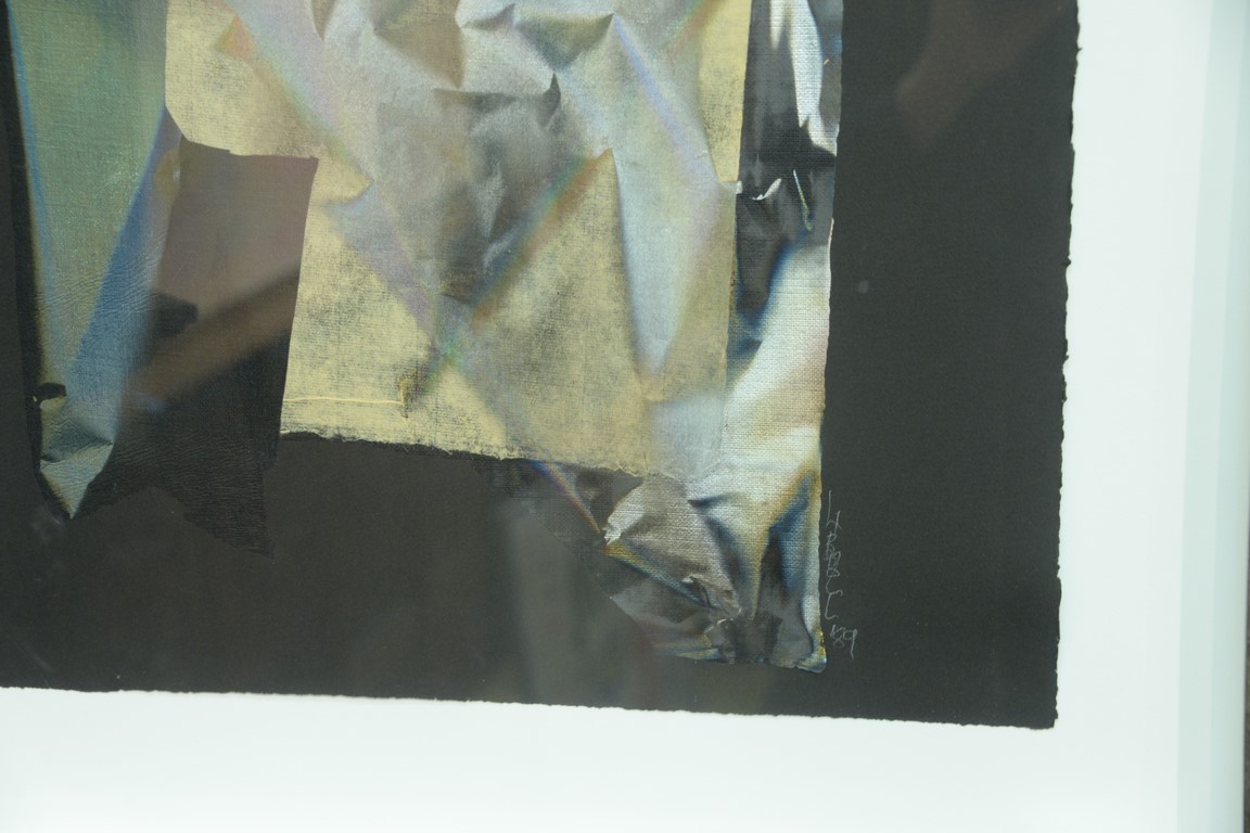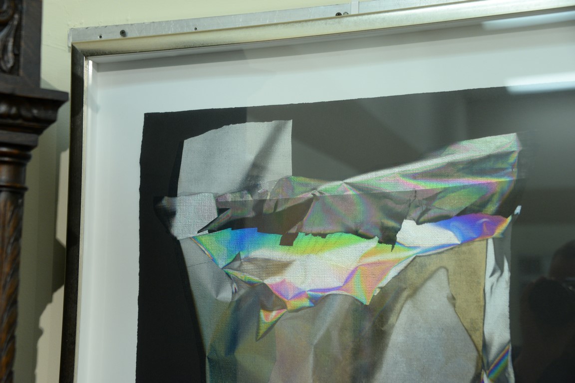14K white gold ring with eight small and two larger diamonds, larger diamonds are approximately .40 carats each, 3.9 grams.
