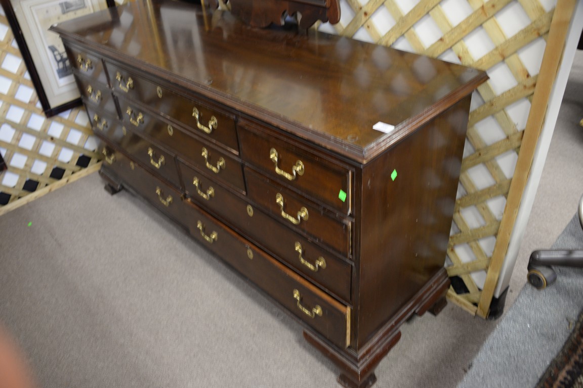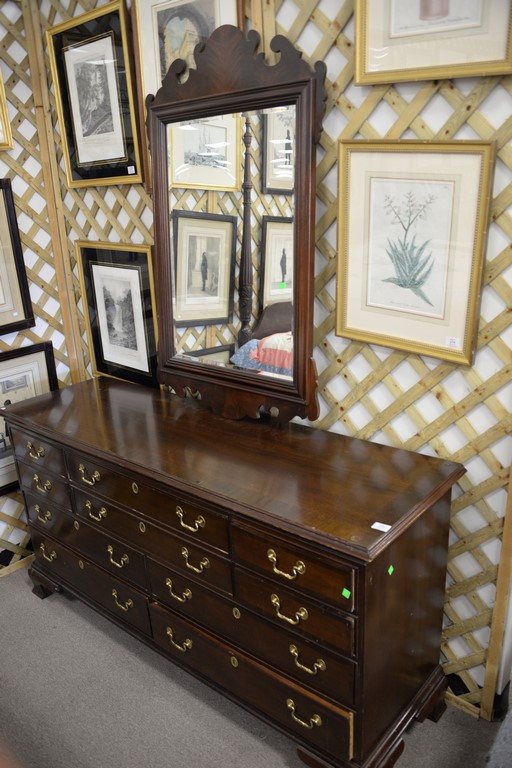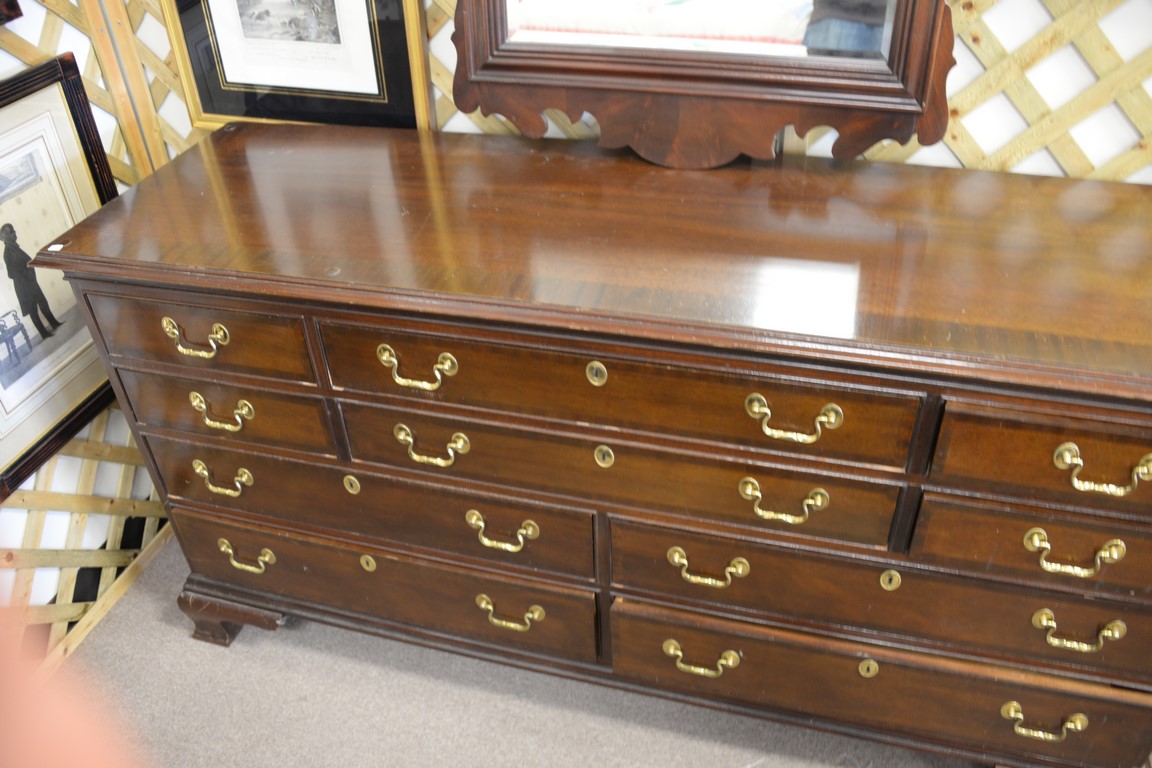 Council mahogany banded inlaid long chest lg. 65in. with mirror 48 x 29.