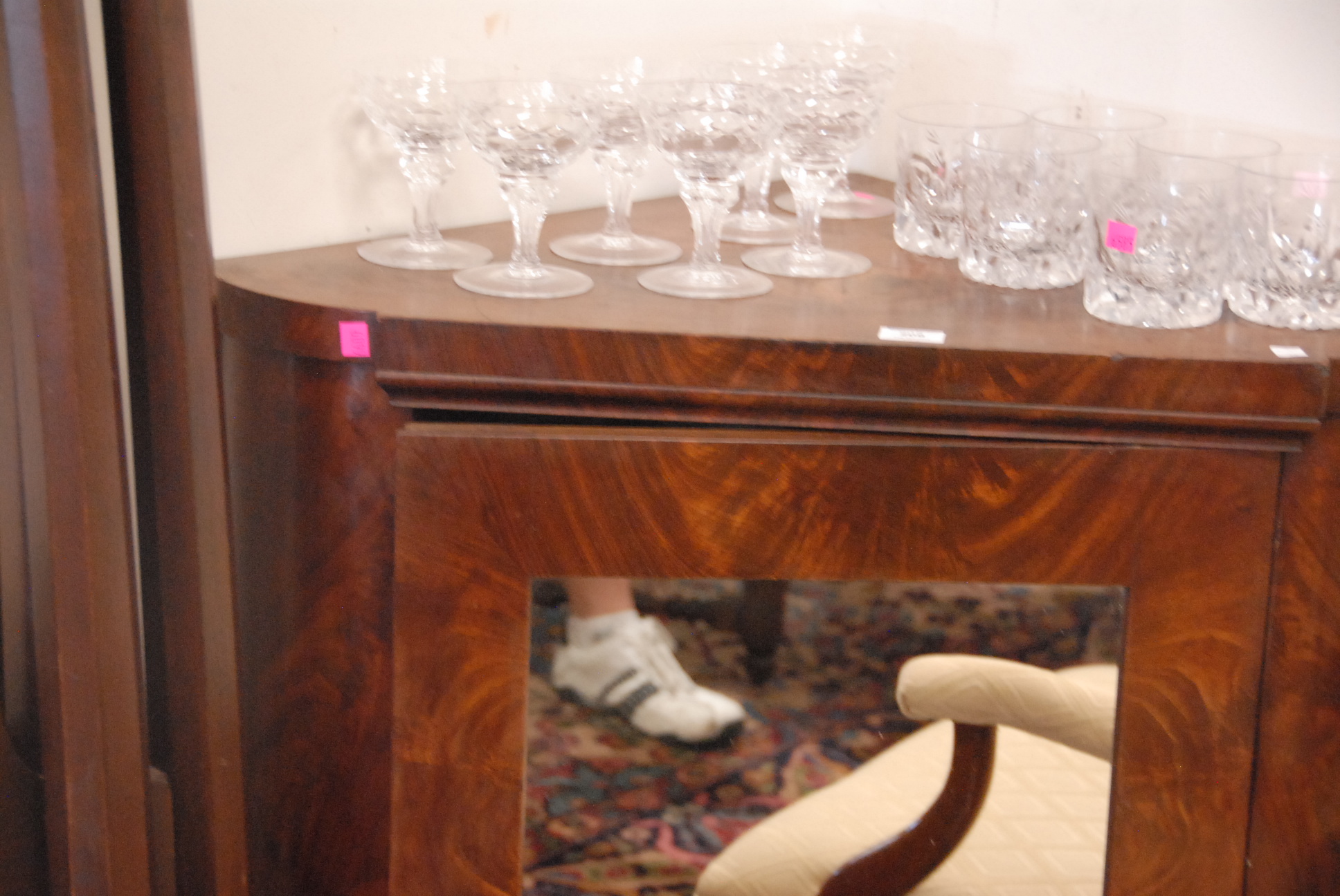 English mahogany corner cabinet with mirrored door, ht. 31, wd. 32.