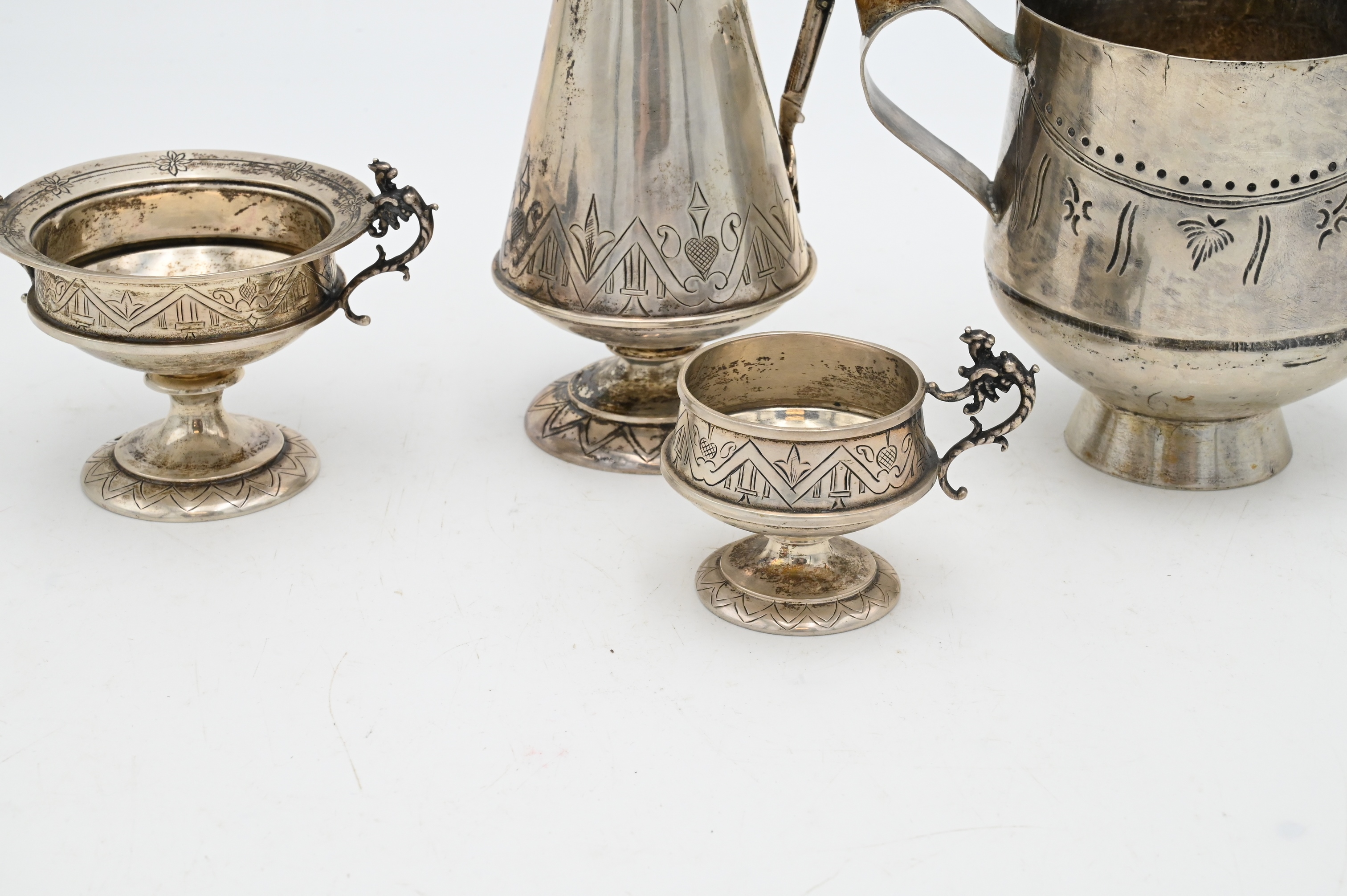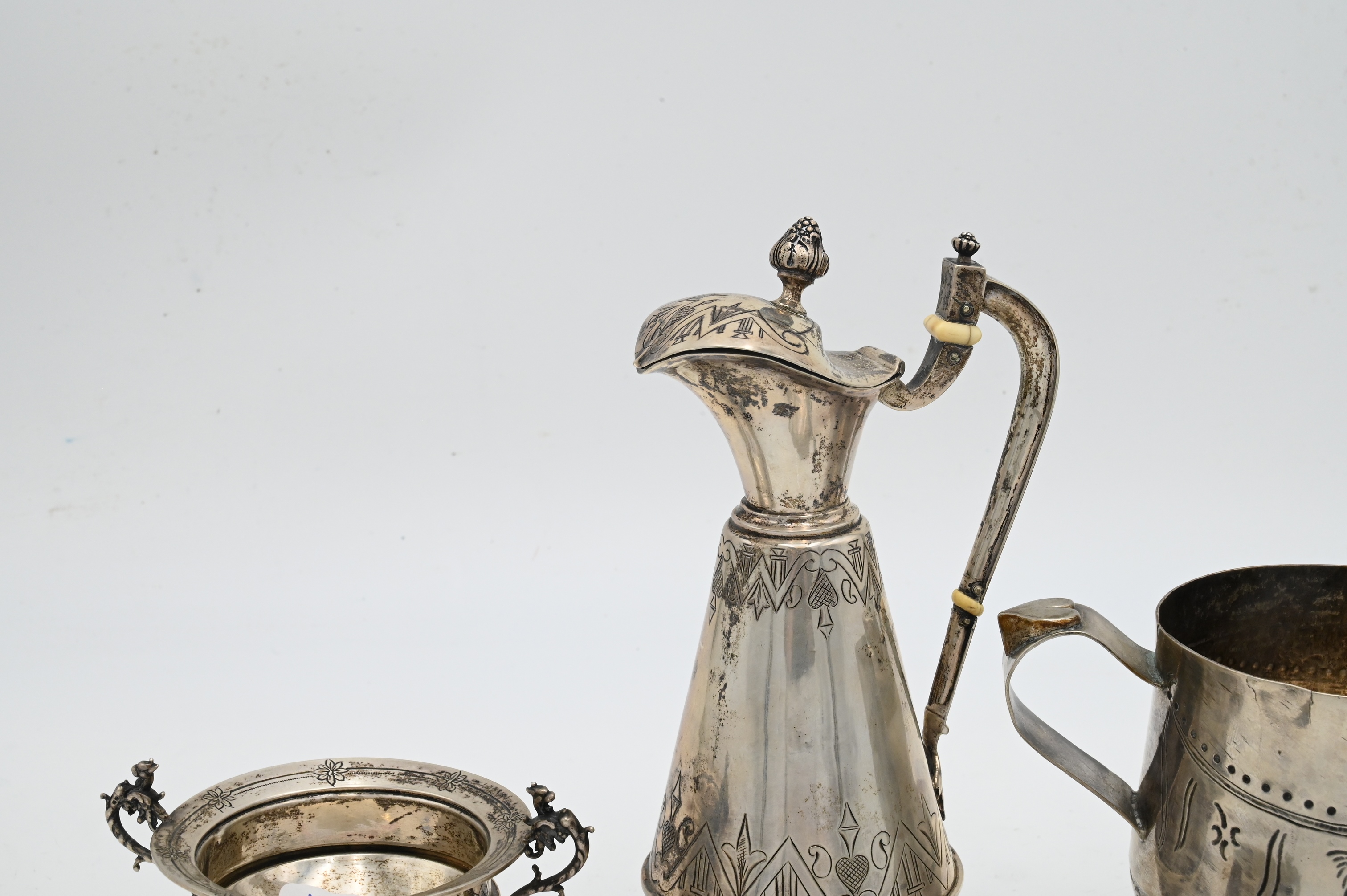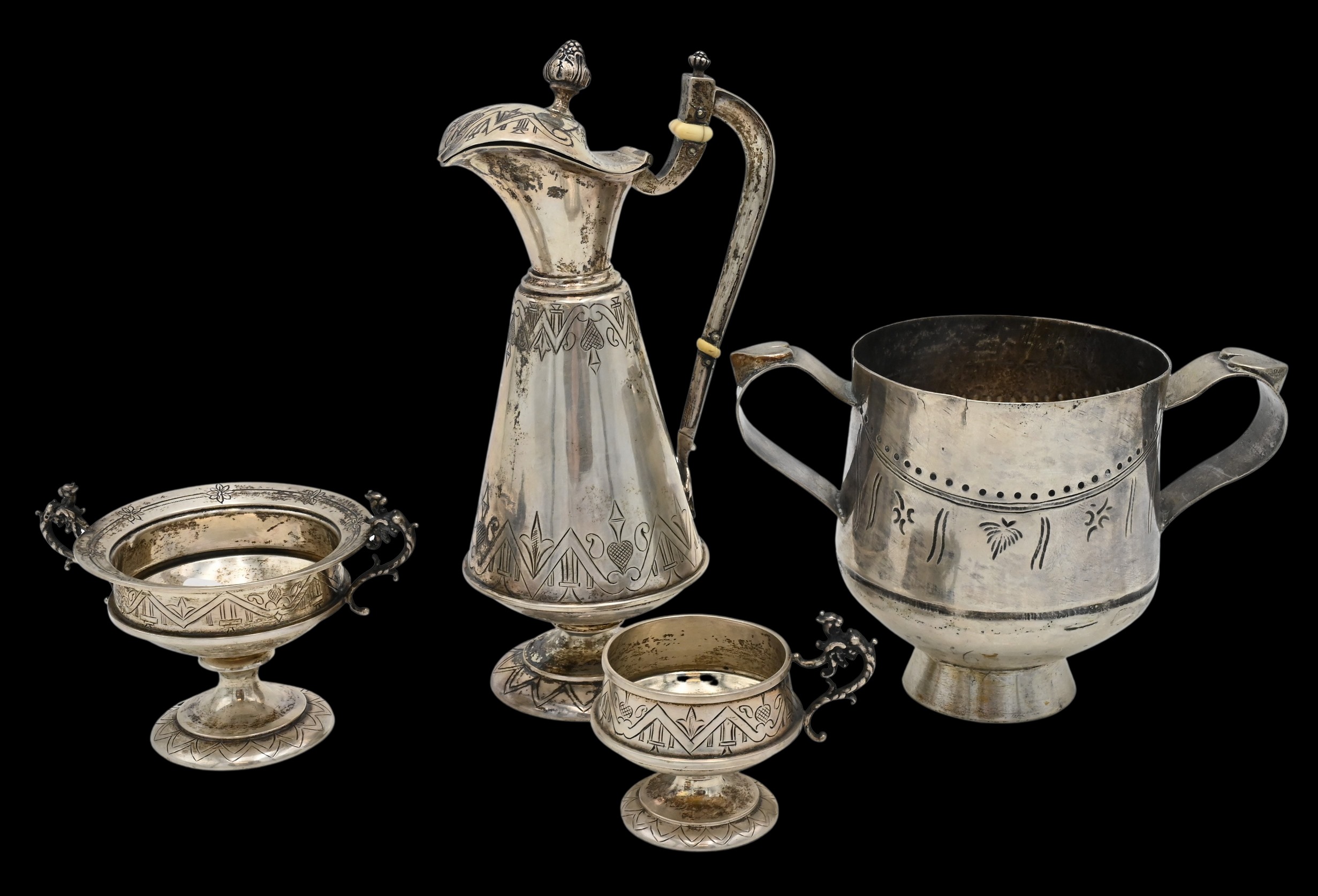 Four Piece Continental Silver Group, to include a pitcher and three vessel, tallest height 7 inches, 19.4 t.oz.