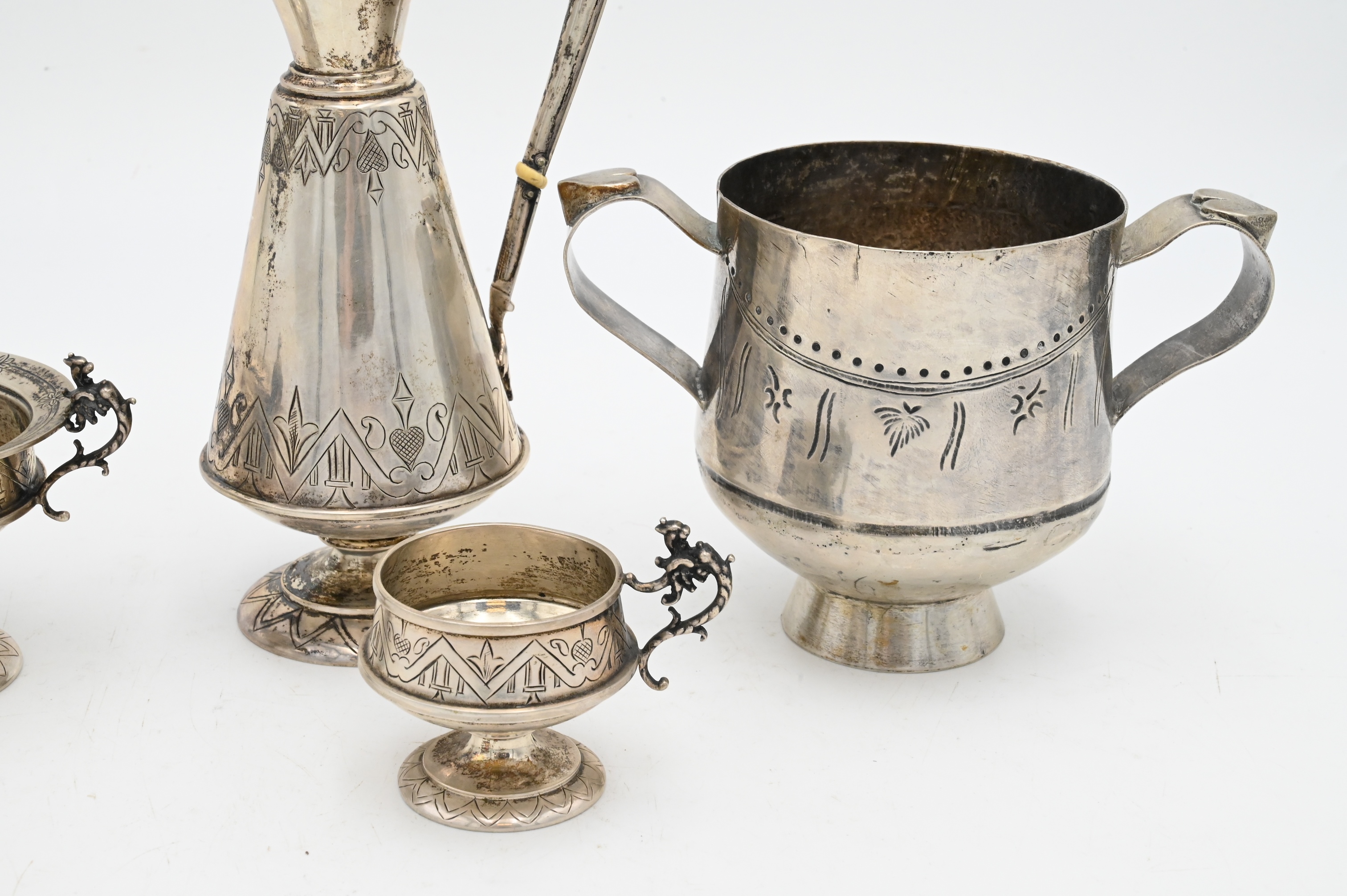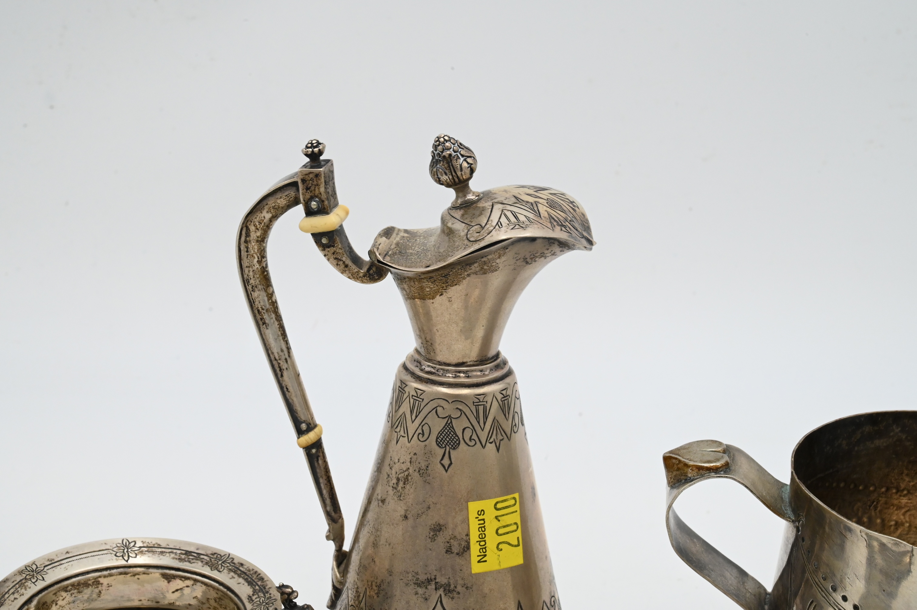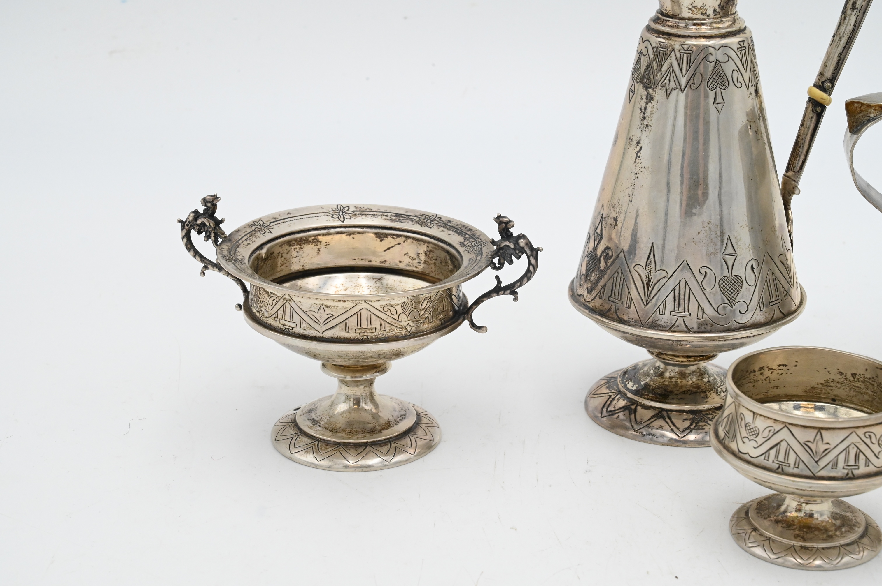Four Piece Continental Silver Group, to include a pitcher and three vessel, tallest height 7 inches, 19.4 t.oz.