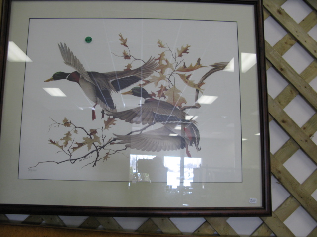 Group of prints including a pair of parrots, a trout, pair of ducks, etc.