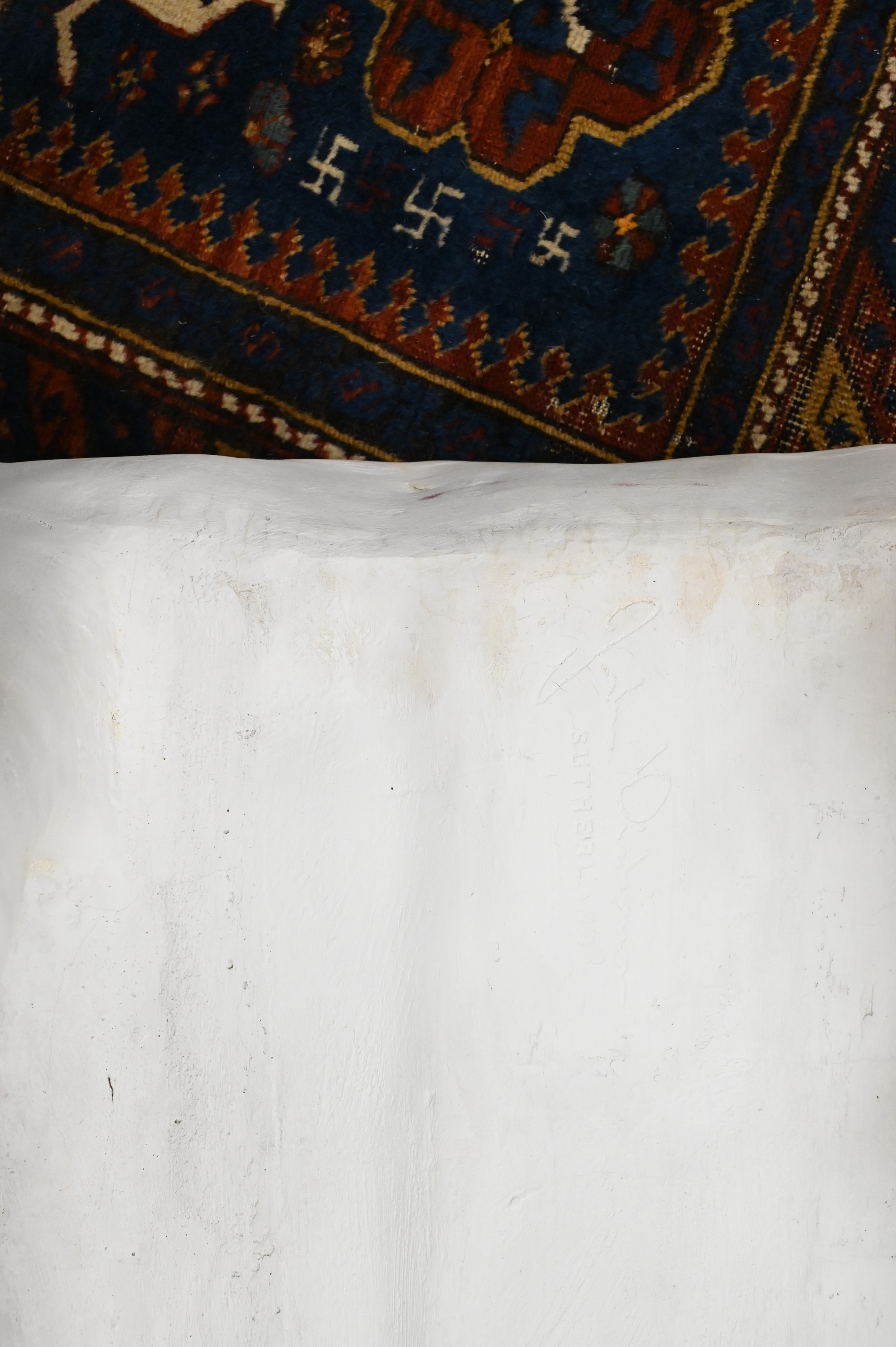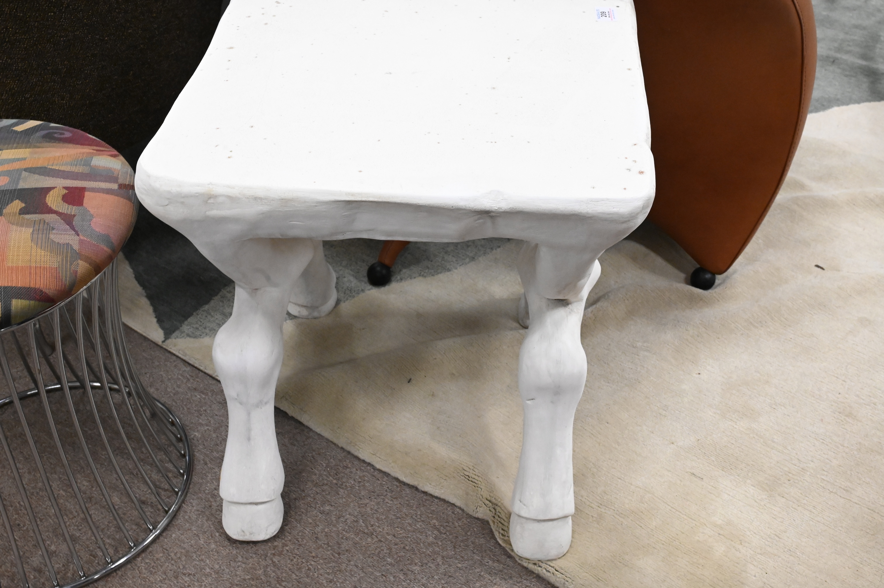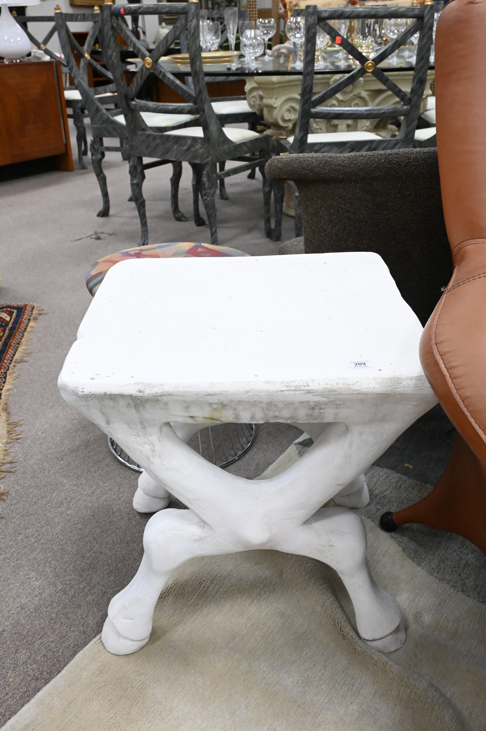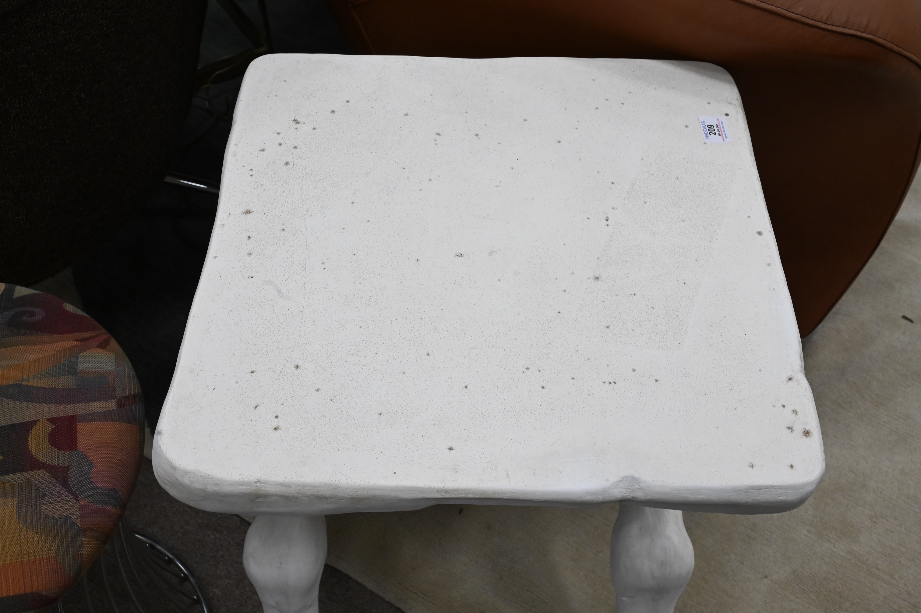 John Dickinson (1920 – 1982), X-leg table, painted plaster, impressed signature to underside ‘John Dickinson Sutherland’, height 21 1/4 inches, top 19 1/2″ x 19 1/2″.