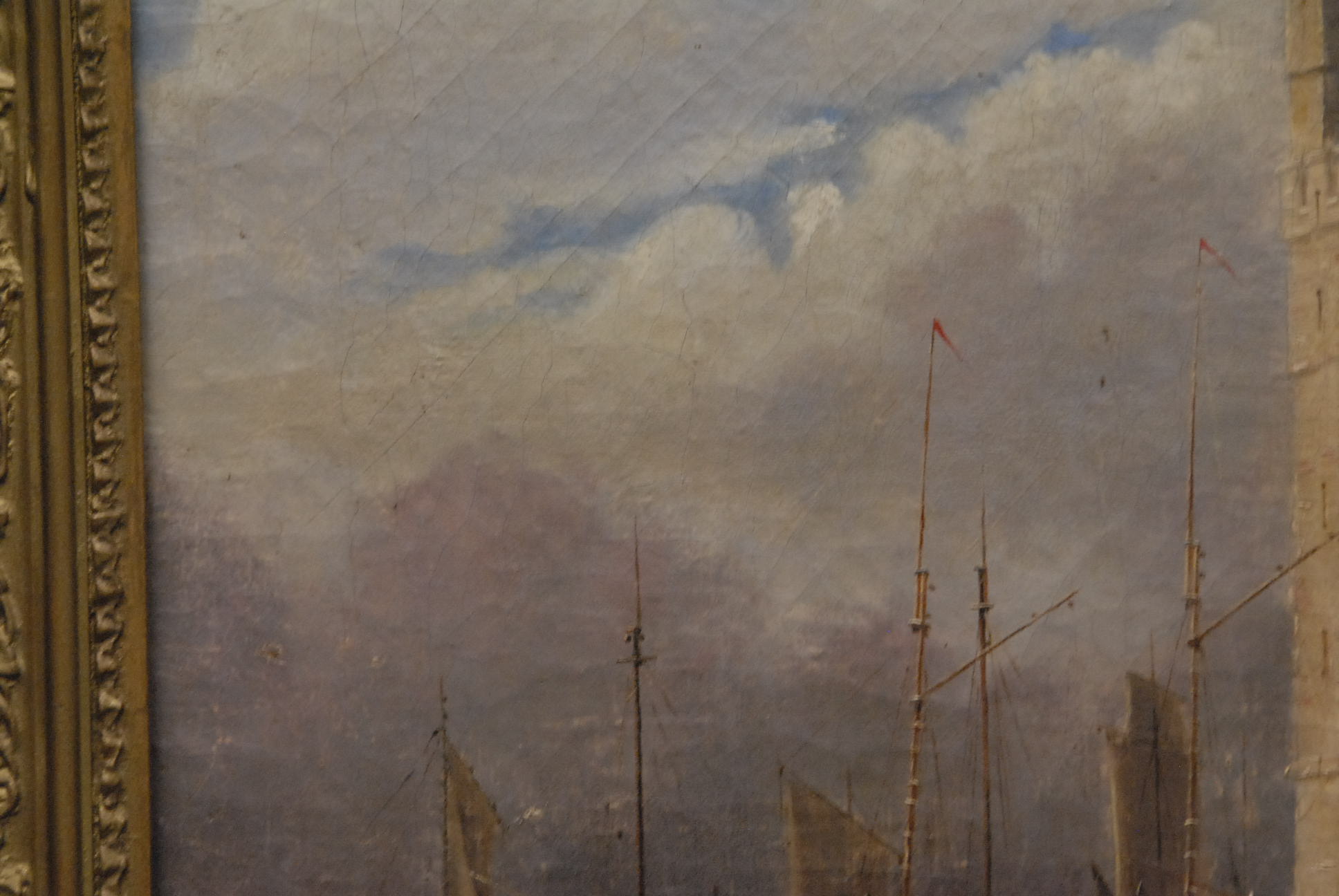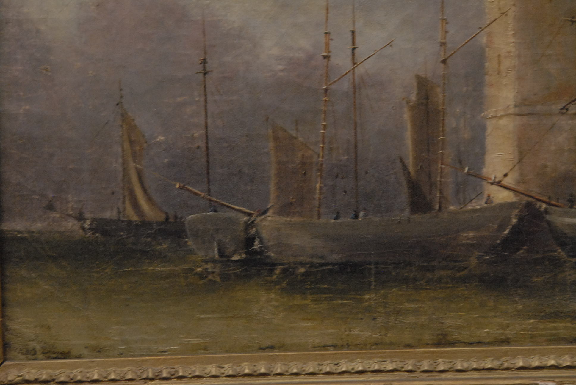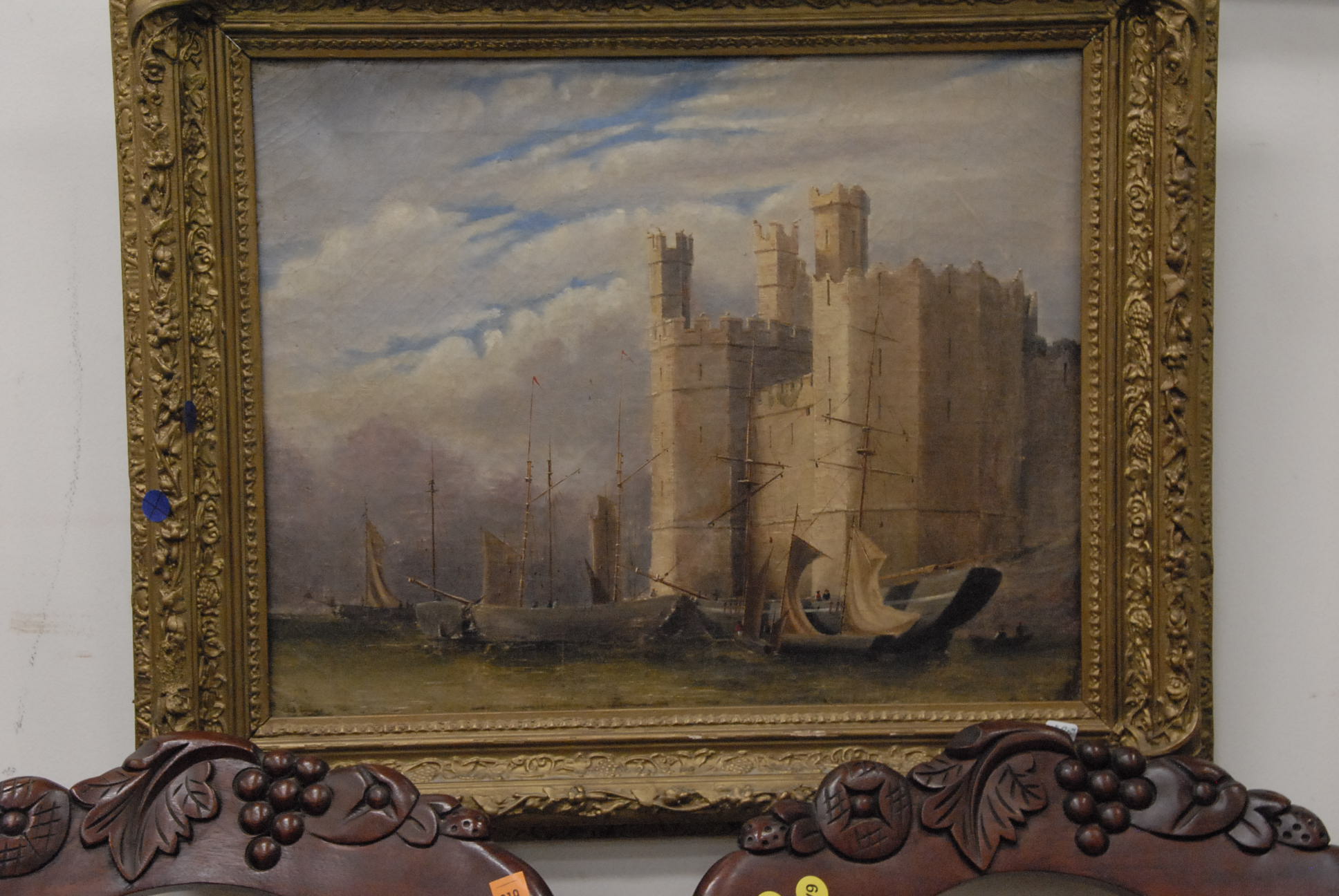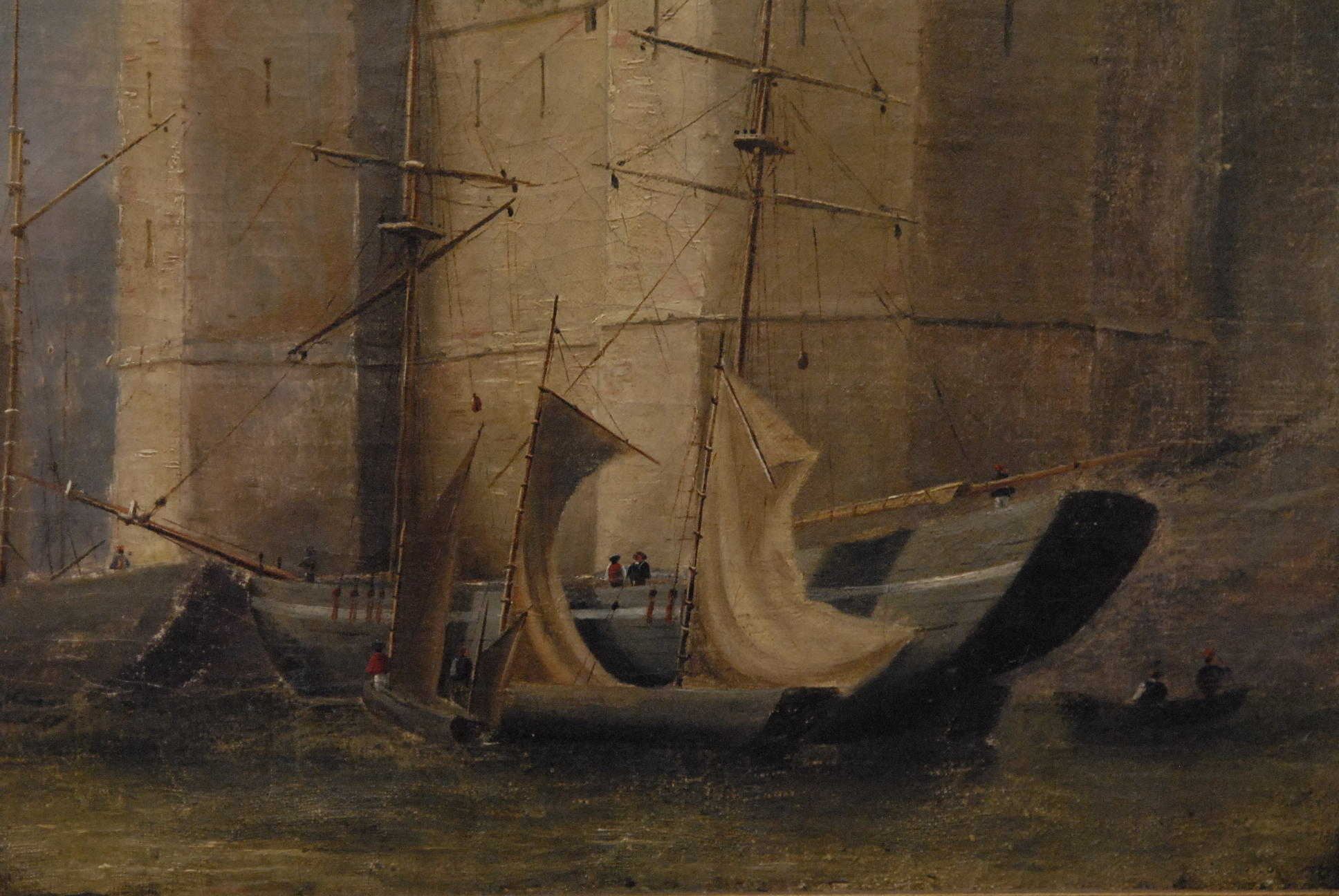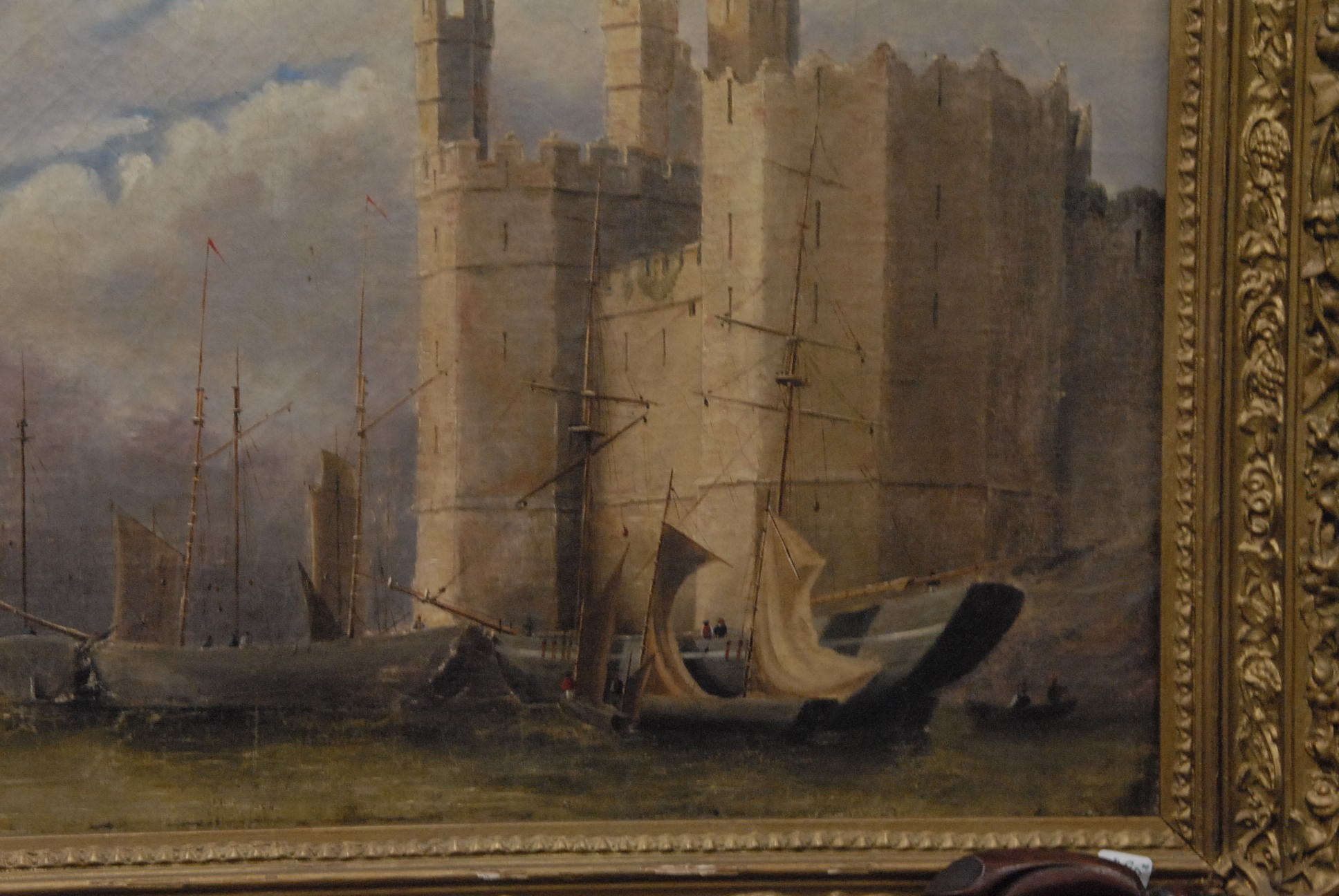 Oil on canvas castle and boats