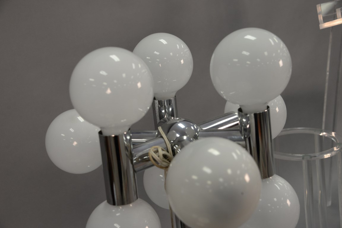 Sonneman chrome lamp with eight globes, ht. 33 in.