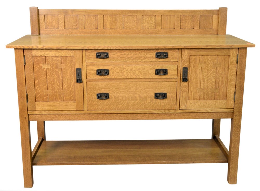 Lot 209: Stickley Mission Collection Oak Sideboard, having gallery top over graduated drawers in the center flanked by two doors having hand …
