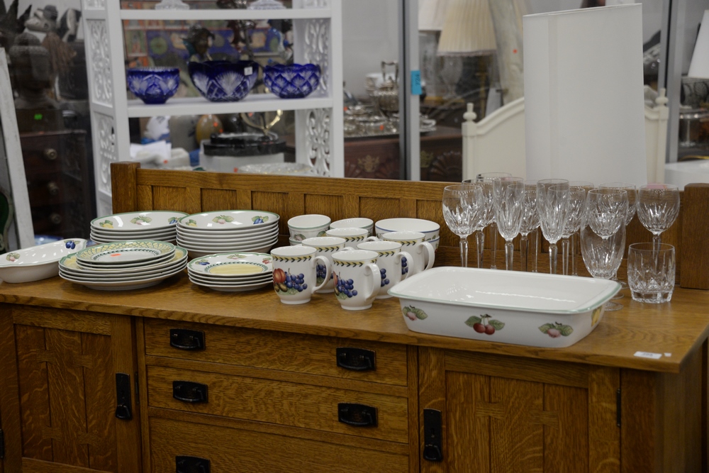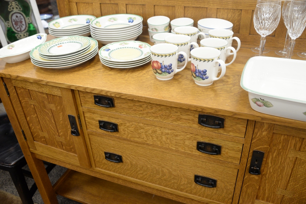 Lot 209: Stickley Mission Collection Oak Sideboard, having gallery top over graduated drawers in the center flanked by two doors having hand …