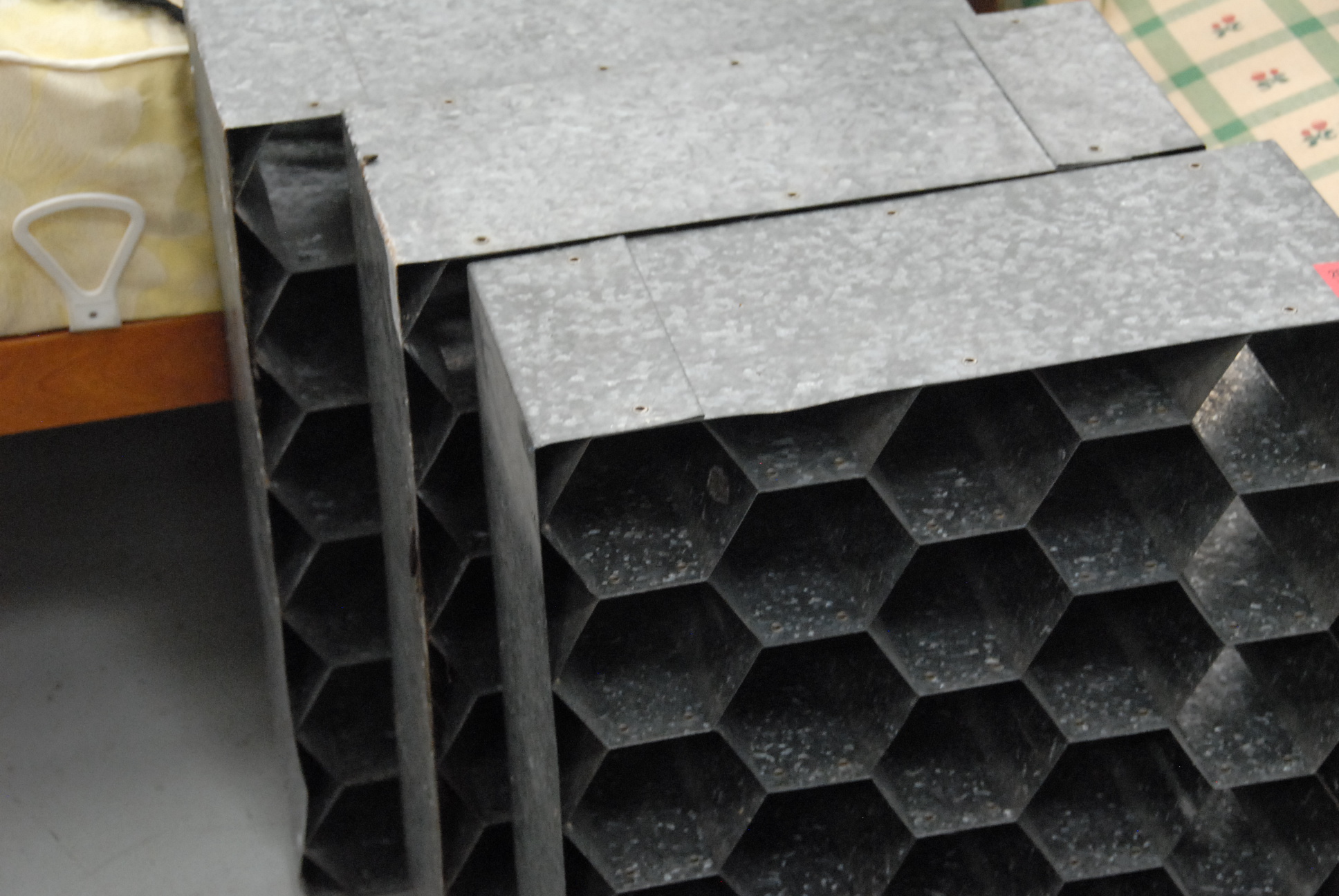 Three galvanized steel wine racks, 23 x 17 1/2in.