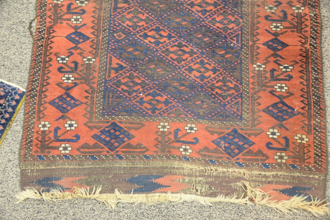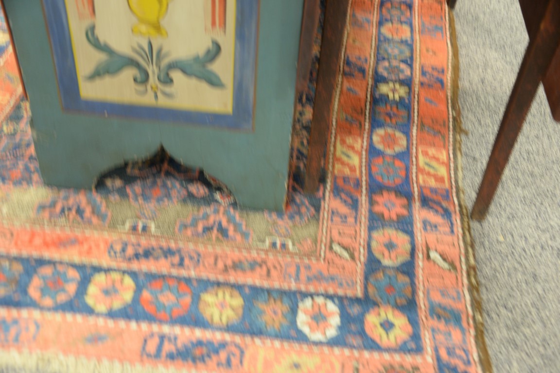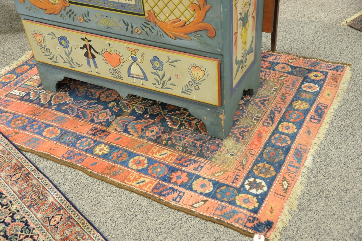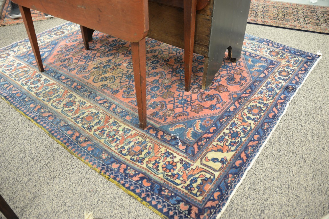 Three Oriental throw rugs, some wear. 5’4 x 6’2, 3’4 x 5’5, and 4′ x 5’10.