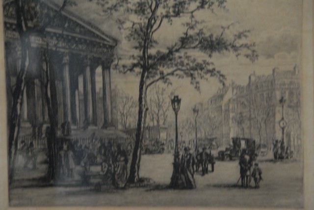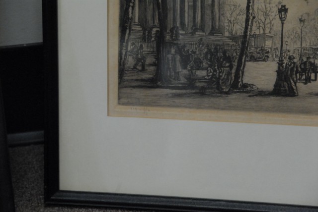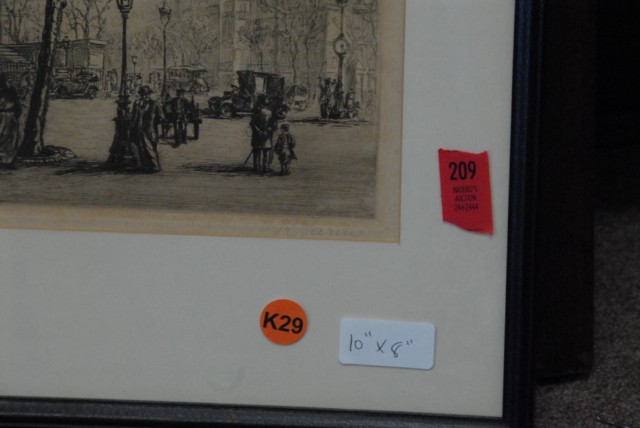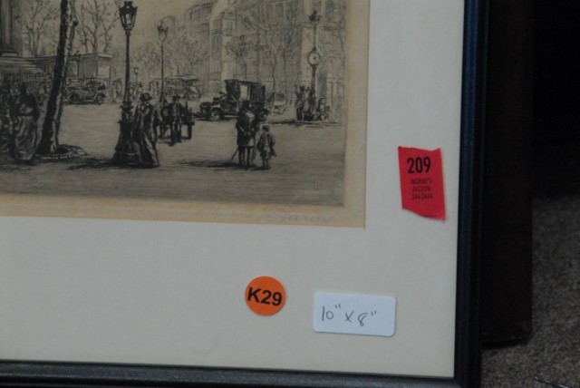Two etchings to include 1940’s STREET SCENE, etching, signed lower right R. Varay and SNOW SCENE, etching, unsigned.