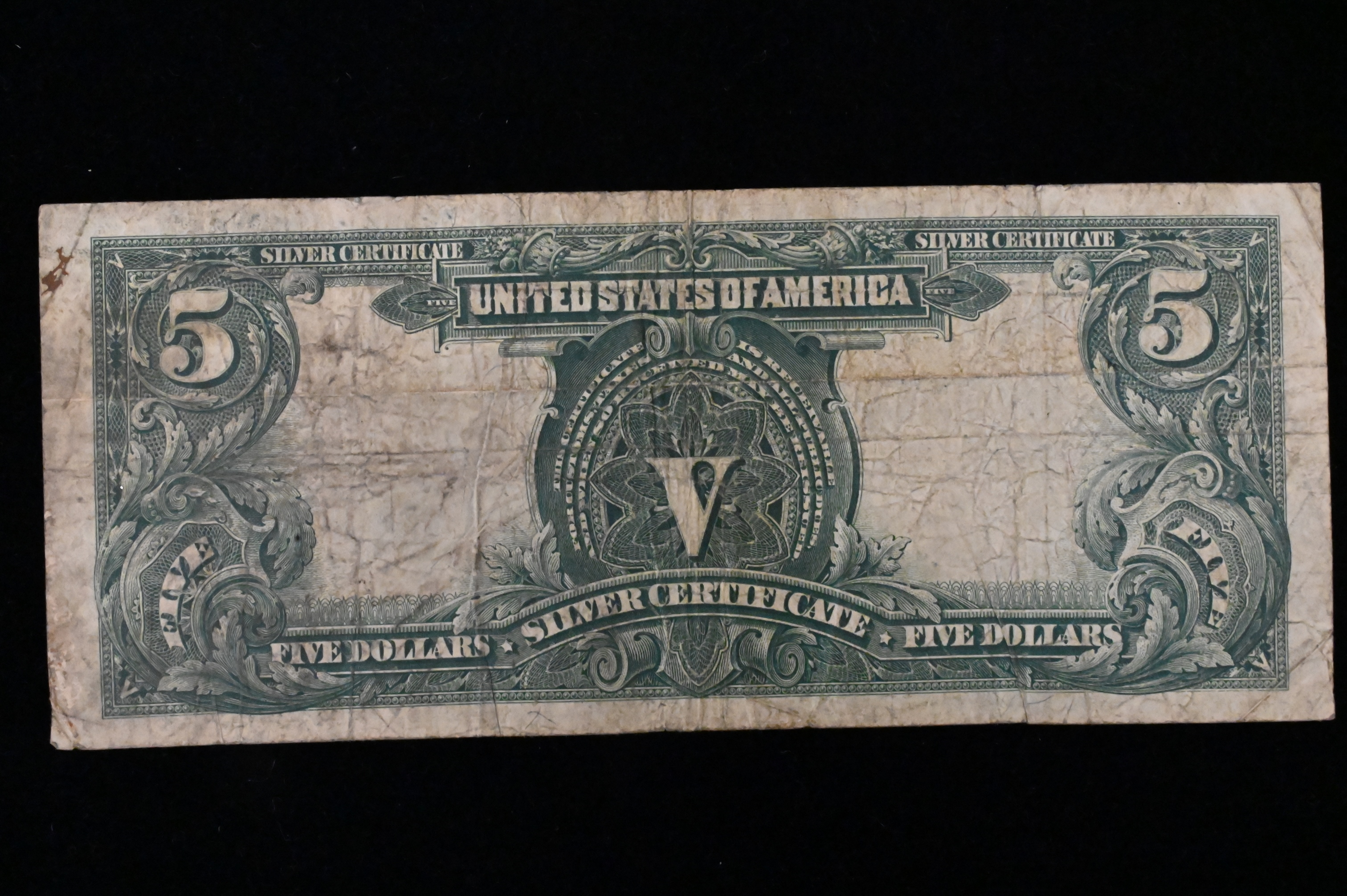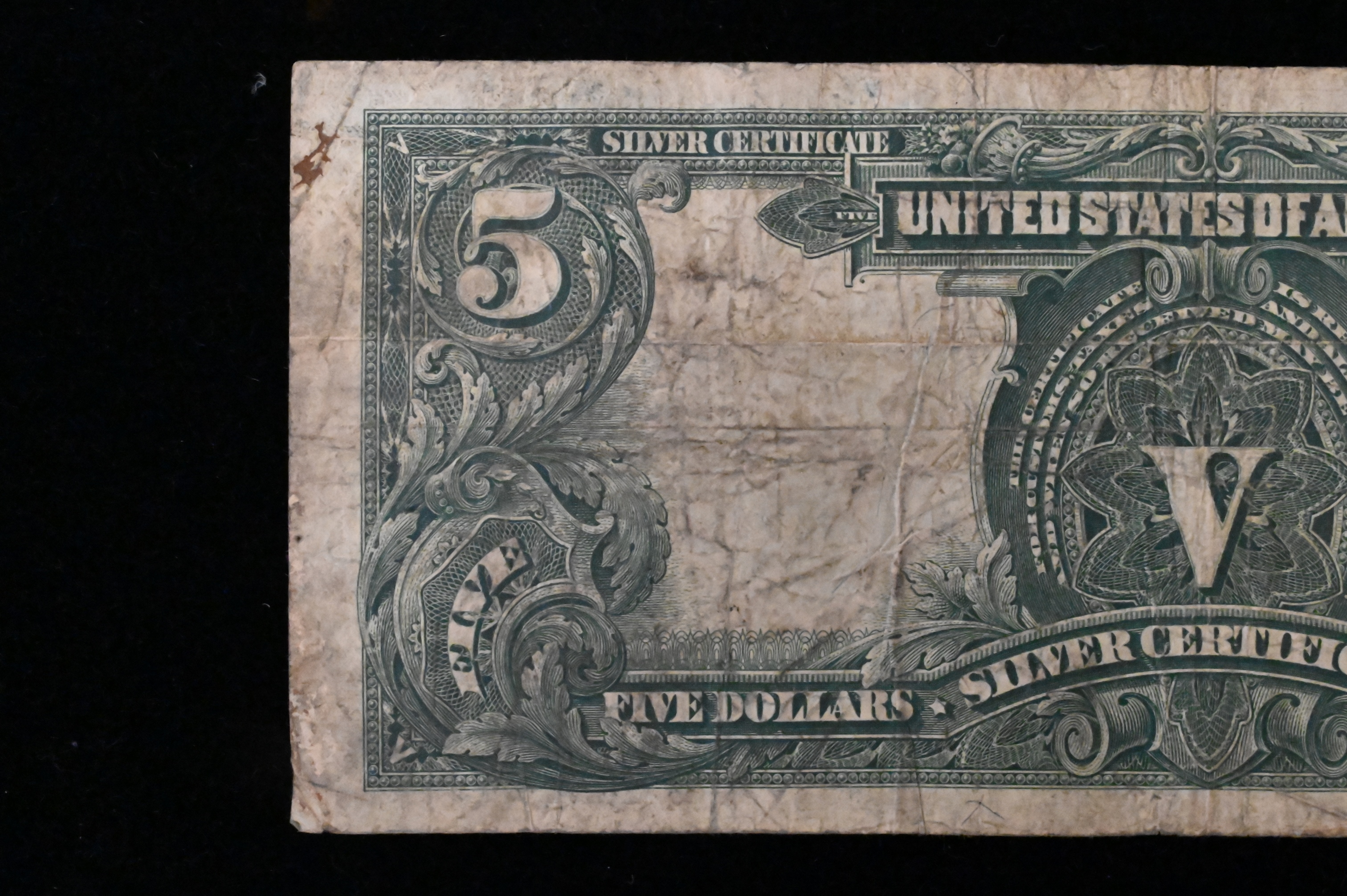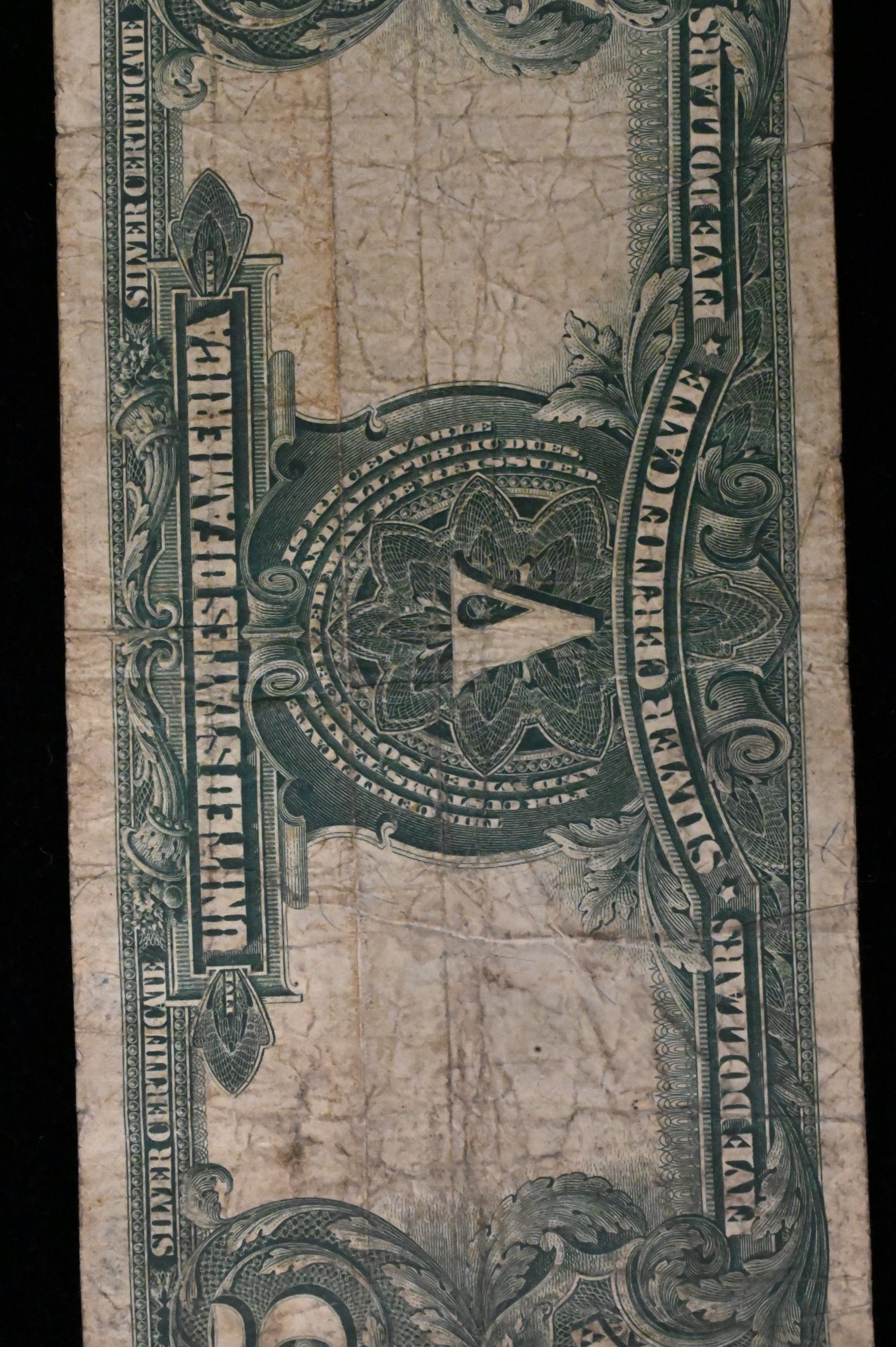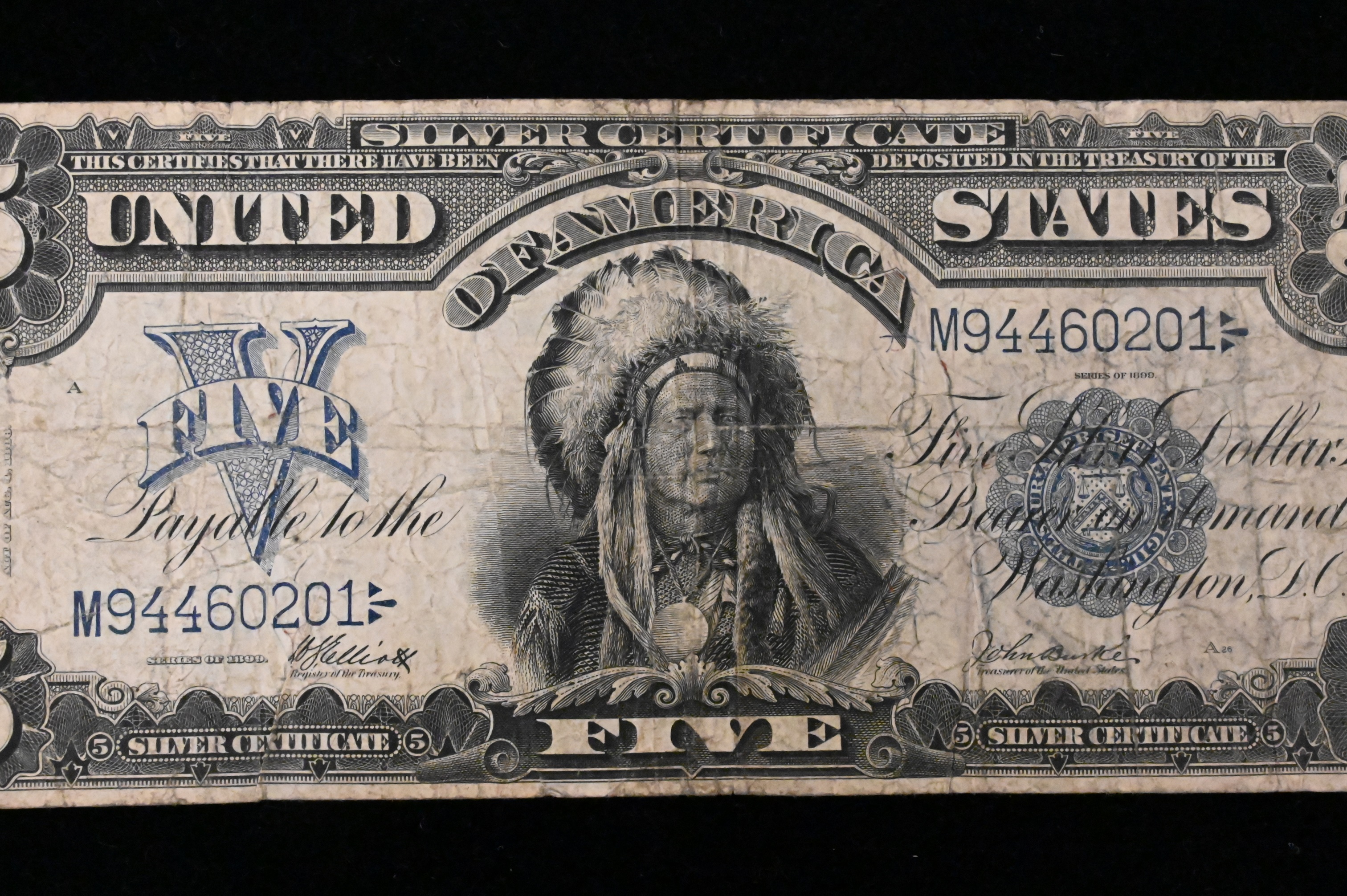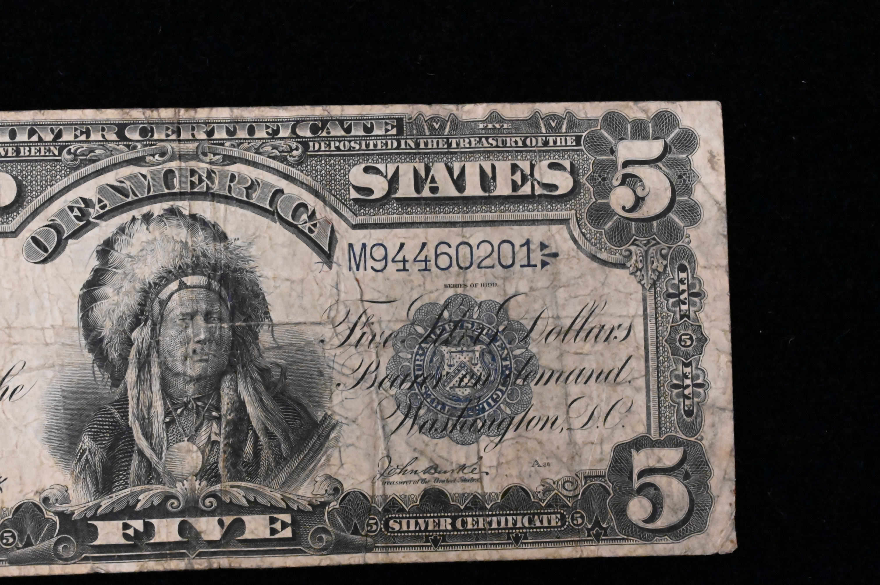 Two Notes, to include one 1899 $5 dollar Indian and one $1 dollar Silver certificate #279 VG