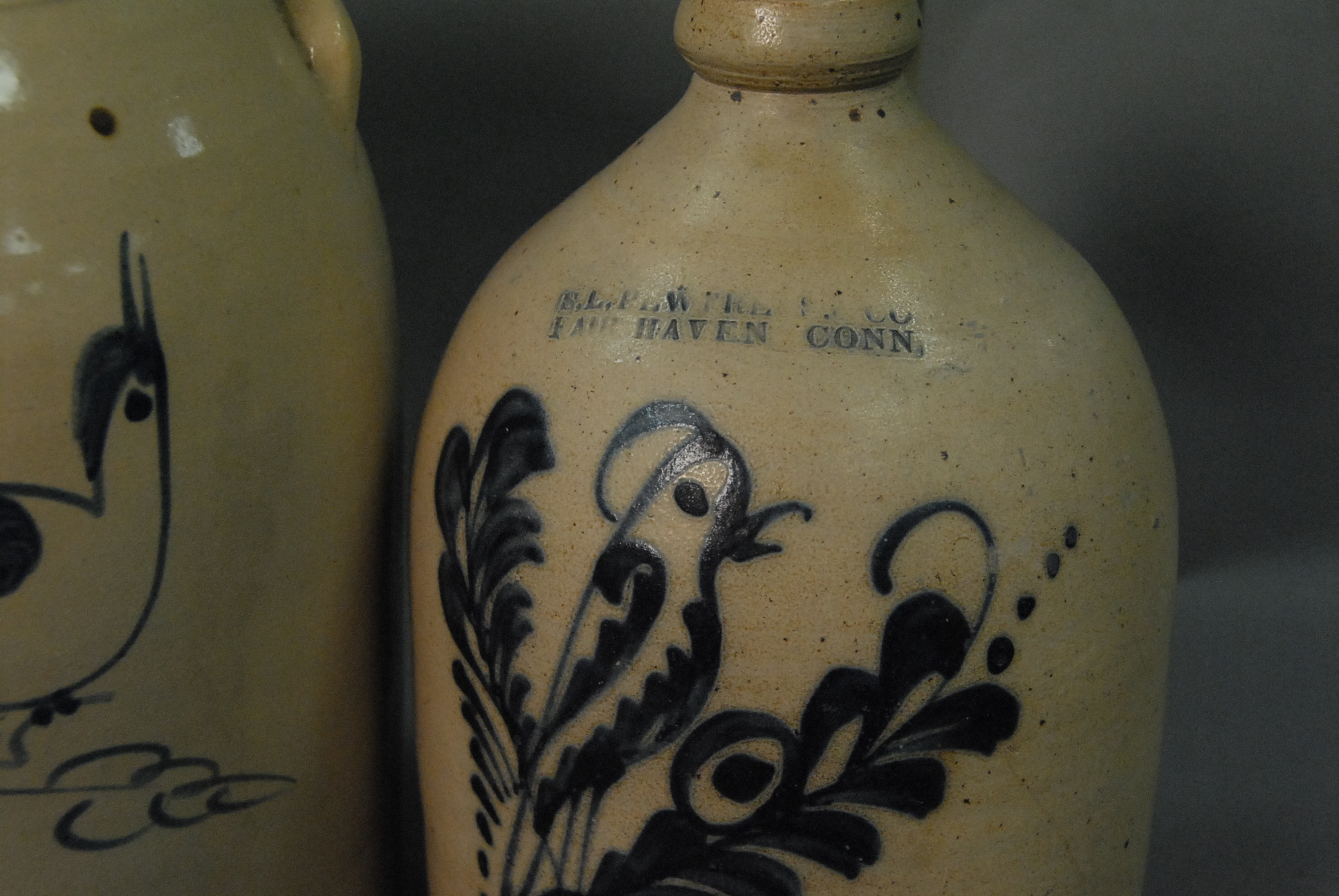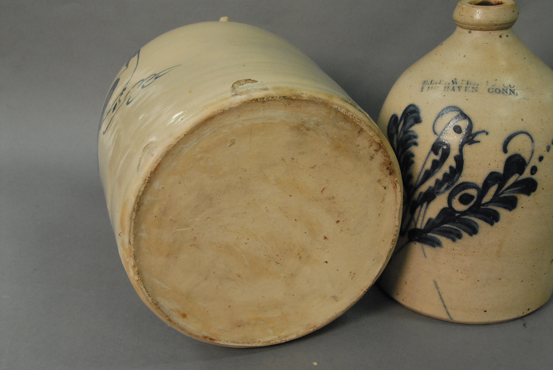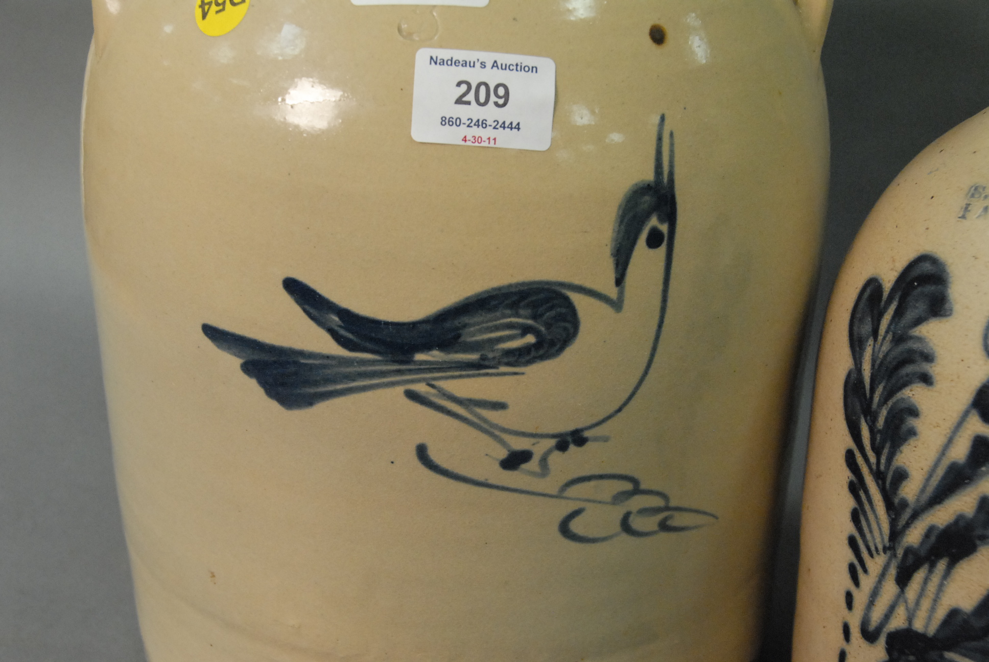 Two pieces of stoneware, jug & crock, each with bluebird decoration.