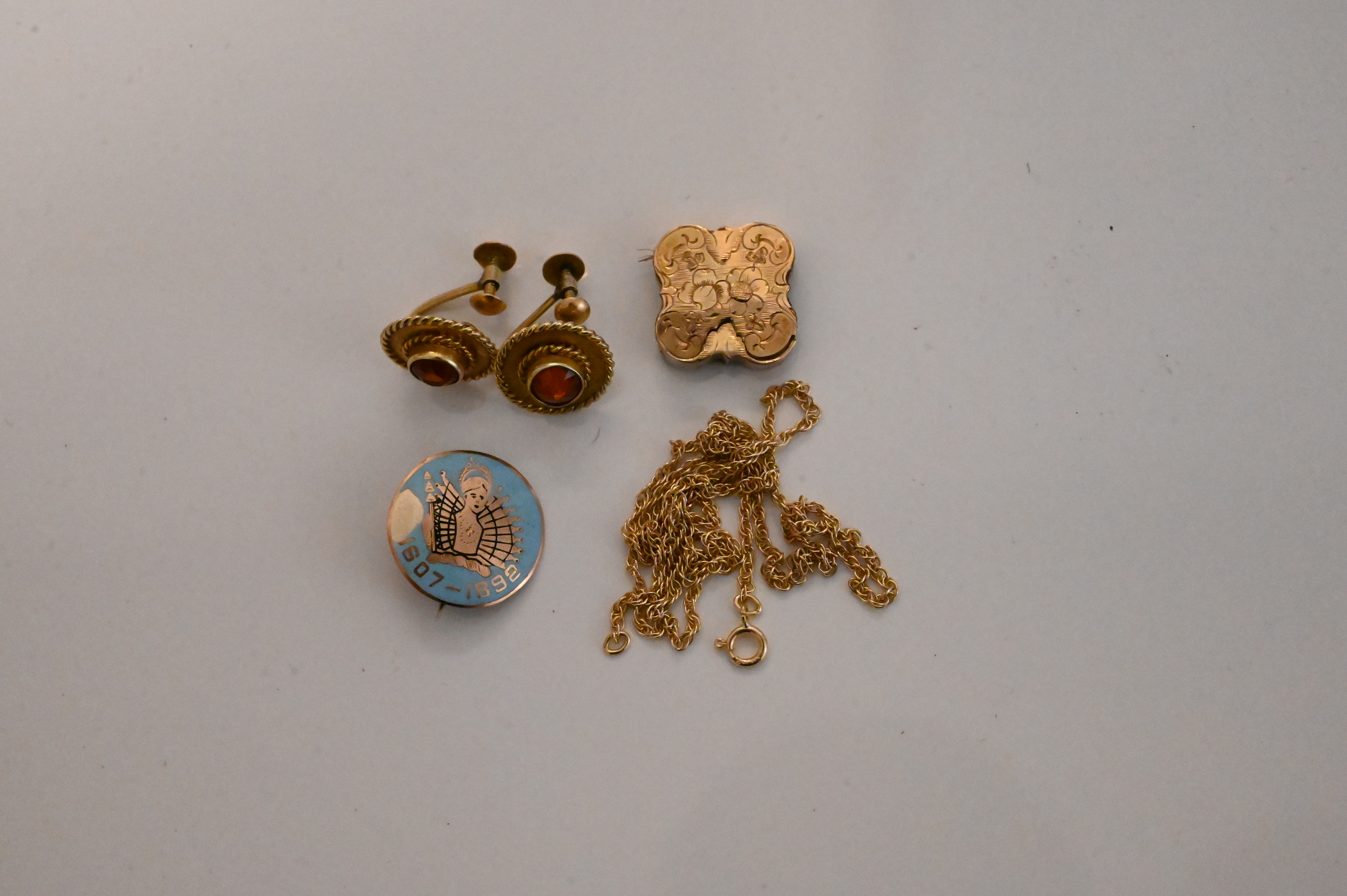 to include pair of earrings, necklace, Victorian pin, and Victorian slide