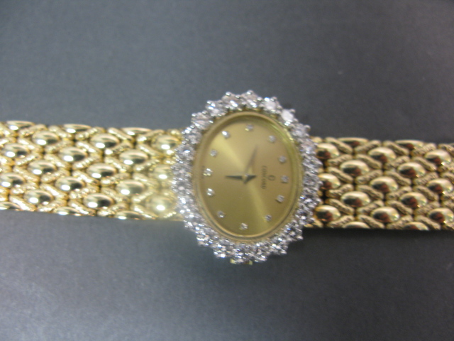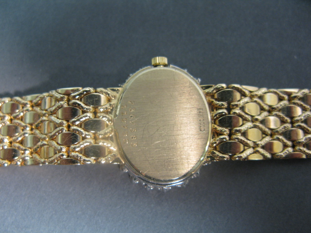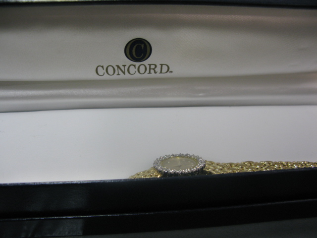 14 K gold Concord lady’s wristwatch surrounded by 24 diamonds, in original case and box.