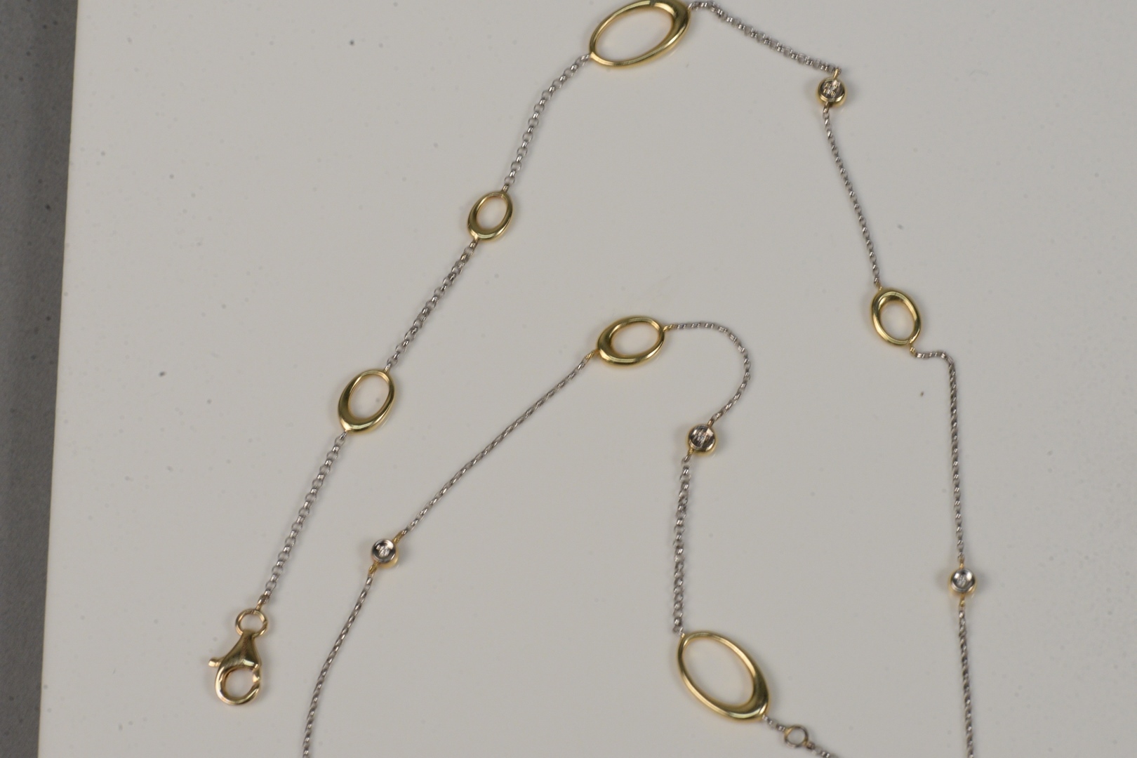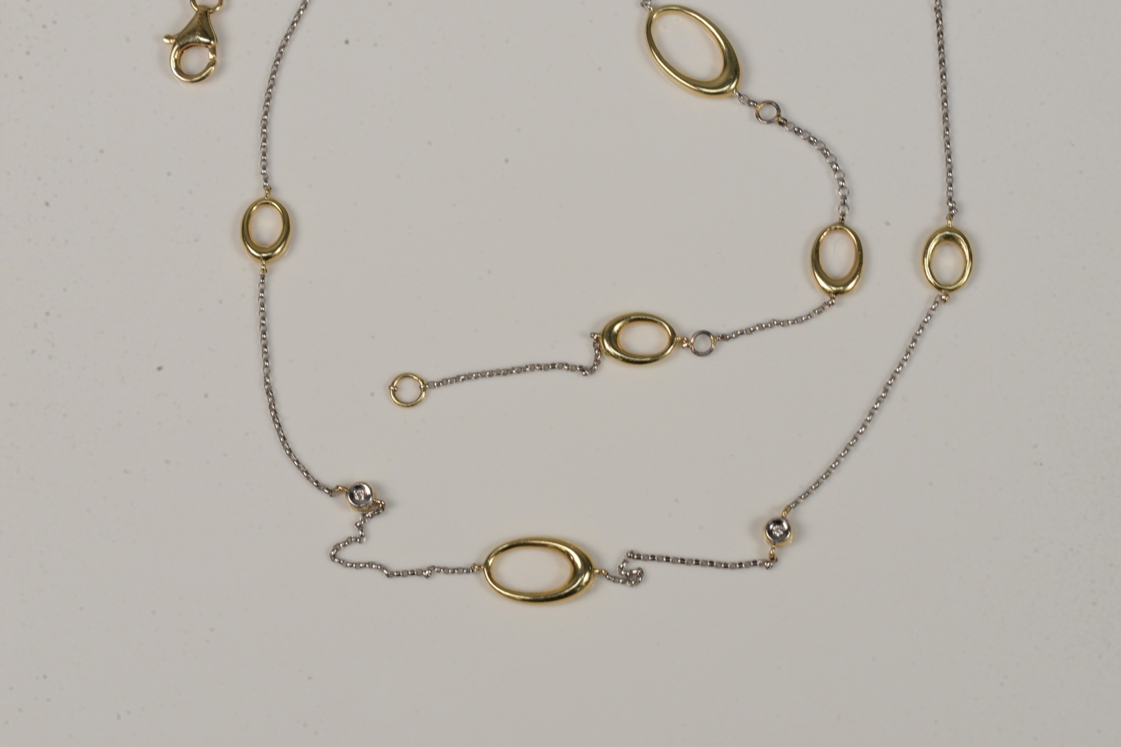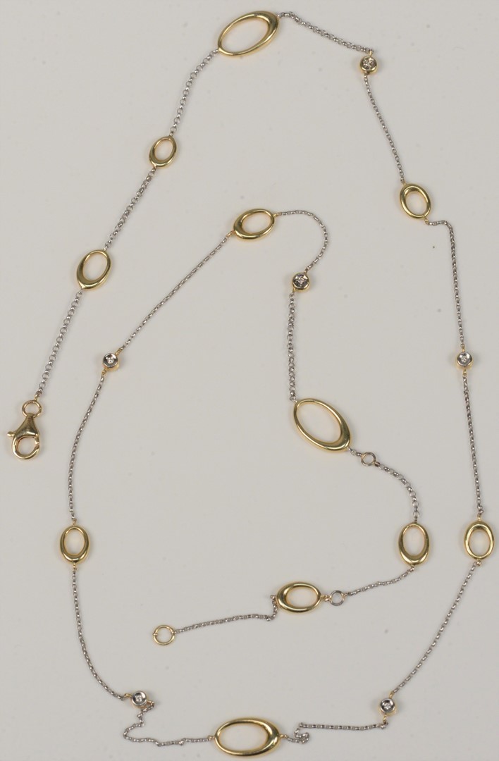 14 Karat Gold Necklace with various ovals and small diamonds length 27 3/8 inches 12 grams