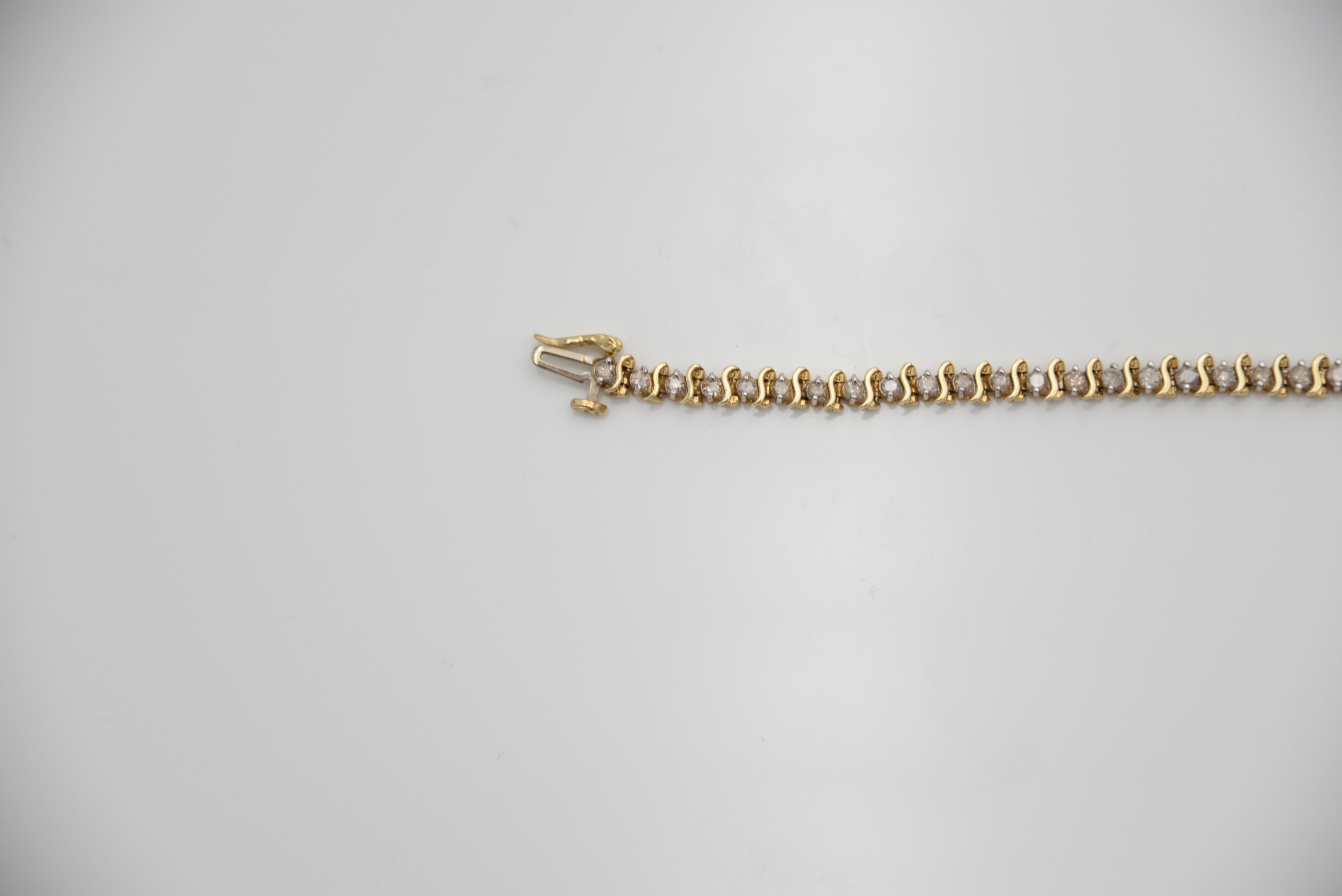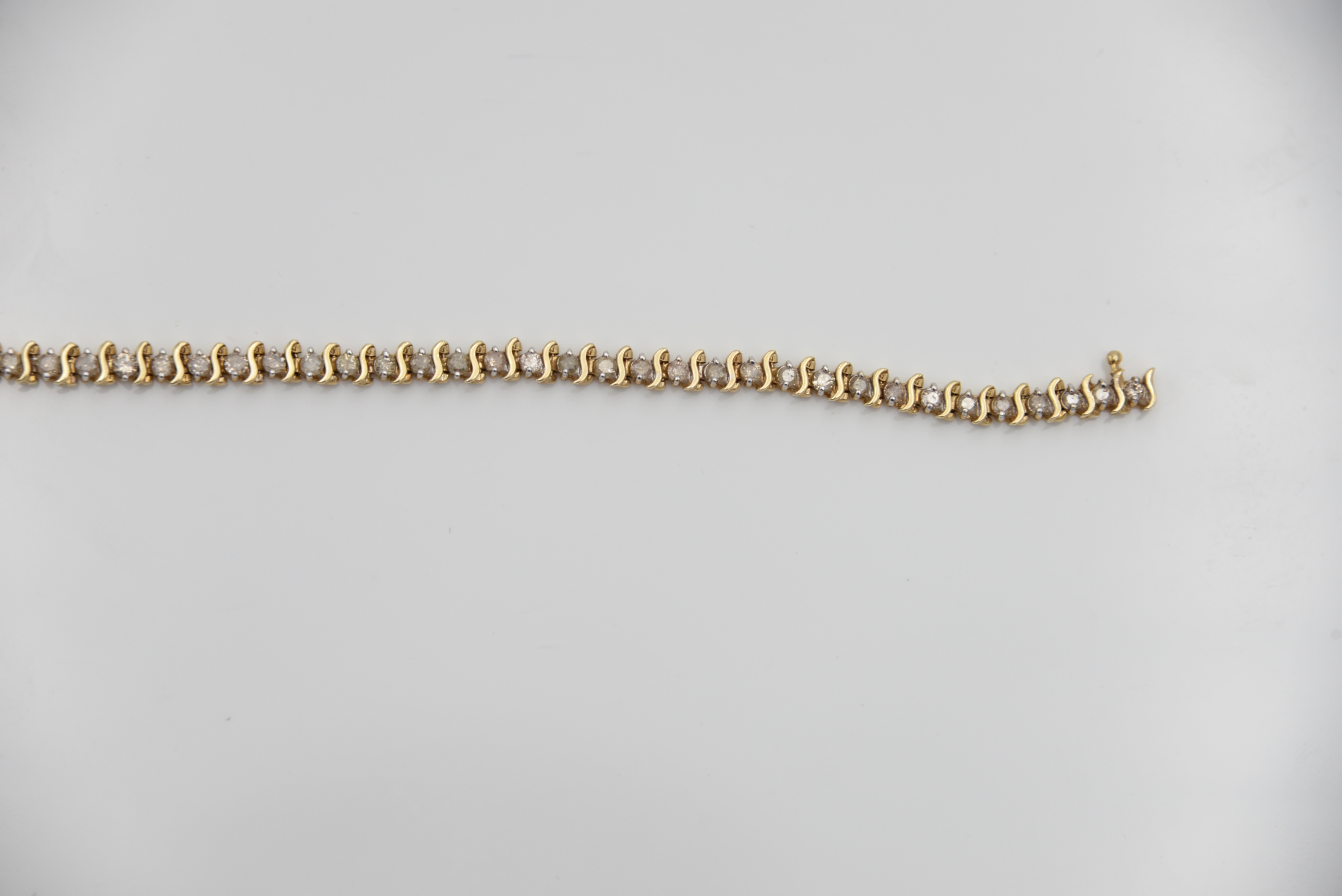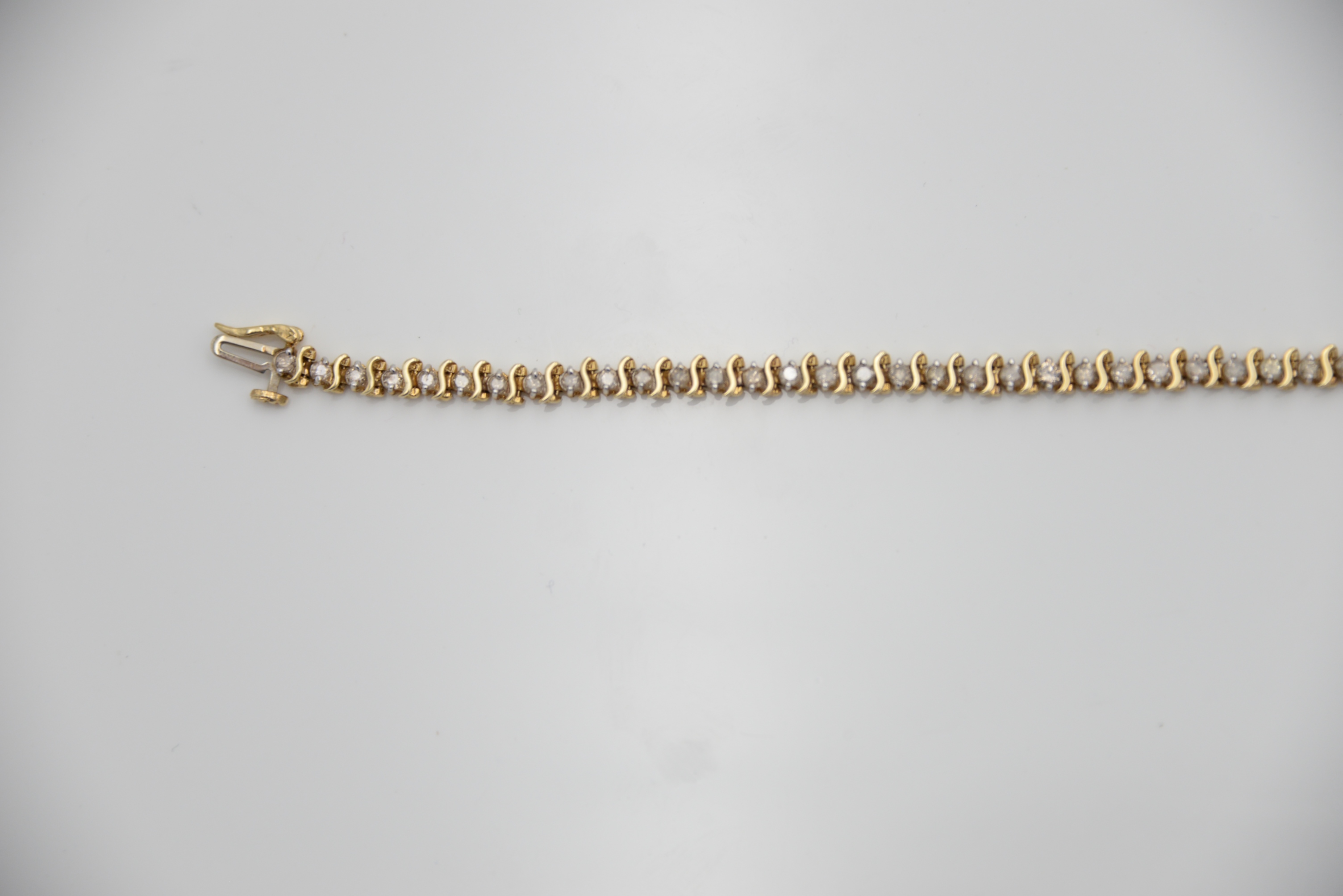 Lot 21: 14 Karat Yellow Gold and Diamond Tennis Bracelet