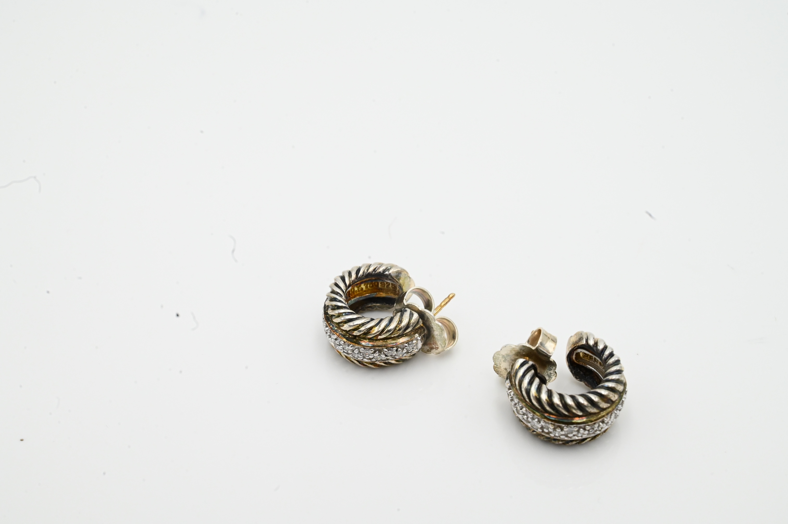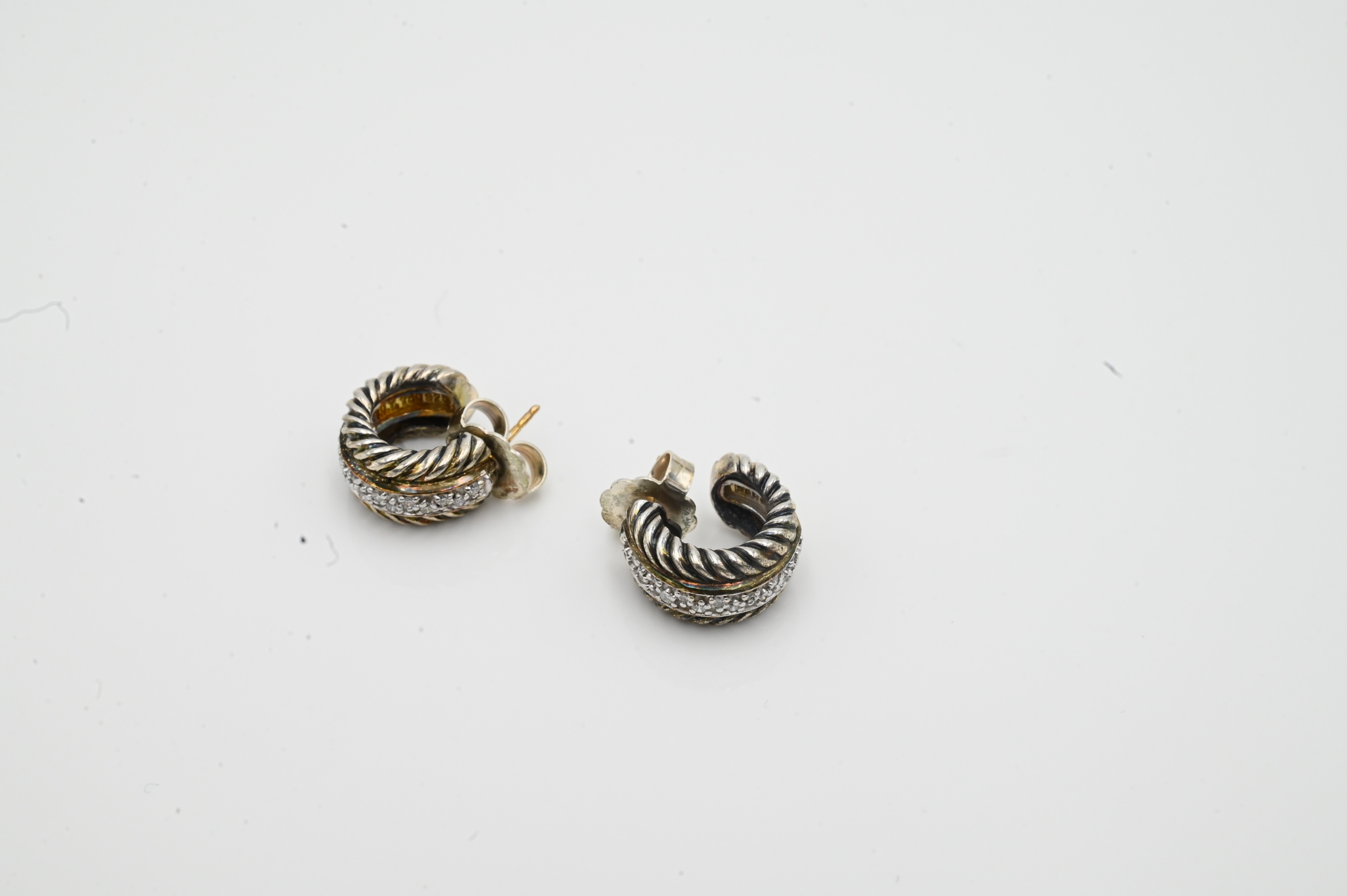 David Yurman 18 Karat Gold and Silver Earrings, set with small diamonds, height 1/2 inch, total weight 11.9 grams.