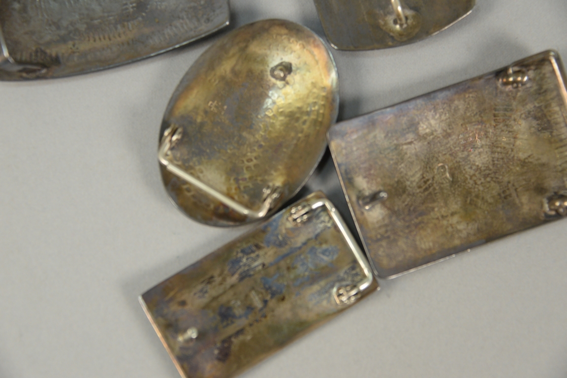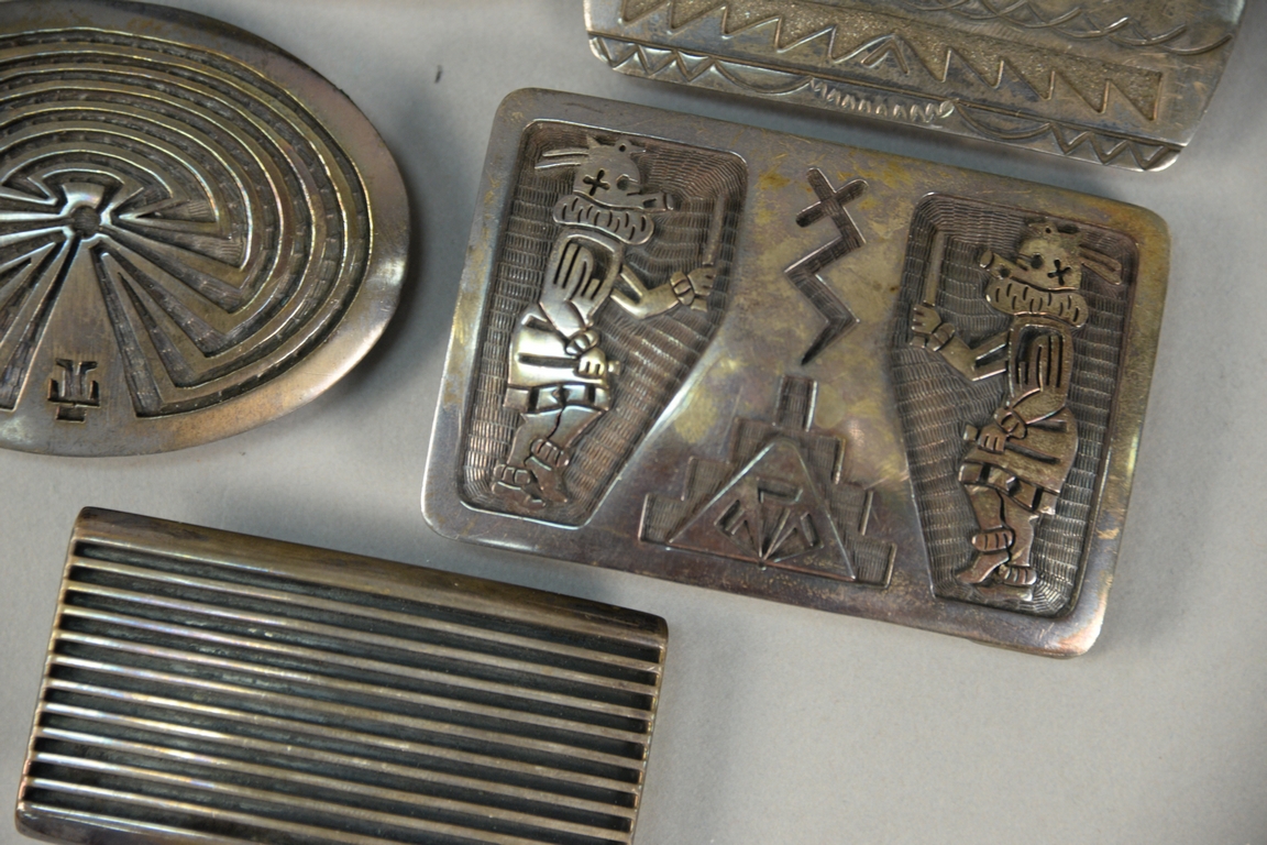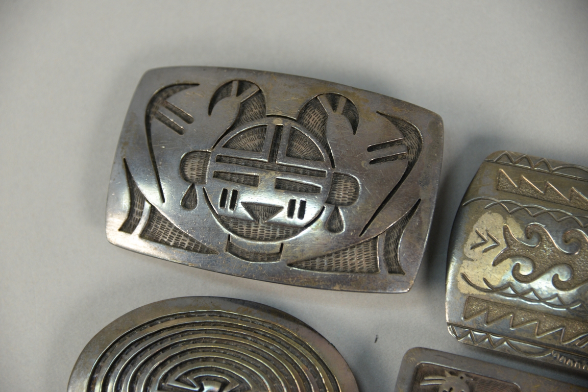 Five sterling silver Navajo Native American Indian belt buckles. largest: 2 x 3, 7.7 t oz.