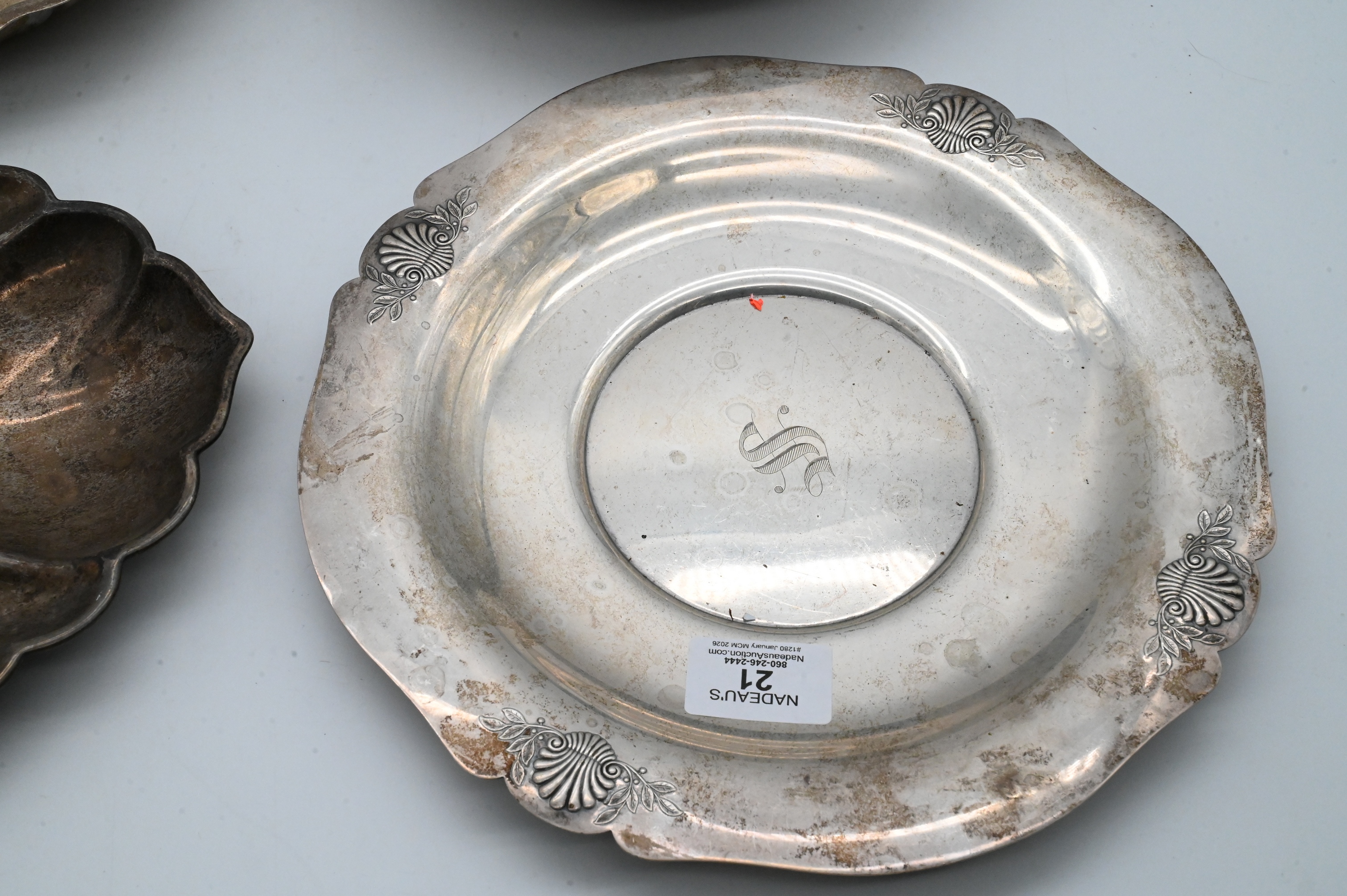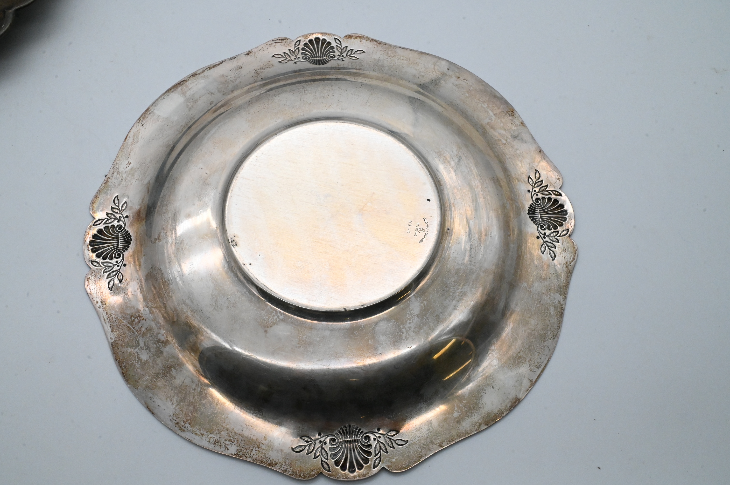 to include S. Kirk and Son Bowl, Gorham serving dish in Chippendale pattern, an old Wallingford tray with shell details and a four lobed dish