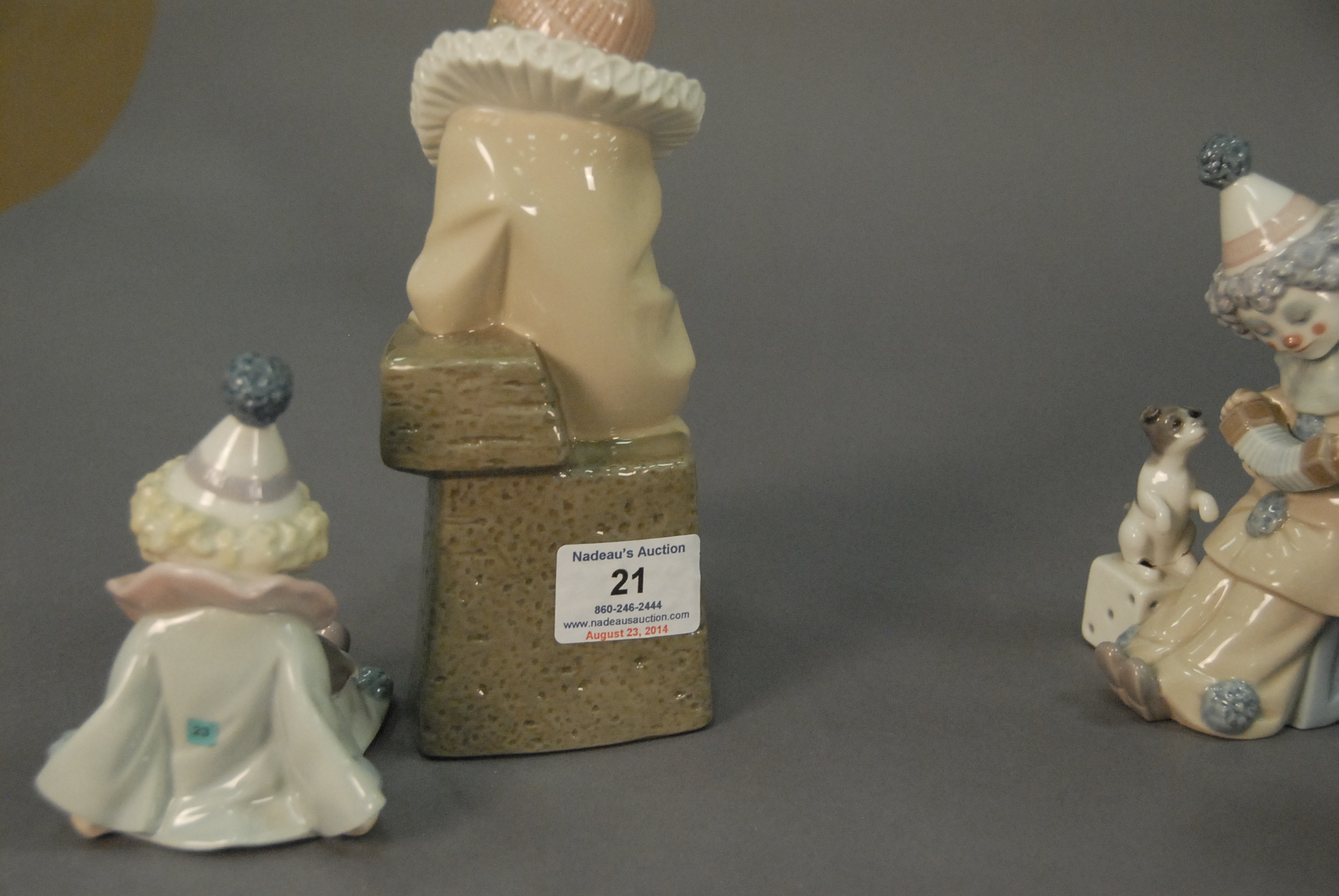 Group of four Lladros including a girl with a book and three small clowns, ht. 4 to 8.
