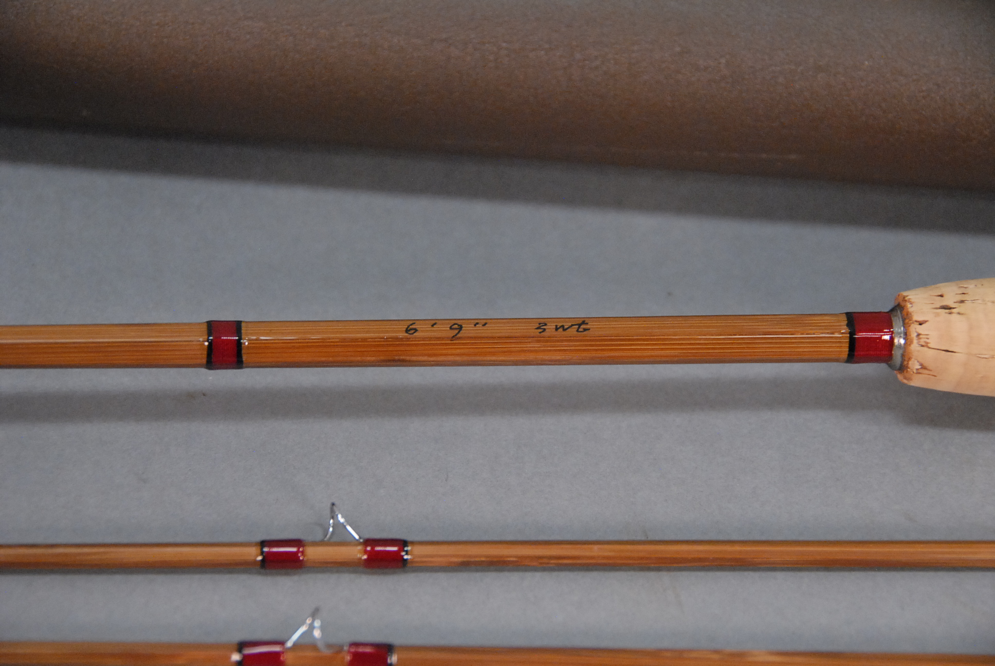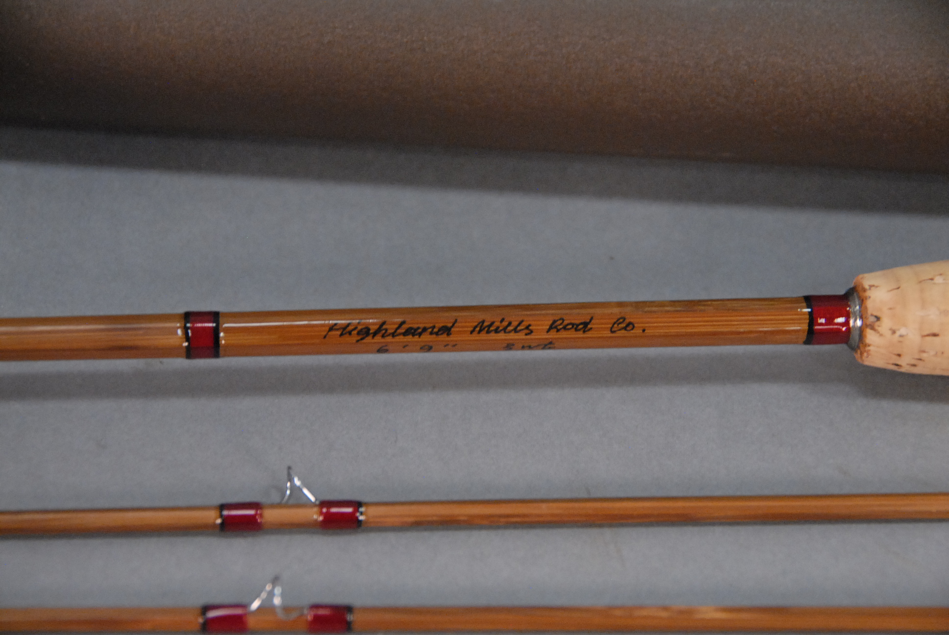 Highland Mills Rod Co., 3wt 6’9 bamboo fly rod, two piece with extra tip along with reel.