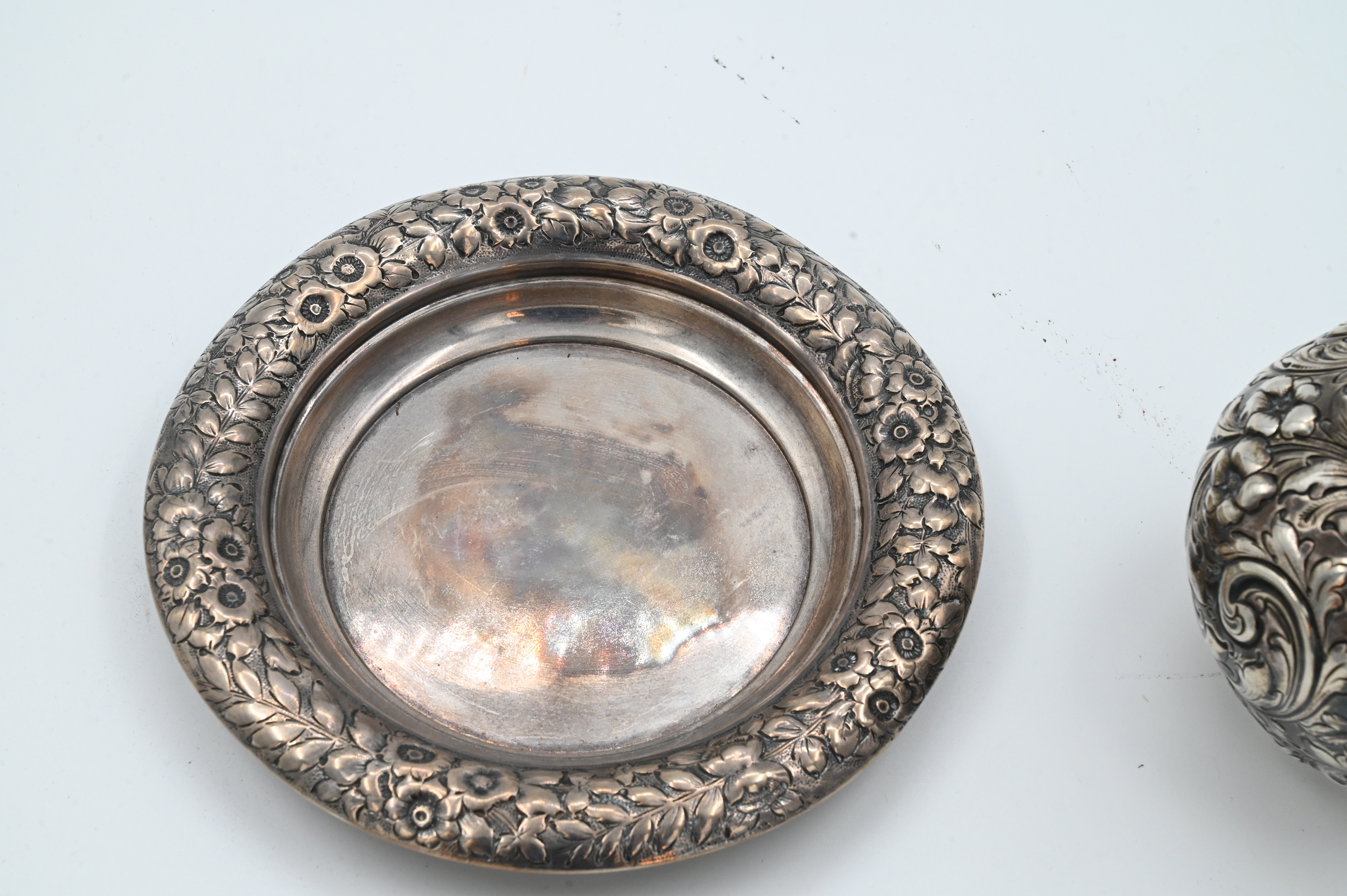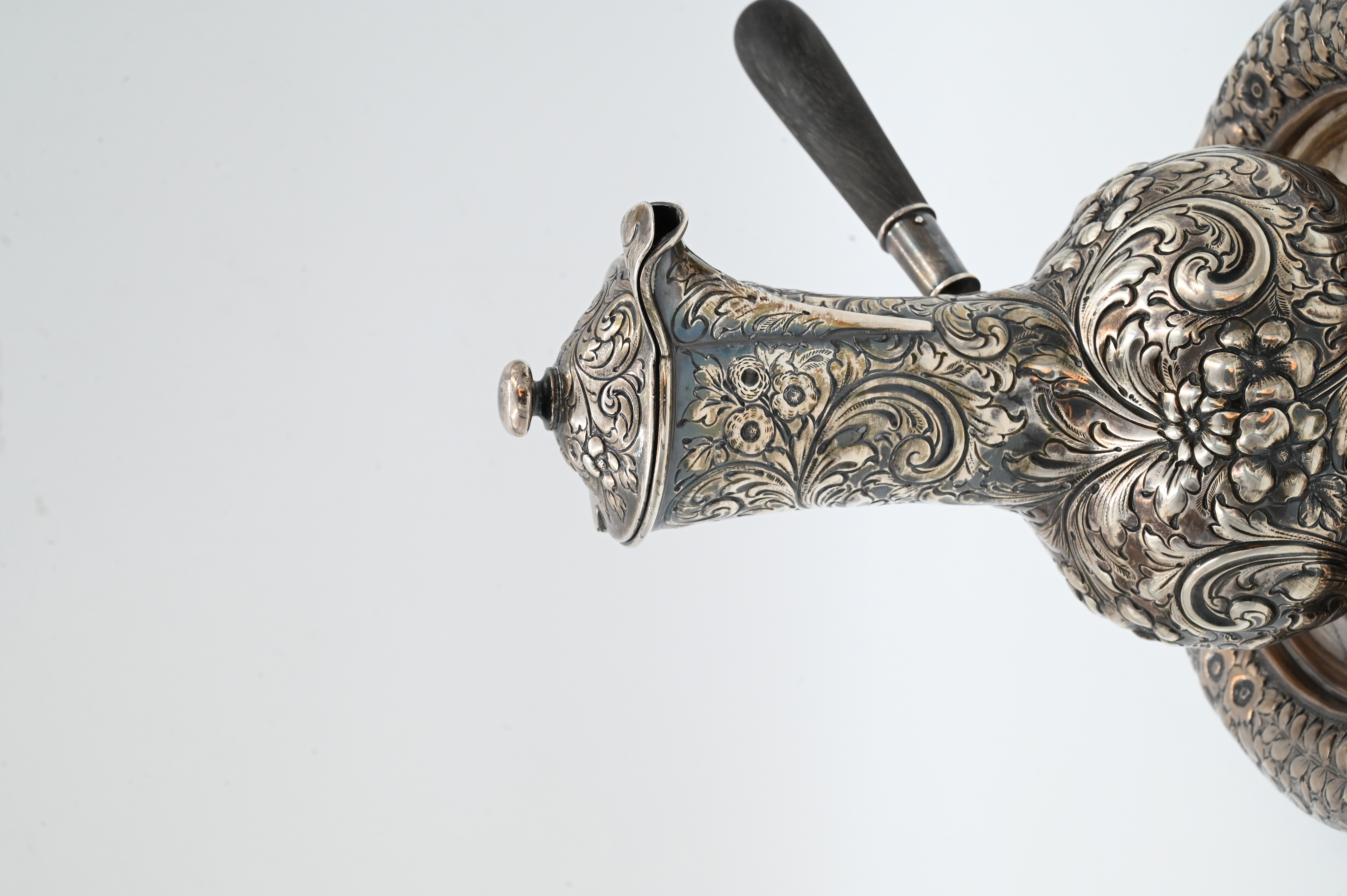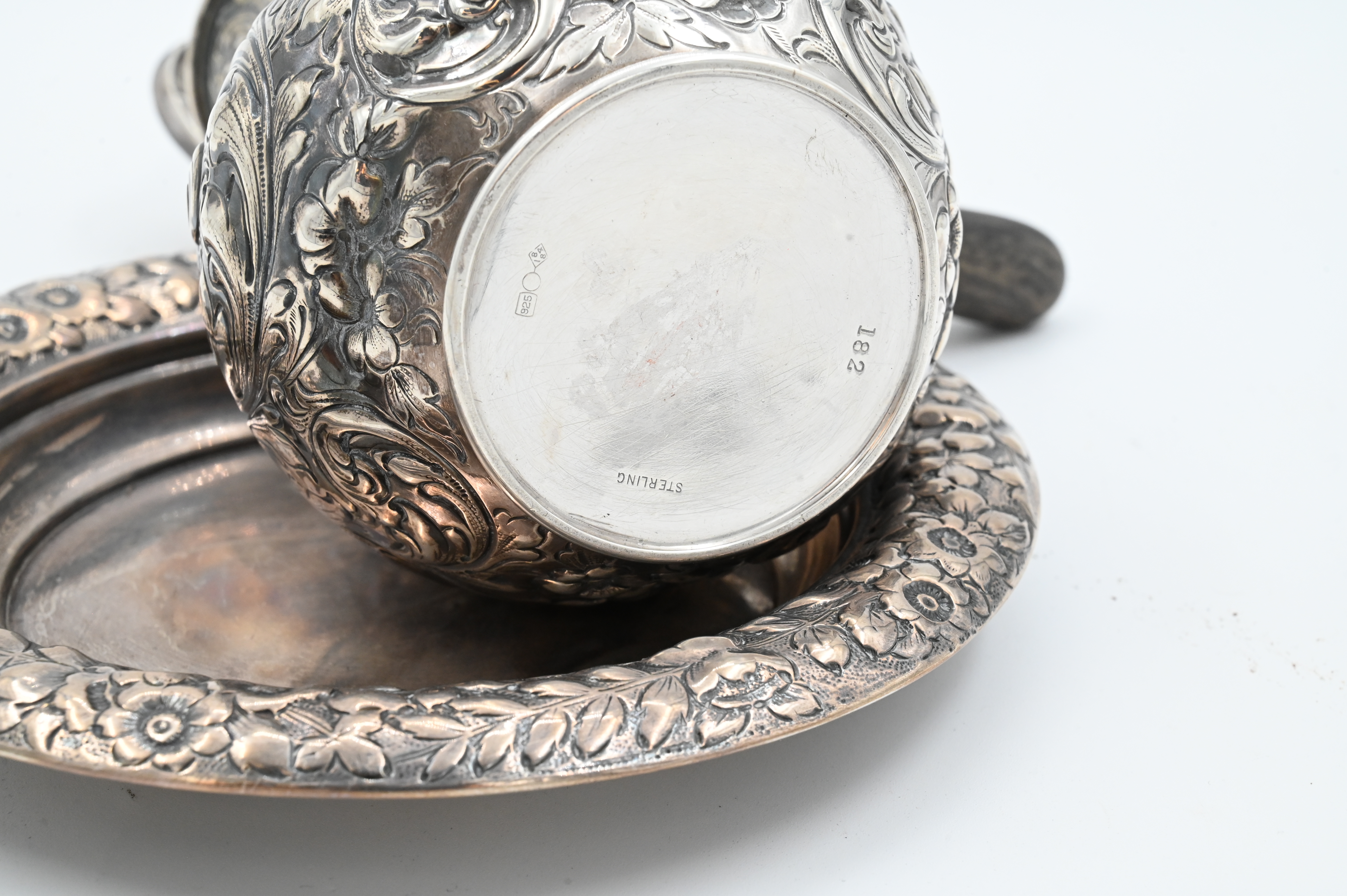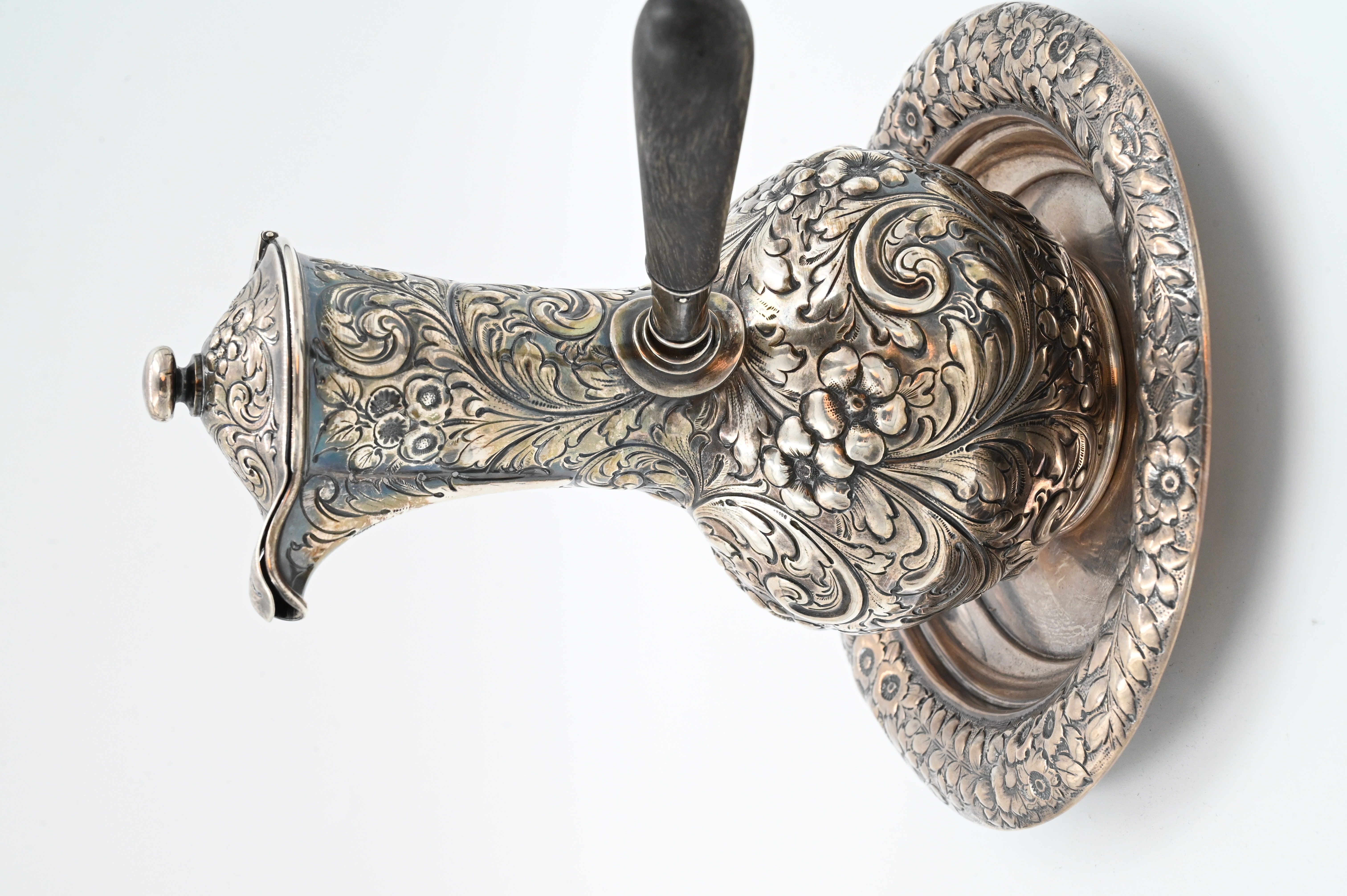 Lot 21: J.E. Caldwell Sterling Silver Repousse Chocolate Pot and Underplate