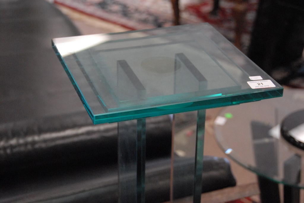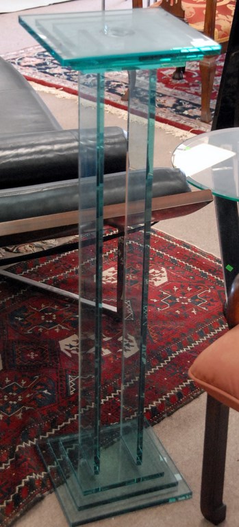 Lot 21: Karl Springer glass pedestal, ht. 42 1/2in.